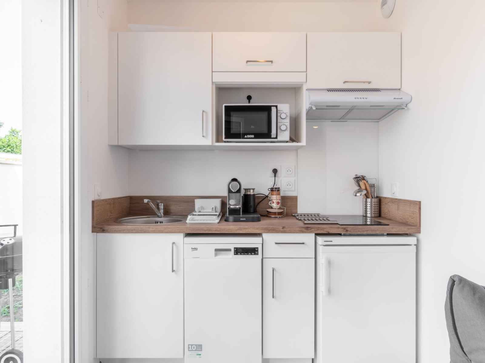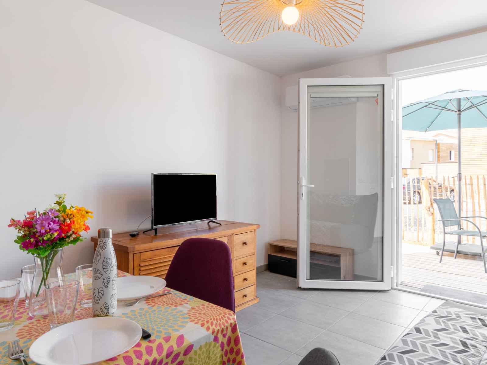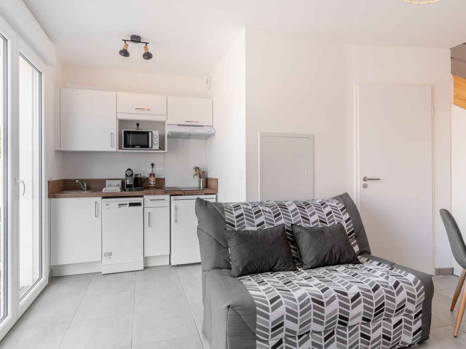 "sc g01", appartement sur 2 niveaux 3 pièces 42 m2. aménagement confortable et moderne: séjour avec tv (écran plat), air-conditionné. sortie sur la terrasse. coin cuisine (lave-vaisselle, 2 plaques vitrocéramiques, grille-pain, bouilloire électrique, micro-ondes, cafetière électrique, capsules pour machine à café (nespresso) (non