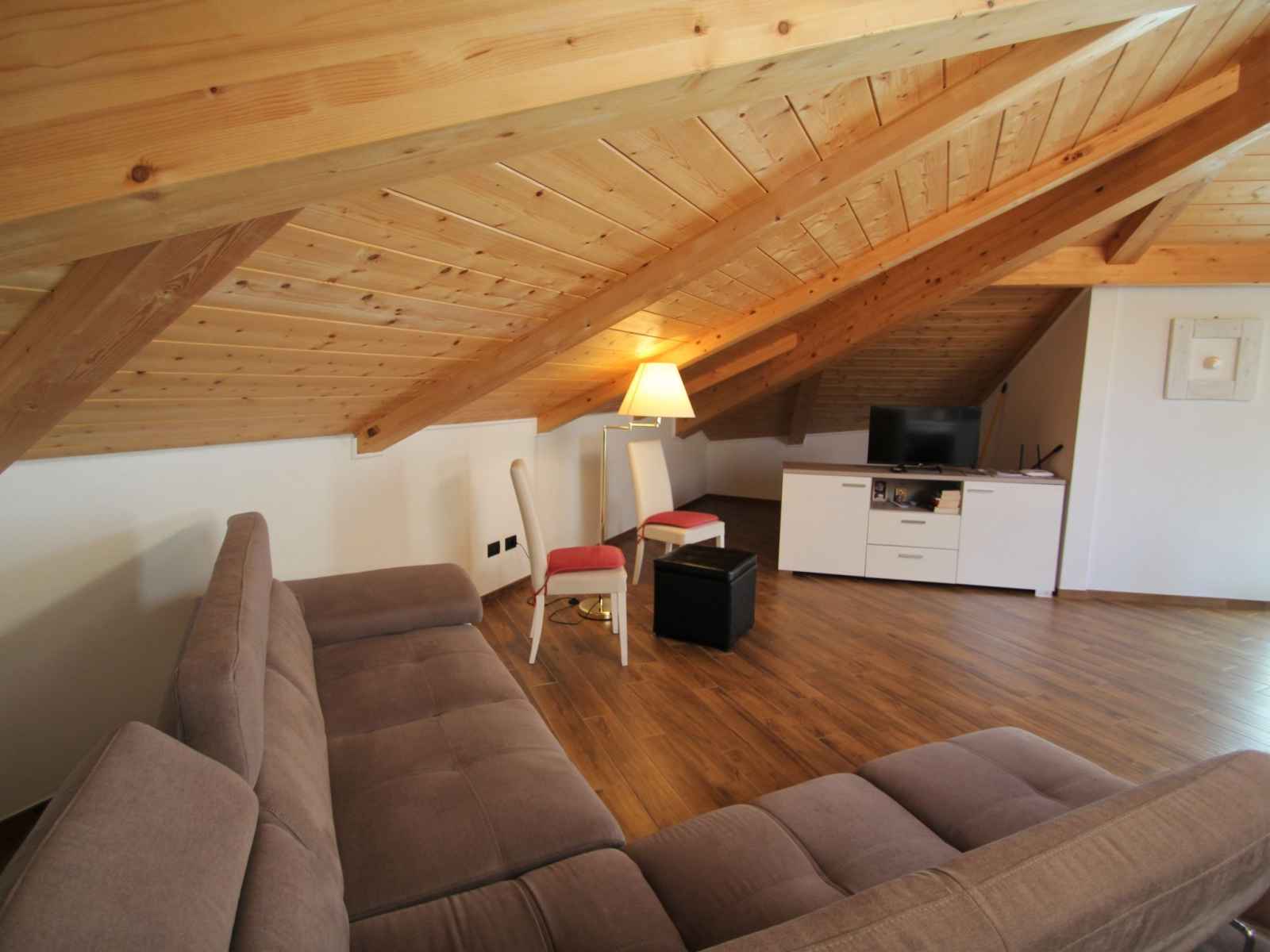Apt 3 pièces 116 m2, sous le toit. aménagement moderne: grand séjour/salle à manger mansardé avec table pour les repas et tv (satellite). sortie sur la terrasse. 1 chambre mansardée avec 1 lit et 1 lit double. 1 chambre mansardée avec 1 lit et 1 lit double. sortie sur le balcon. coin cuisine (4 plaques de cuisson, four, lave-vaisselle,