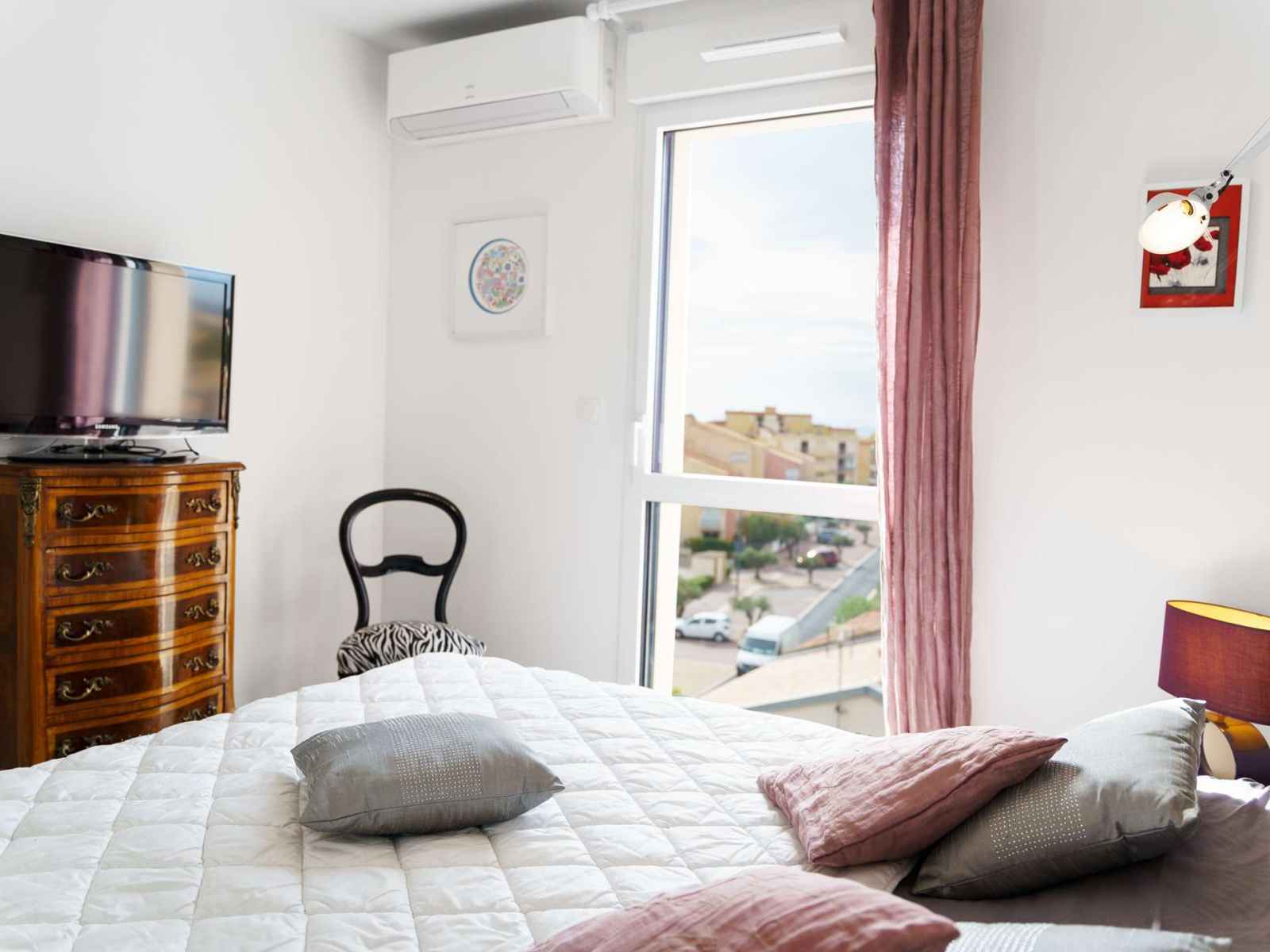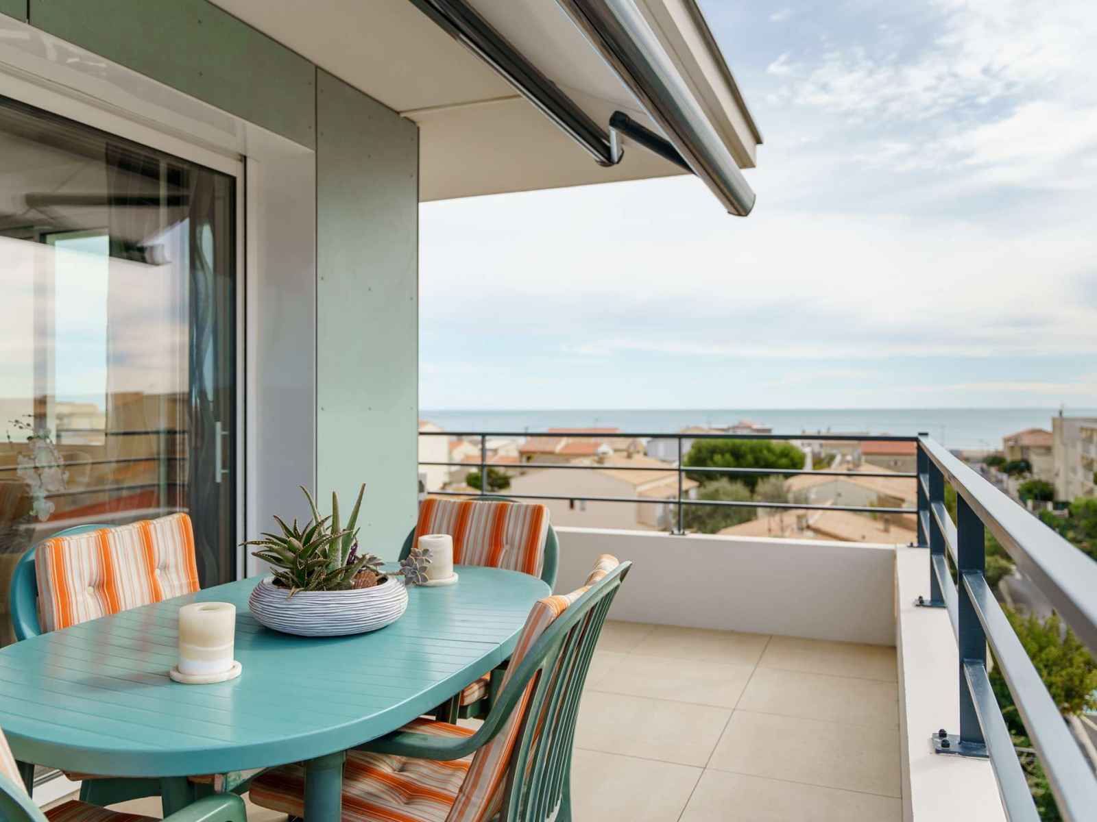 S b402 - exceptionnel t3 vue mer et vue sur le massif de la clape. appartement moderne tout équipé, avec vue imprenable. 4 personnes max, 2 places de parking, au 4ème et dernier étage d'une résidence sécurisée avec ascenseur construite en 2019. logement climatisé et non fumeur, chaines tv françaises et étrangères, petits animaux