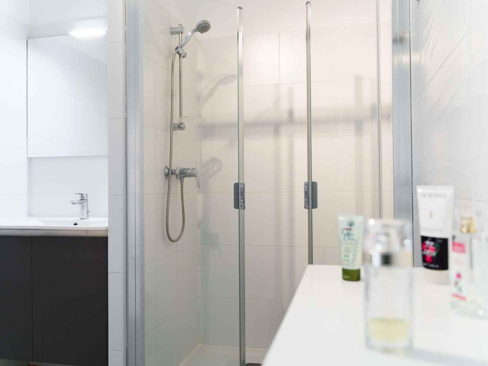 - Salle d'eau 4m² (Grande douche moderne, lavabo, placard, sèche-serviettes)
