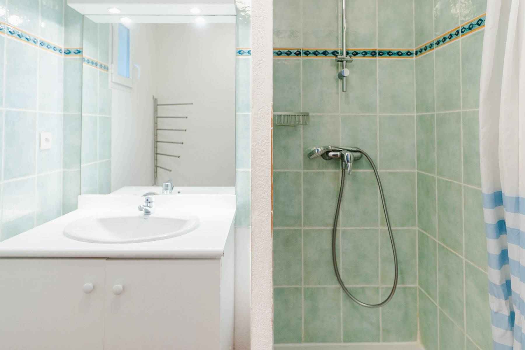 • Equipements : 2 Chaises longues, Bouilloire, Cafetière, Cafetière à dosettes NESPRESSO, Climatisation, Grille-pain, piscine collective, Balcon, Congélateur, Douche, Fer à repasser, Four, Lavabo, Lave linge, Lave Vaisselle, Micro-ondes, Plaques Electrique, Réfrigérateur 160 l., TV, Vaisselle pour 6 personnes