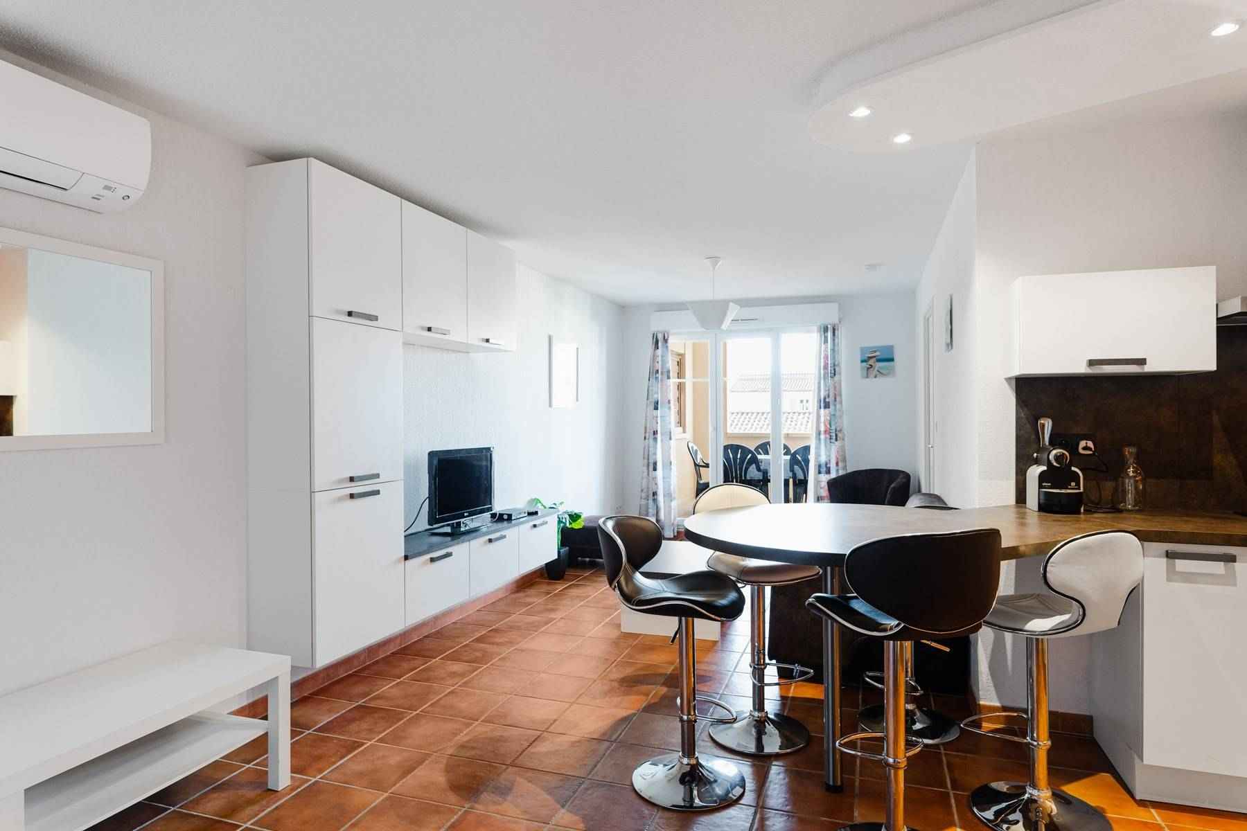 Au 1er étage d'une agréable résidence de trois niveaux avec ascenseur, joli appartement 3 pièces climatisé avec balcon exposé sud-ouest. la résidence vous offre tout le confort nécessaire pour des vacances réussies: portail électrique, place de parking privative, grande piscine, proximité de la plage à 400 m et des commerces à 200 m.