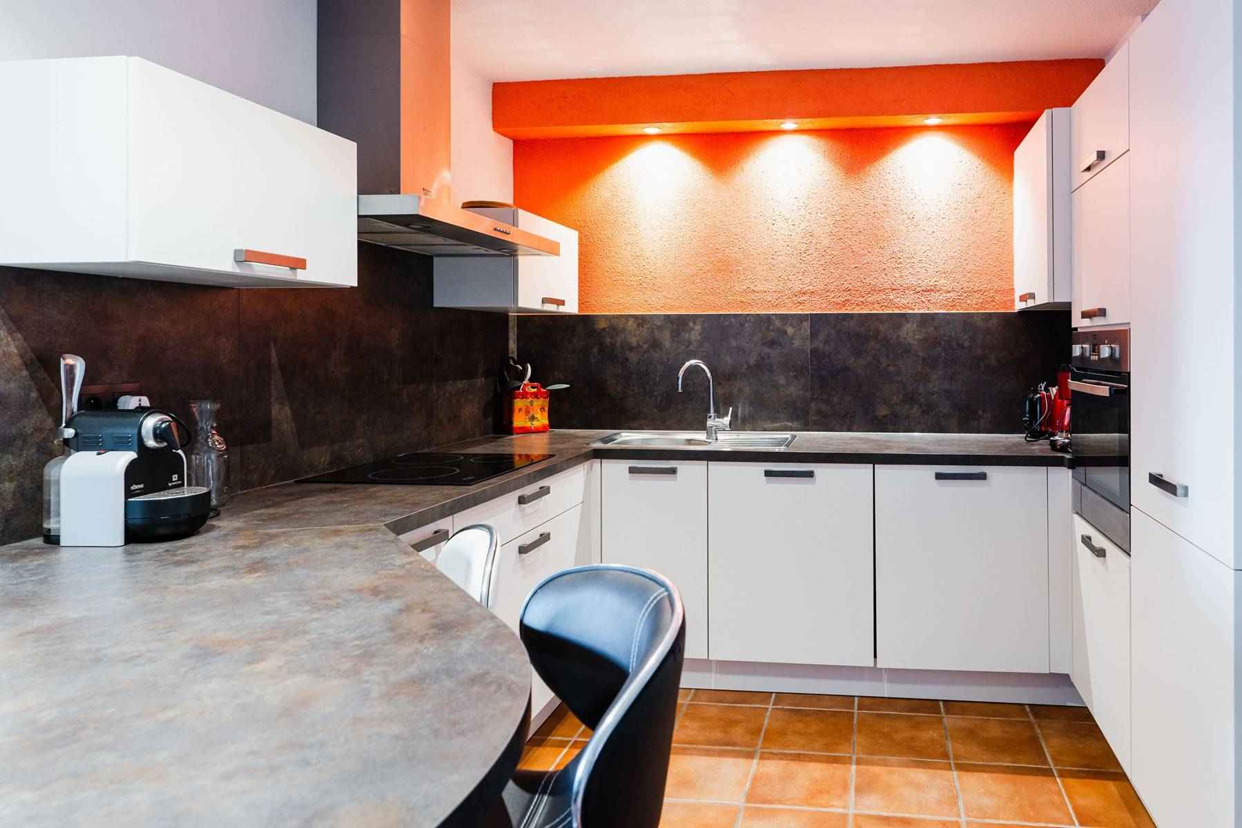 Séjour avec canapé convertible (130x190), TV avec chaînes françaises, cuisine ouverte toute équipée avec plaques vitrocéramiques, four, réfrigérateur avec compartiment congélateur, lave-vaisselle et lave-linge. Une salle d'eau avec vasque et douche, WC séparés.