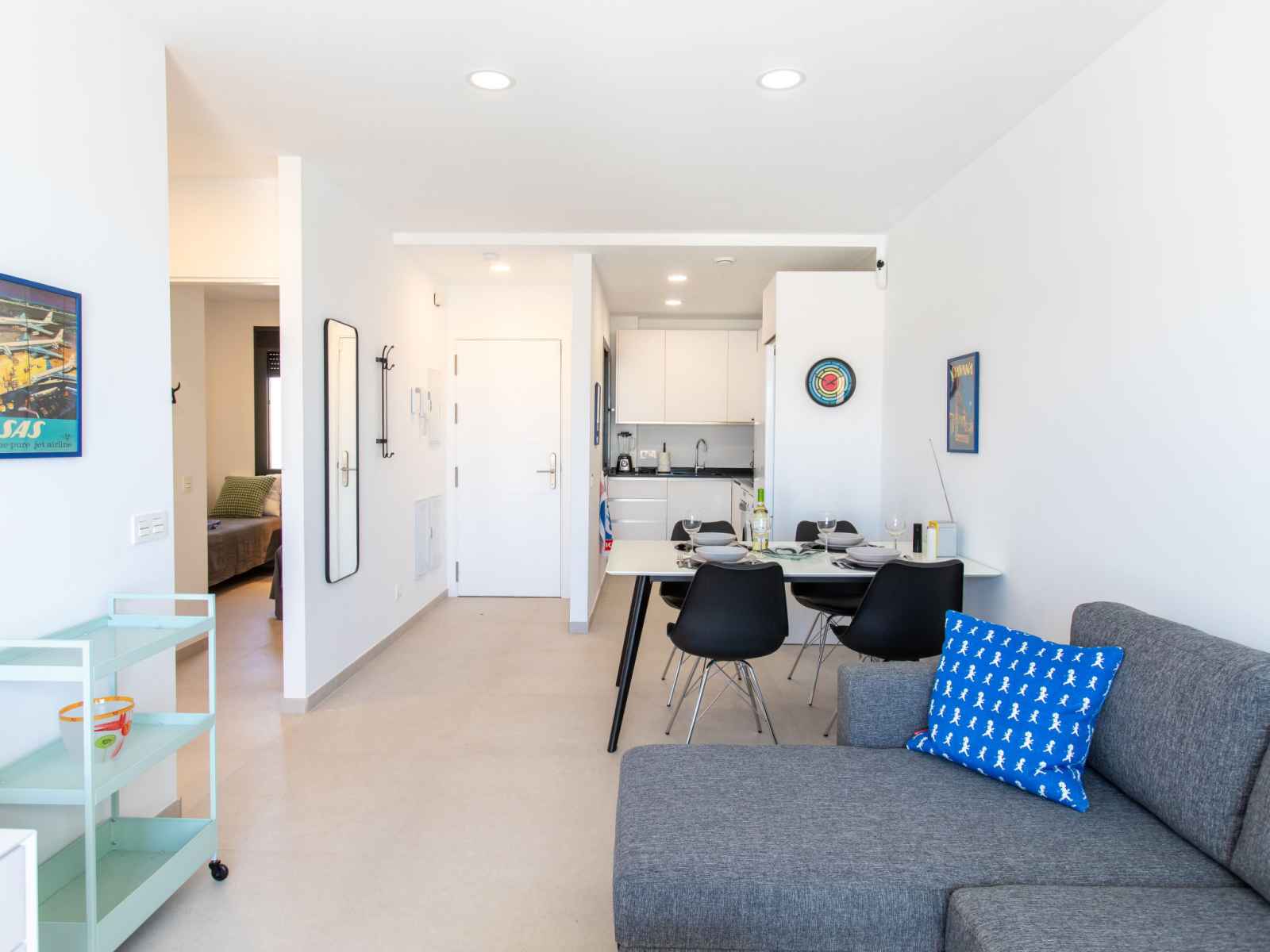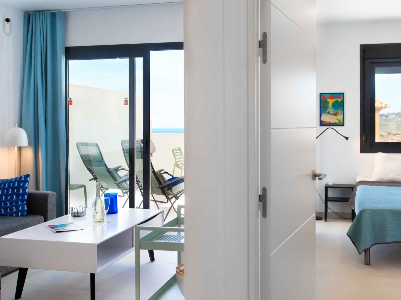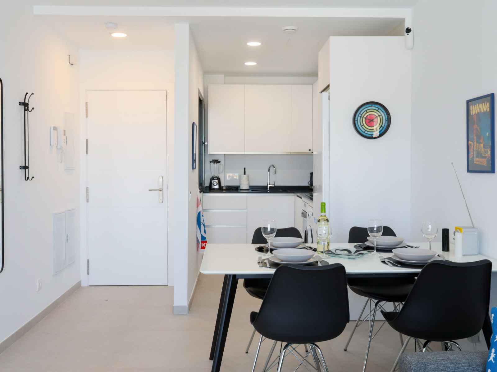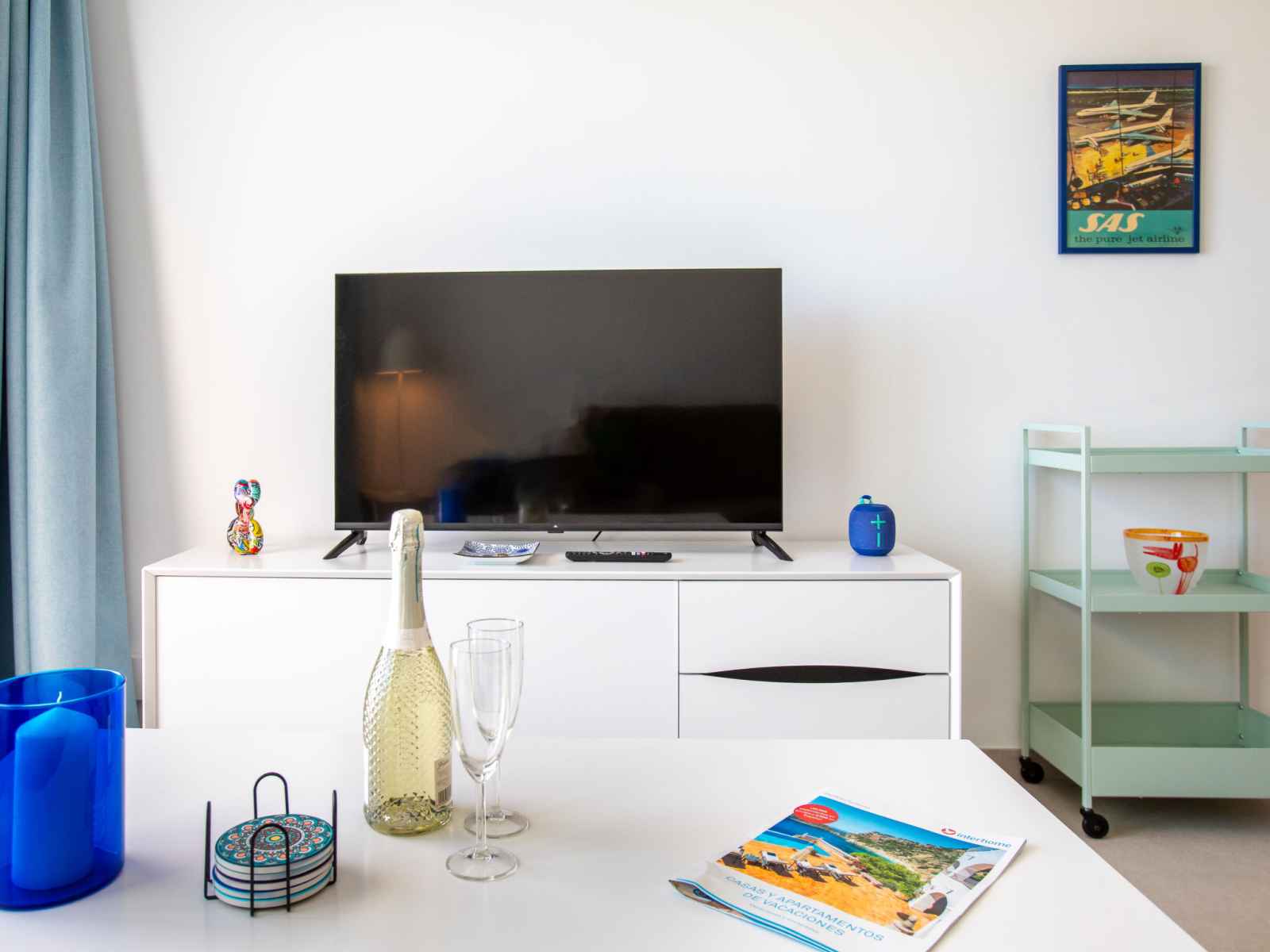 "colina alta", apt 3 pièces 56 m2, situation sud. clair, aménagement très fonctionnel et confortable: séjour/salle à manger avec table pour les repas, télévision numérique, chaînes de tv internationales, écran plat, air-conditionné et chauffage à air chaud. sortie sur la terrasse. 1 chambre avec 1 grand-lit (160 cm, longueur 190 cm),