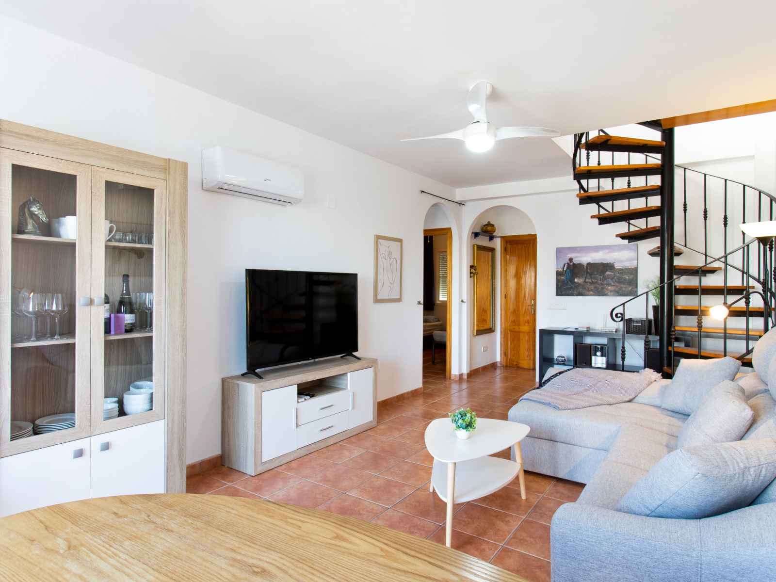 "velez", apt 3 pièces 80 m2, situation ouest. spacieux et clair, aménagement confortable: séjour/salle à manger avec télévision numérique, air-conditionné, ventilateur et chauffage à air chaud. sortie sur la terrasse. 1 chambre avec 1 grand-lit (180 cm, longueur 190 cm), air-conditionné et chauffage à air chaud. sortie sur la terrasse.