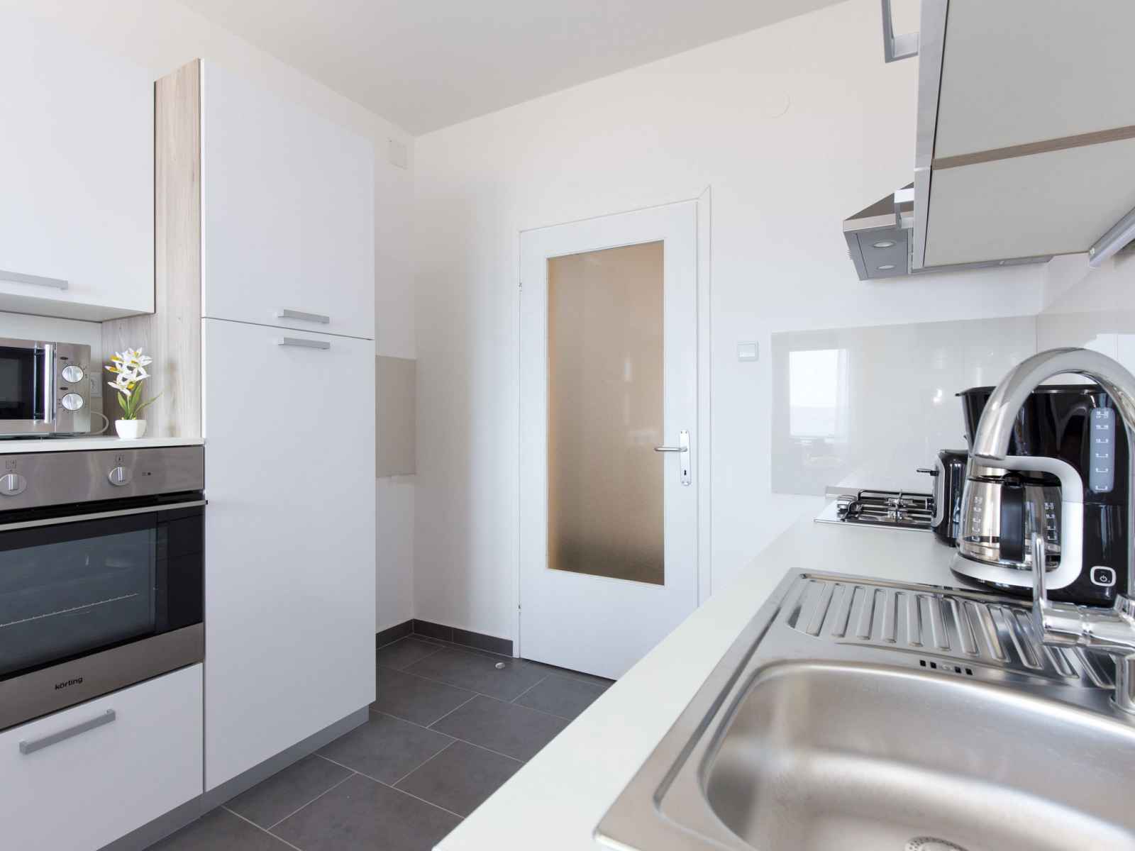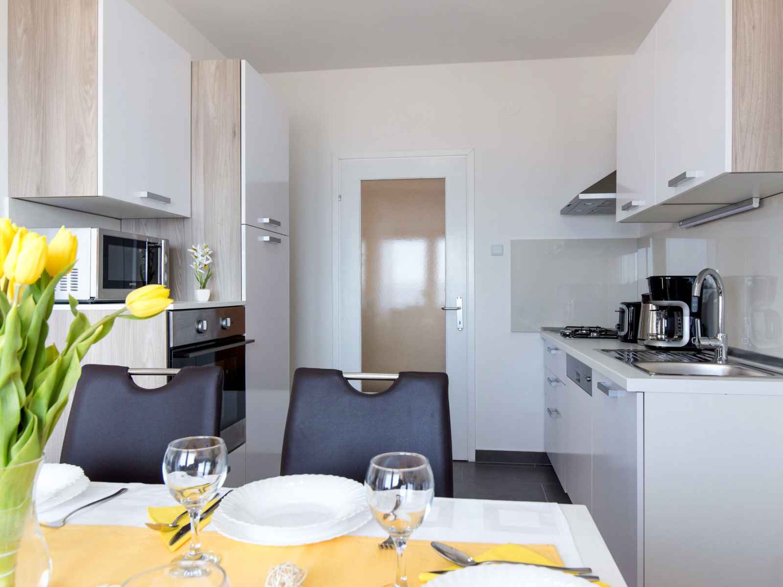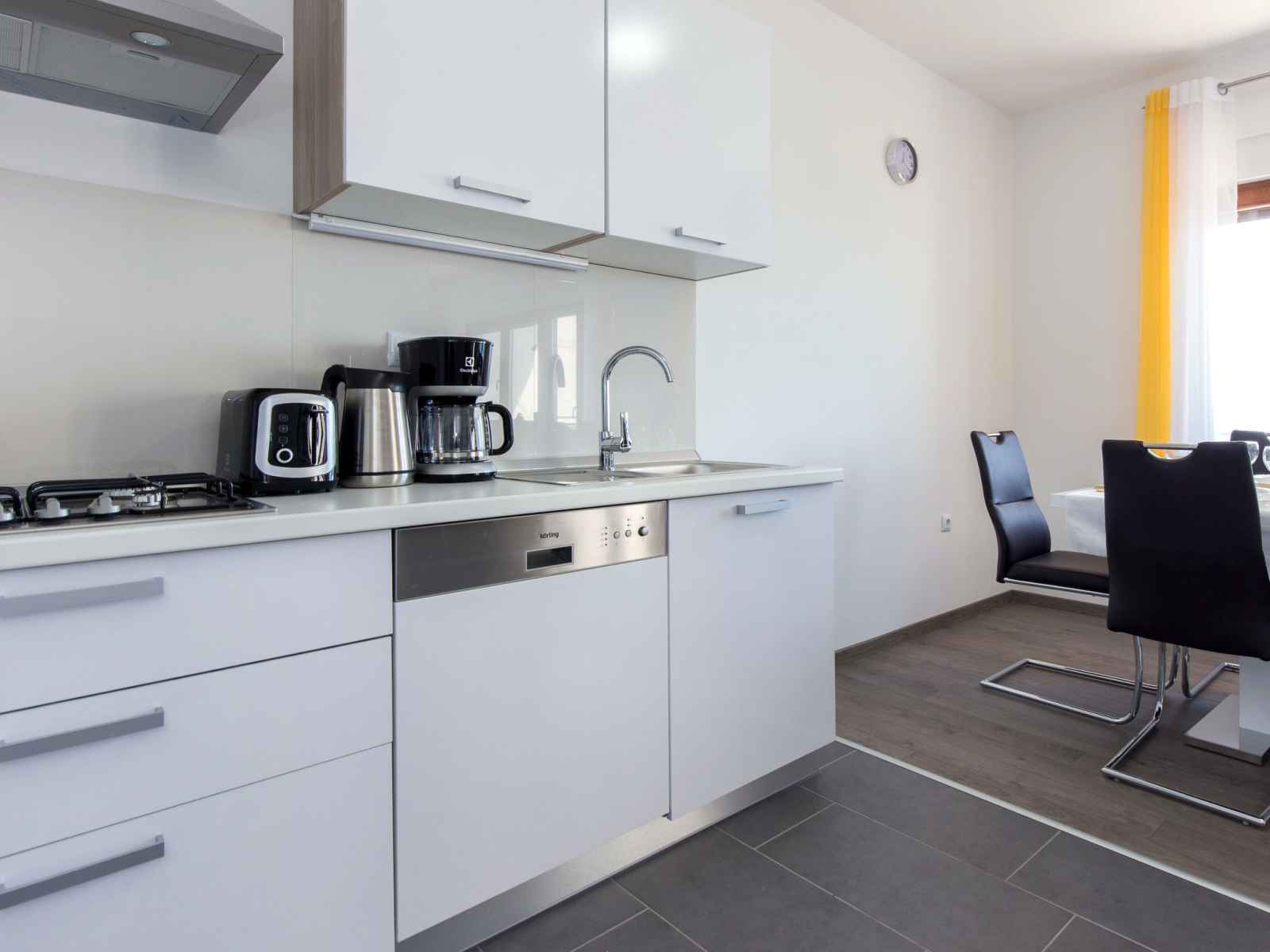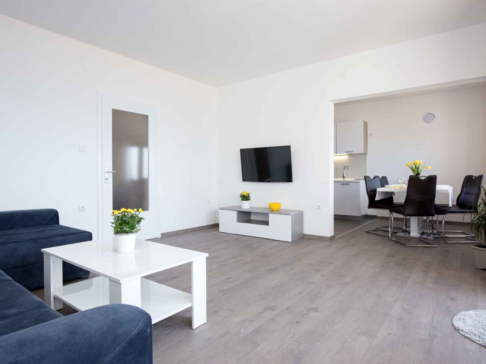 "luka", apt 3 pièces 88 m2 au 2ème étage. séjour/salle à manger avec tv (satellite) et air-conditionné. sortie sur le balcon. 2 chambres, chaque chambre avec: 1 lit double (2 x 90 cm, longueur 200 cm). cuisine ouverte (1 plaque de cuisson, four, 3 feux, grille-pain, bouilloire électrique, micro-ondes, congélateur, cafetière électrique).