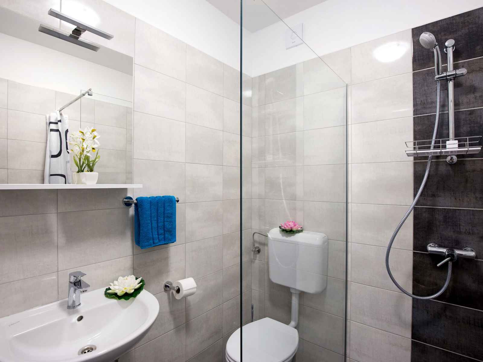 Douche/WC. Pas de chauffage. Balcon 23 m2. Mobilier de balcon, chaises longues (2). Vue sur la mer. A disposition: fer à repasser. Internet (Connexion WIFI, gratuit). Veuillez noter: maison non-fumeur. Maximum 2 animaux/chiens de petite taille autorisés.