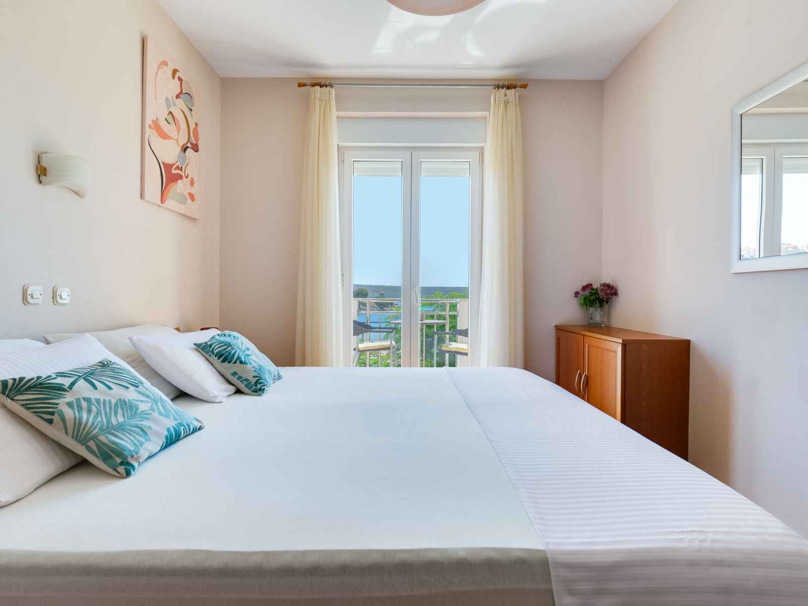 "daria 1", apt 3 pièces 90 m2 au 1er étage. séjour/salle à manger avec 1 divan-lit, tv (satellite) et air-conditionné. sortie sur la terrasse. 1 chambre avec 1 lit double et douche/wc. sortie sur la terrasse. 1 chambre avec 2 lits. cuisine ouverte (four, lave-vaisselle, 4 plaques vitrocéramiques, congélateur). bain/bidet/wc. pas de