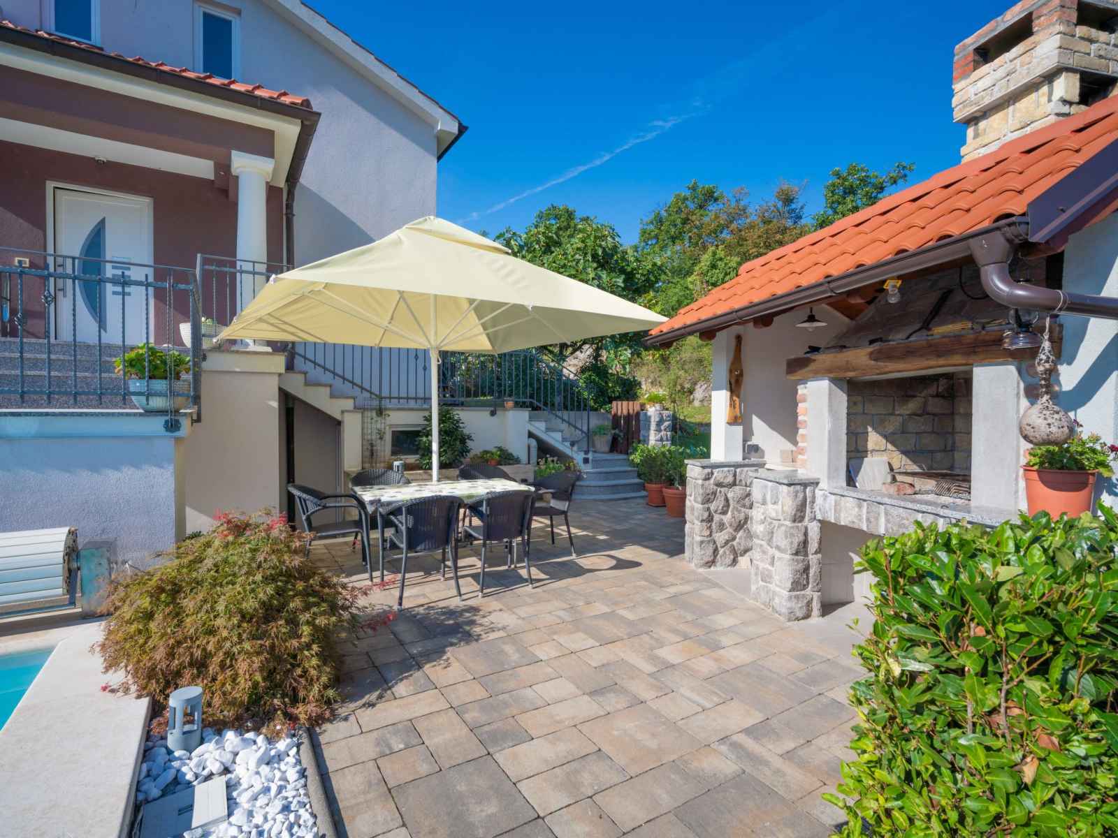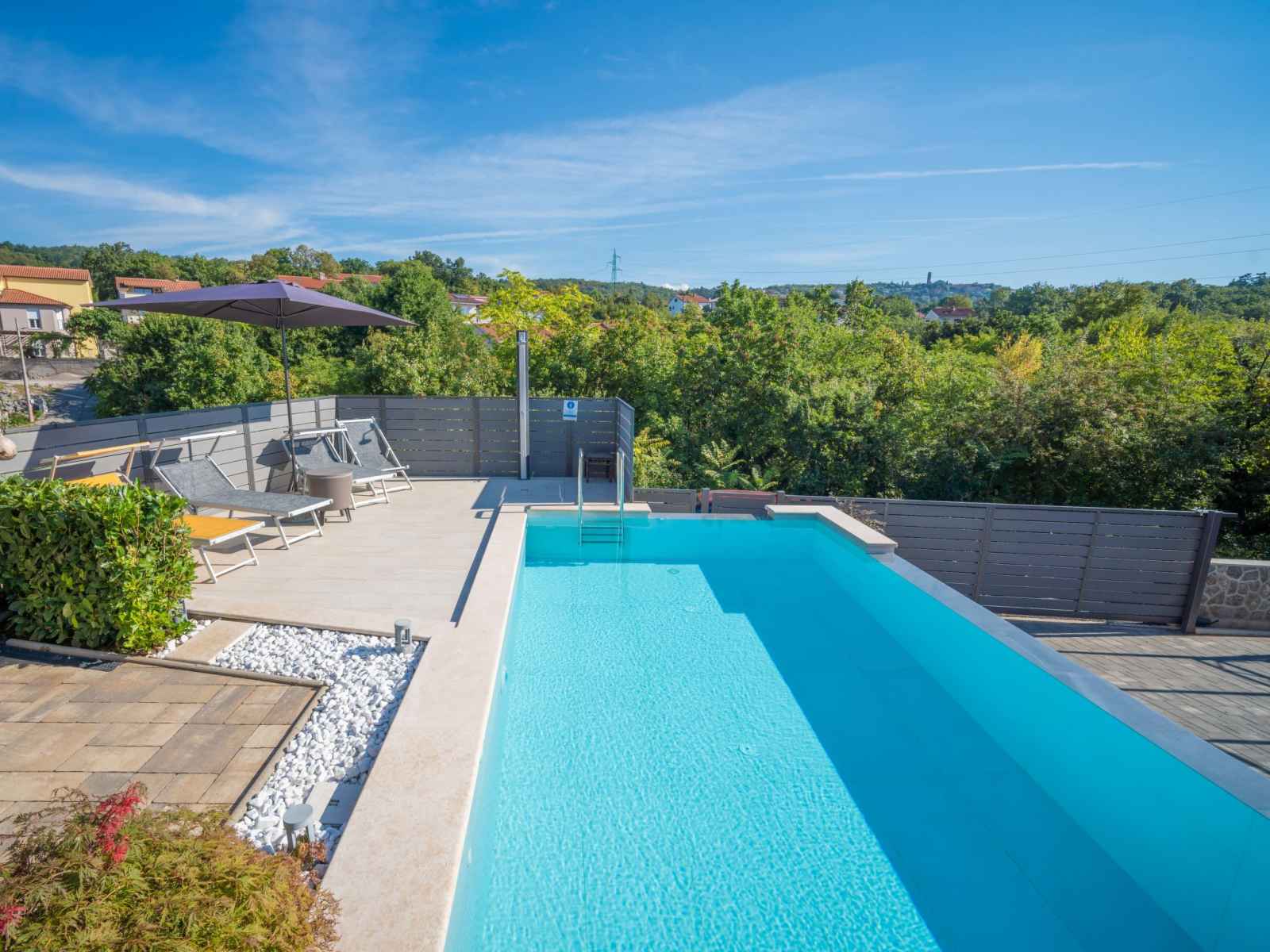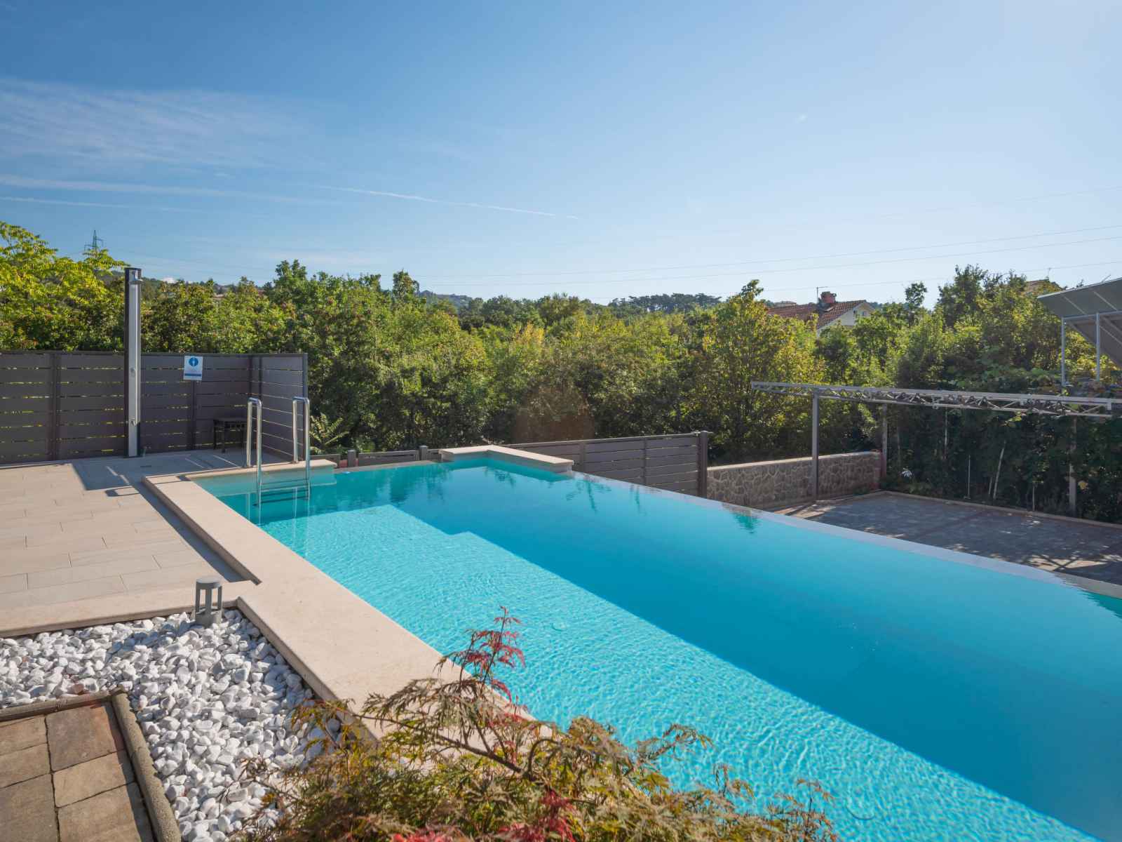 la piscine: 10:00-20:00). douche extérieure, bain à remous , terrasse (20 m2), meubles de jardin, barbecue. a usage privé: pergola (12 m2). infrastructures de la maison: accès internet. place de parking près de la maison sur le terrain. magasins 1 km, supermarché, restaurant 500 m, arrêt de bus 750 m, plage de graviers 3.5 km, plage bétonnée 3.5 km. veuillez noter: le propriétaire habite sur le même terrain. en commun: bain à remous (sur demande, en sus). il y a des caméras de surveillance dans le parking et l'allée. l'organisation de soirées n'est pas autorisée. le propriétaire peut organiser des transferts vers les plages et les destinations touristiques (sur demande, en sus).