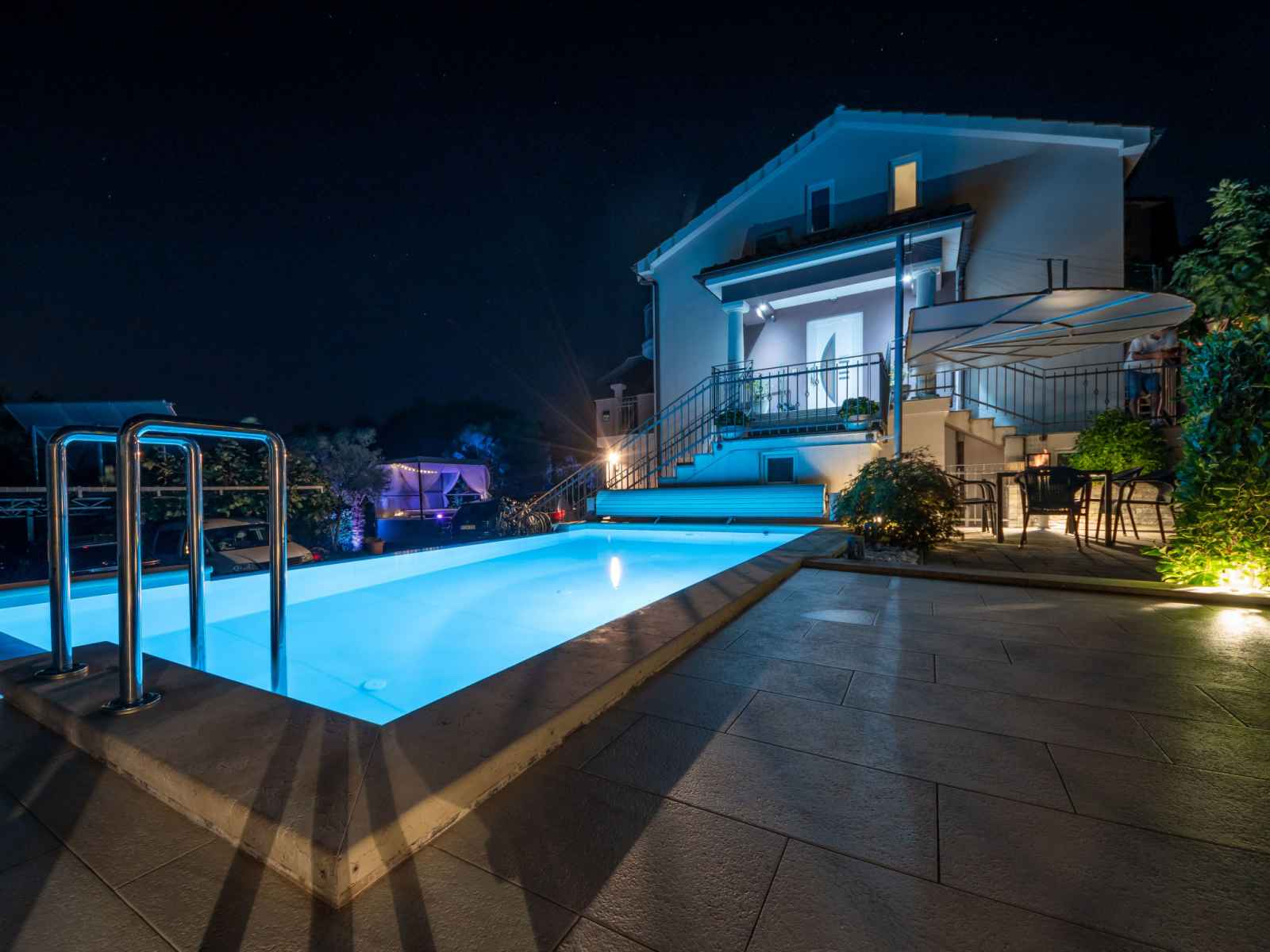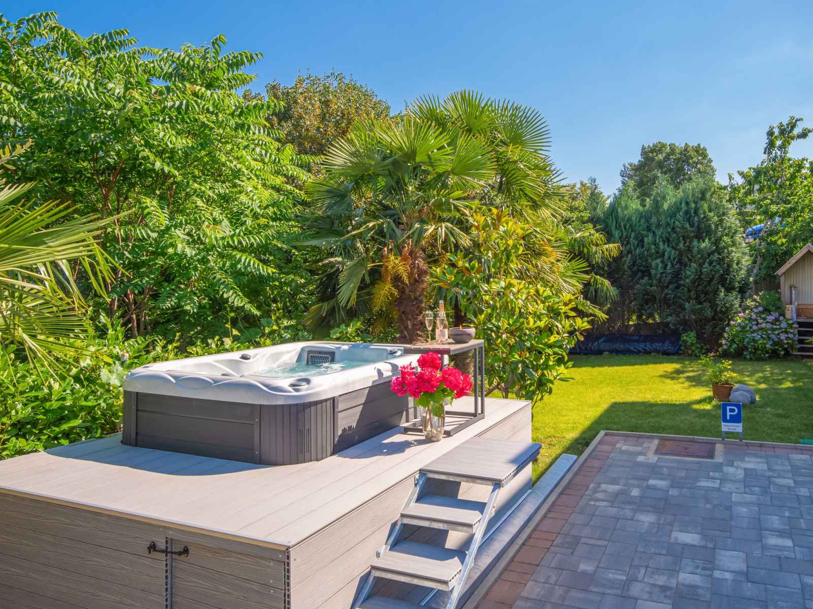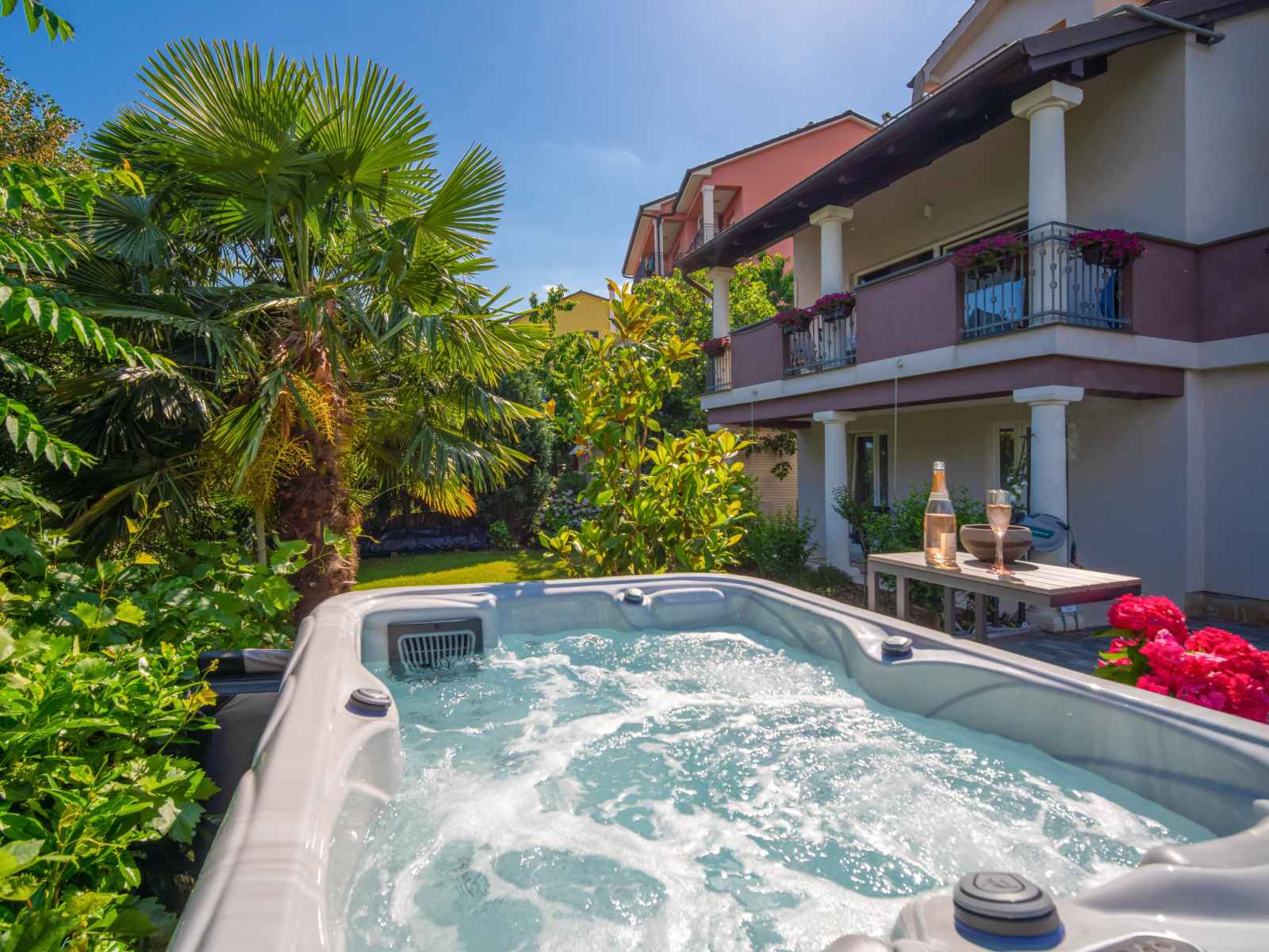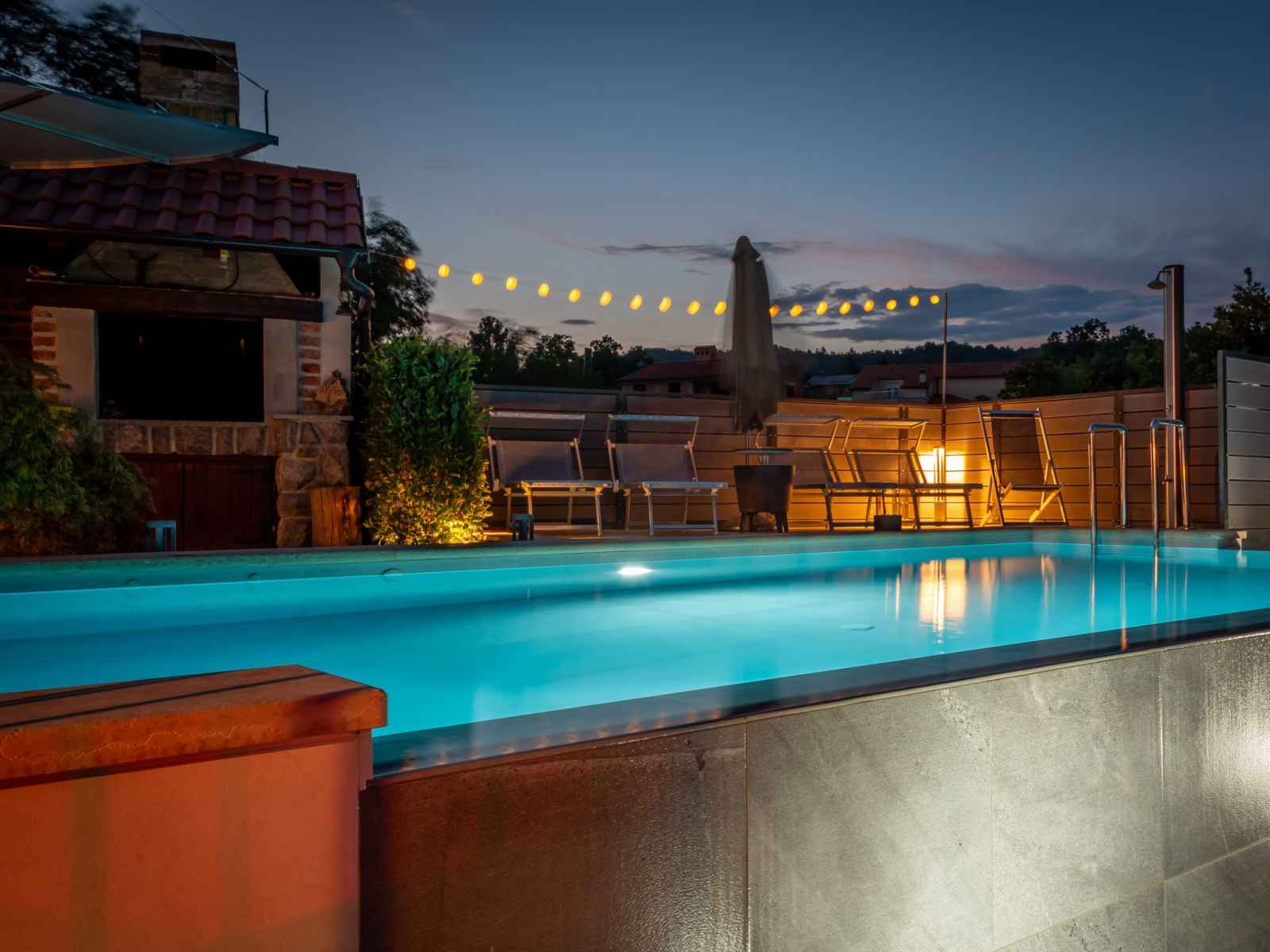 la piscine: 10:00-20:00). douche extérieure, bain à remous , terrasse (20 m2), meubles de jardin, barbecue. a usage privé: pergola (12 m2). infrastructures de la maison: accès internet. place de parking près de la maison sur le terrain. magasins 1 km, supermarché, restaurant 500 m, arrêt de bus 750 m, plage de graviers 3.5 km, plage bétonnée 3.5 km. veuillez noter: le propriétaire habite sur le même terrain. en commun: bain à remous (sur demande, en sus). il y a des caméras de surveillance dans le parking et l'allée. l'organisation de soirées n'est pas autorisée. le propriétaire peut organiser des transferts vers les plages et les destinations touristiques (sur demande, en sus).