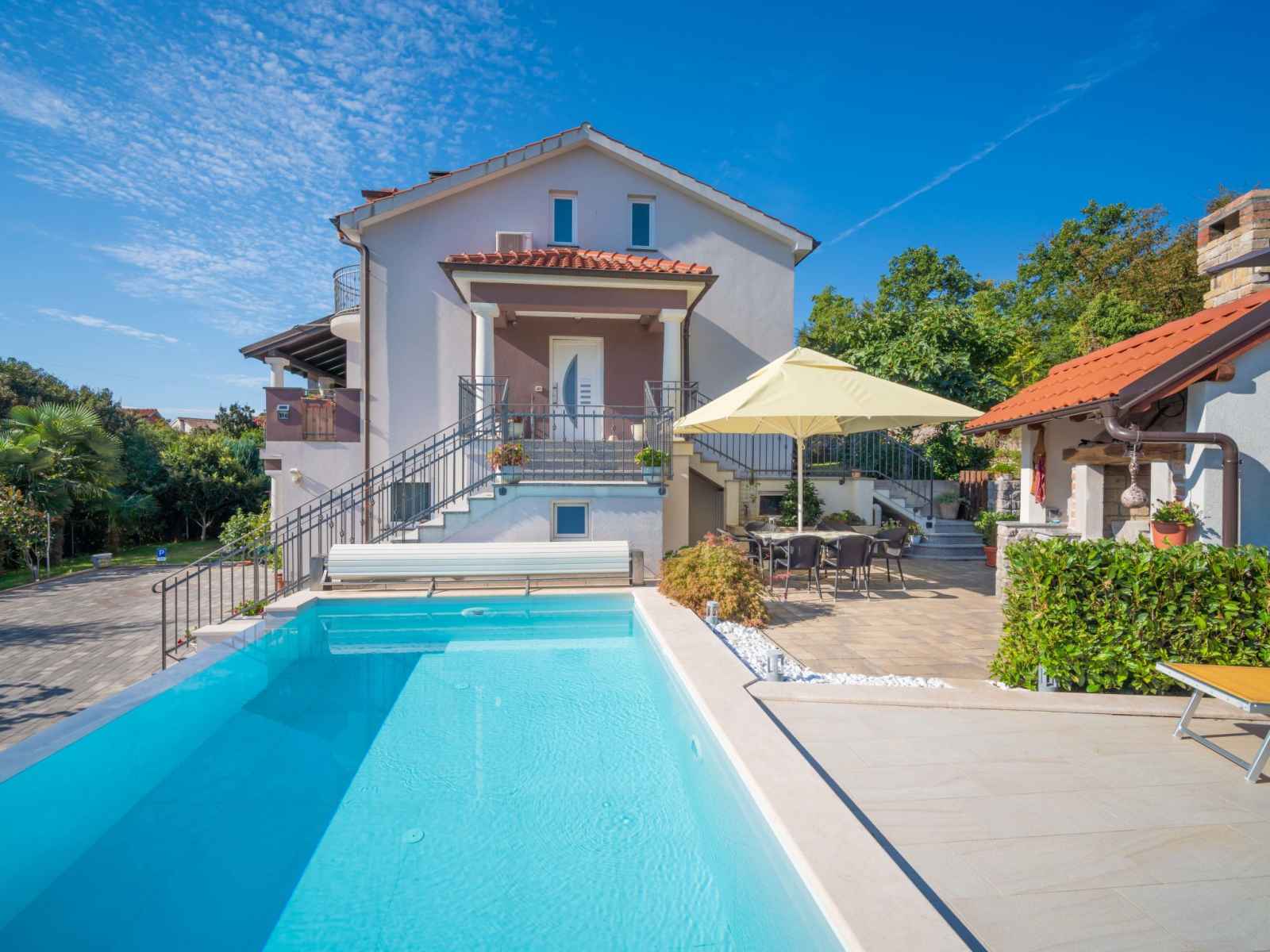 Matulji à 5 km de opatija: immeuble "sontje". À 1 km du centre de matulji, situation tranquille, ensoleillée, à 3.5 km de la mer, à 3.5 km de la plage, dans une impasse, dans la verdure. en commun: terrain 300 m2, plantes, piscine rectangulaire (7 x 3 m, profondeur 140 cm, disponibilité saisonnière: 01.mai. - 15.oct. horaires d'ouverture de