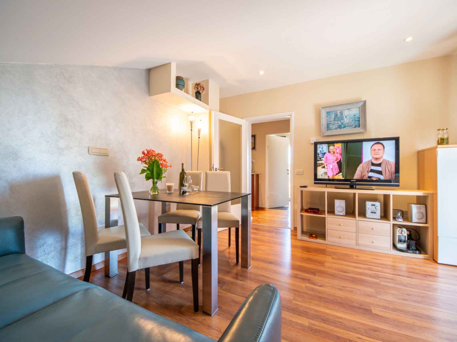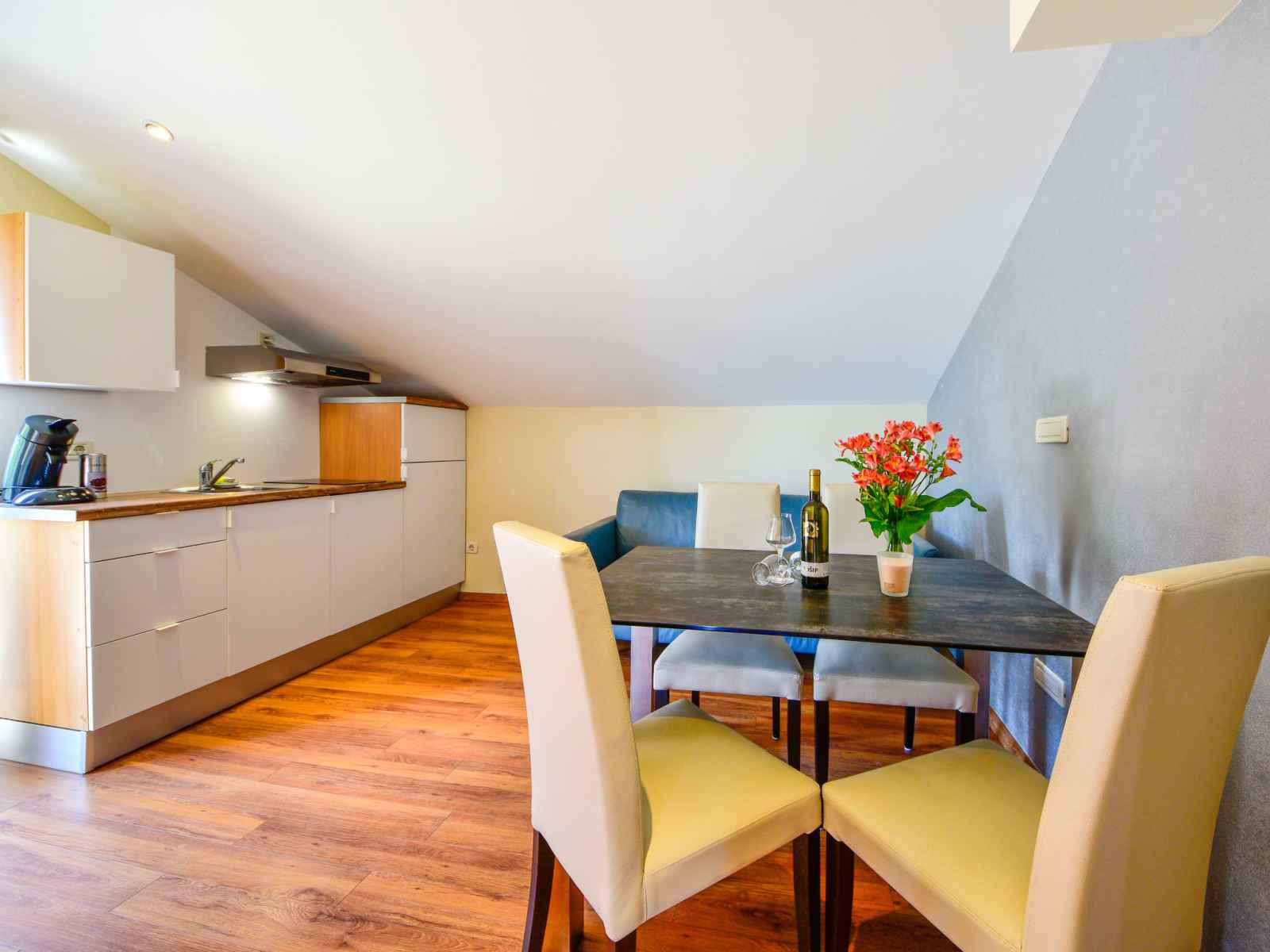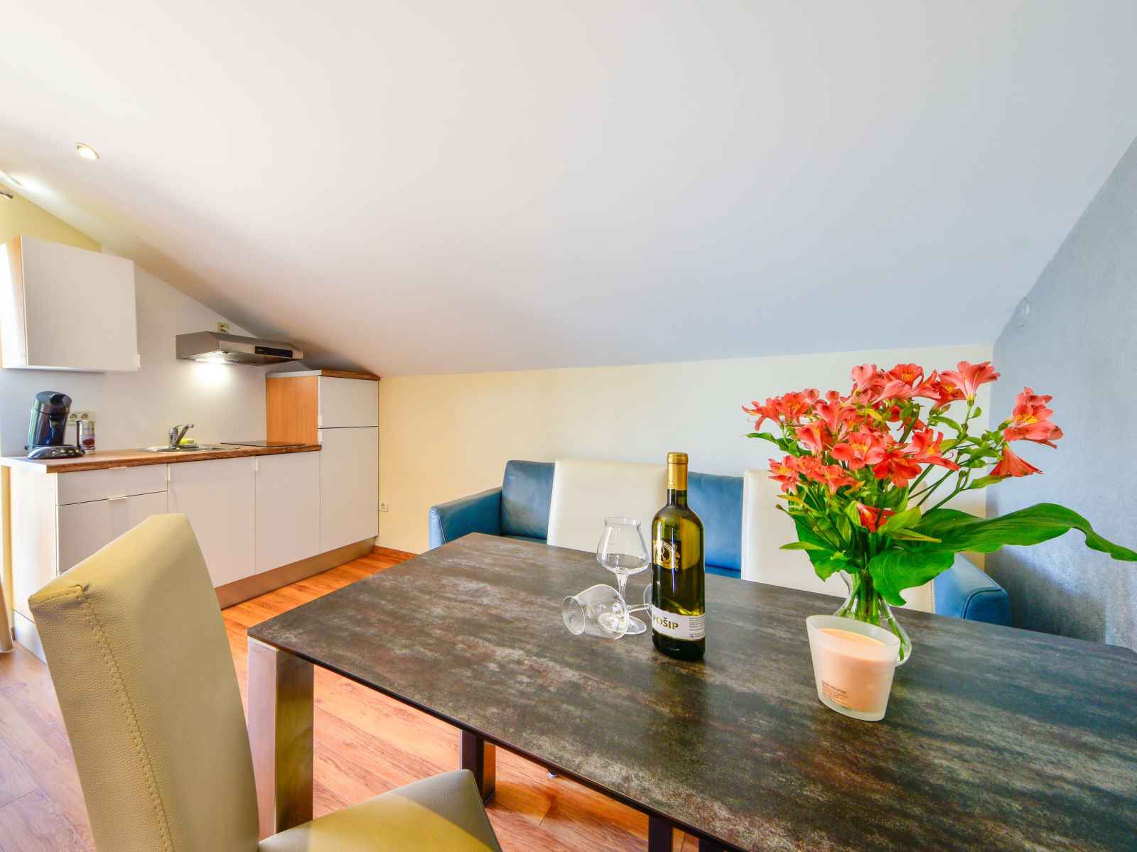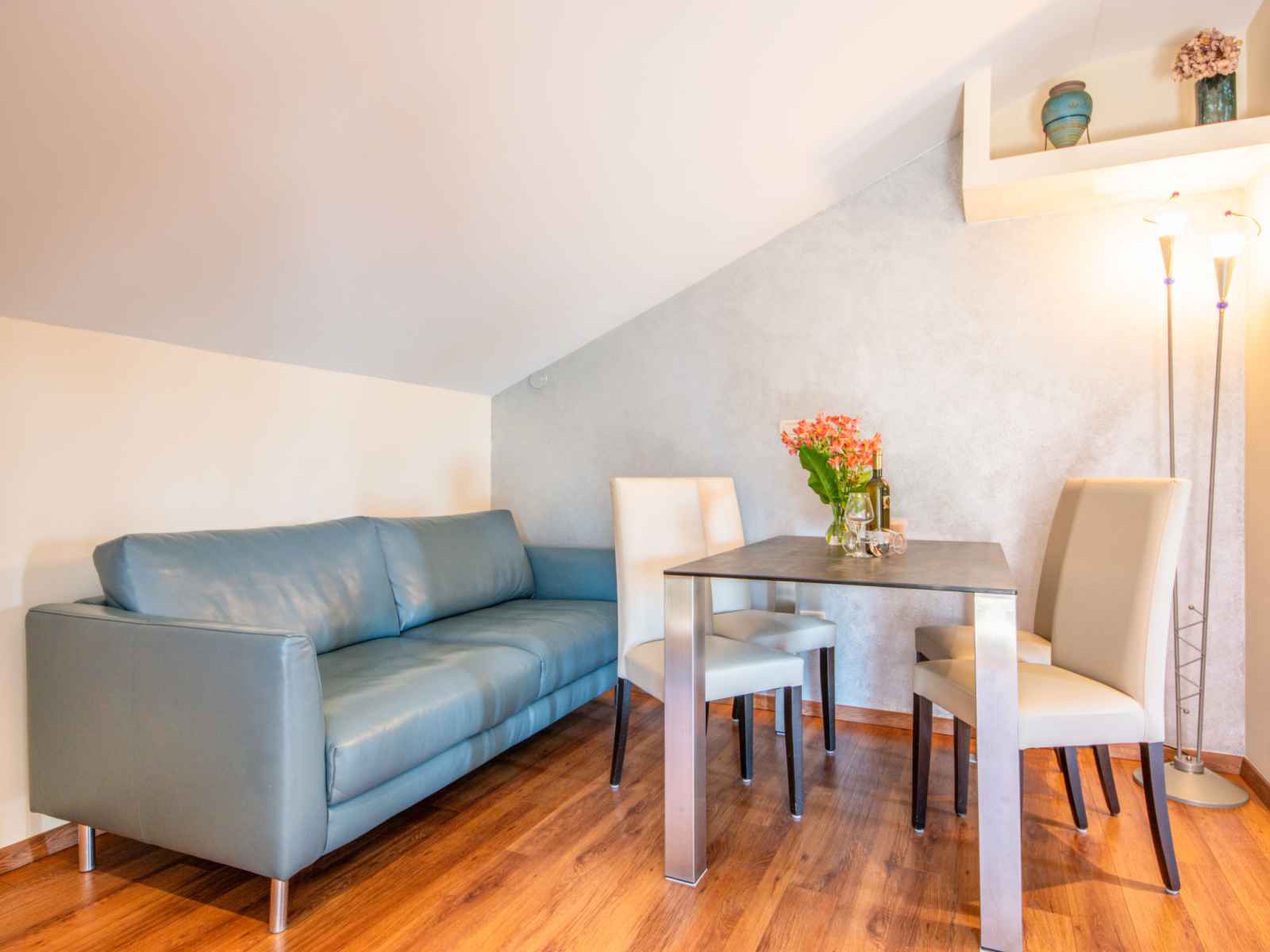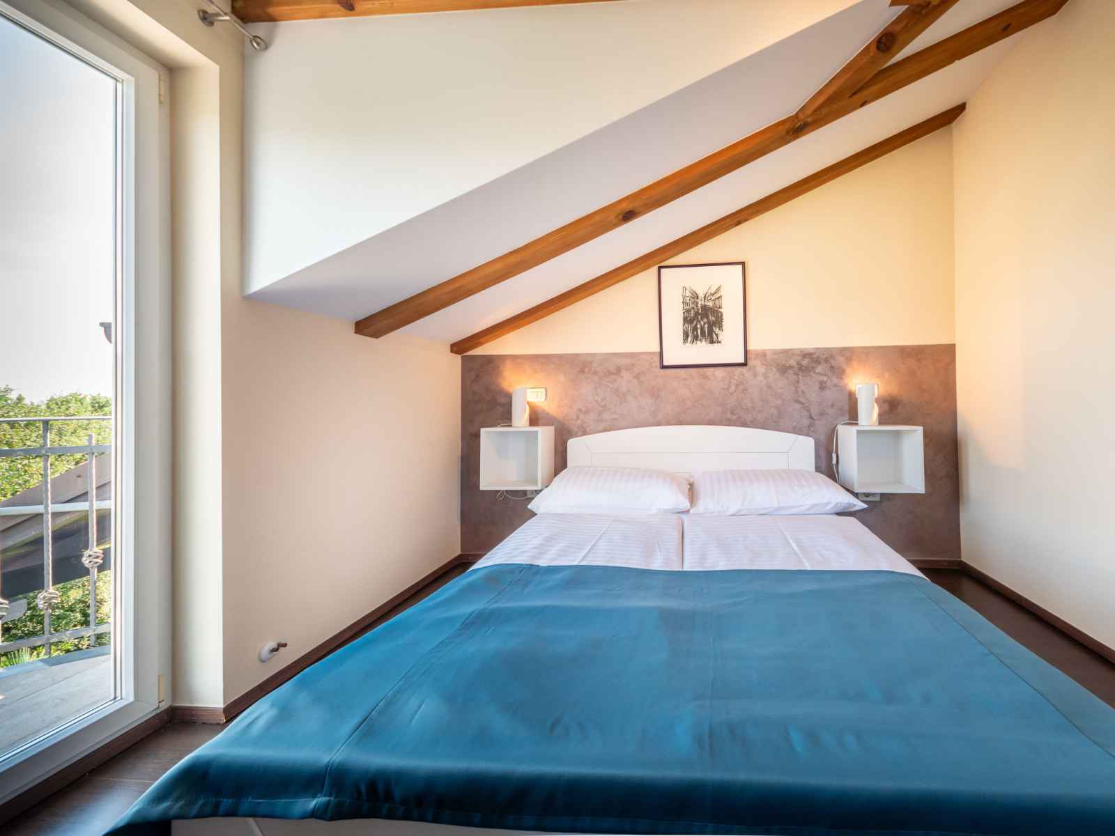 250 cm avec 1 grand-lit (140 cm, longueur 200 cm), air-conditionné. Sortie sur le balcon. Cuisine ouverte (lave-vaisselle, 1 plaque vitrocéramiques, cafetière électrique), hauteur plafond 140 - 250 cm. Douche/bidet/WC. Pas de chauffage. 2 balcons 2 m2, terrasse 4 m2 partiellement couverte. Meubles de terrasse, chaises longues. Vue sur les alentours. A disposition: coffre-fort. Internet (Connexion WIFI, gratuit).