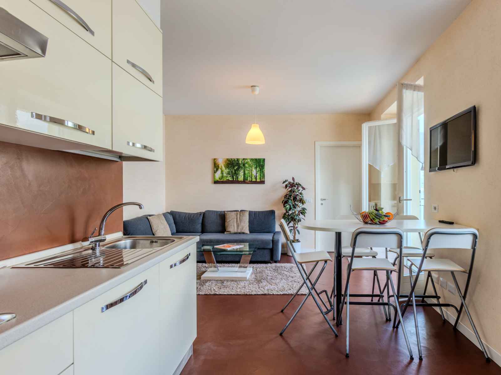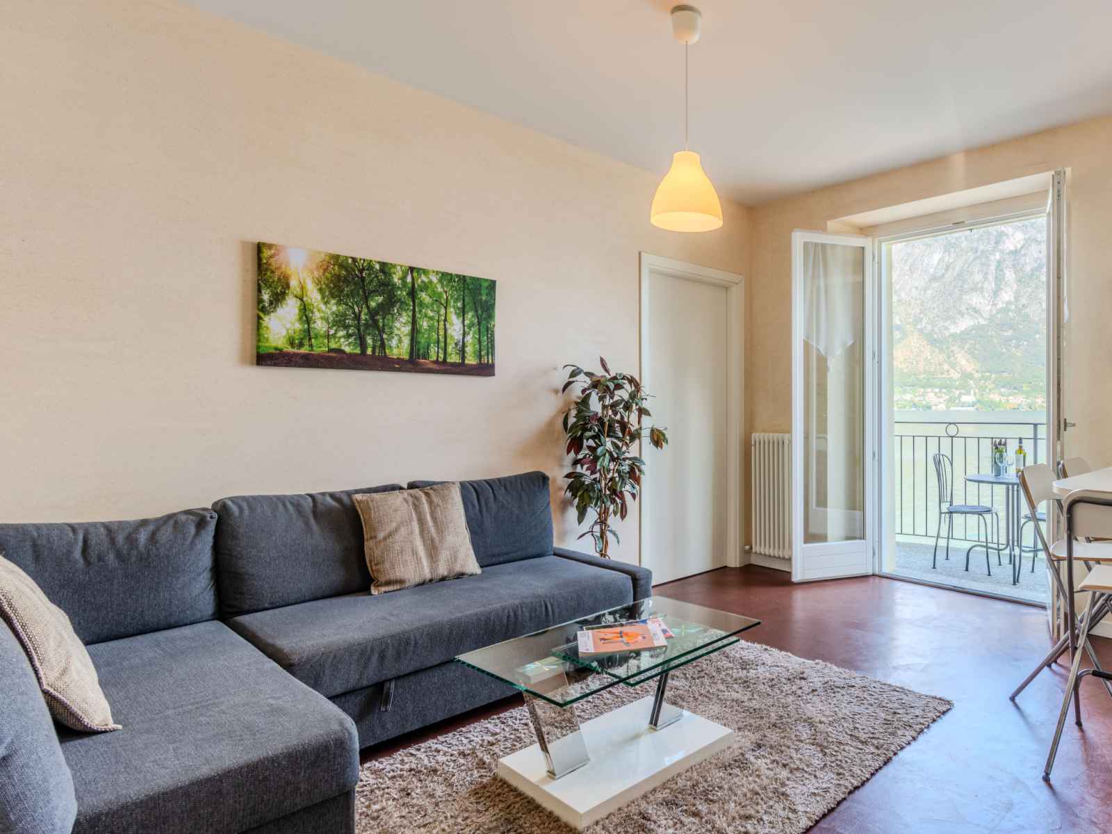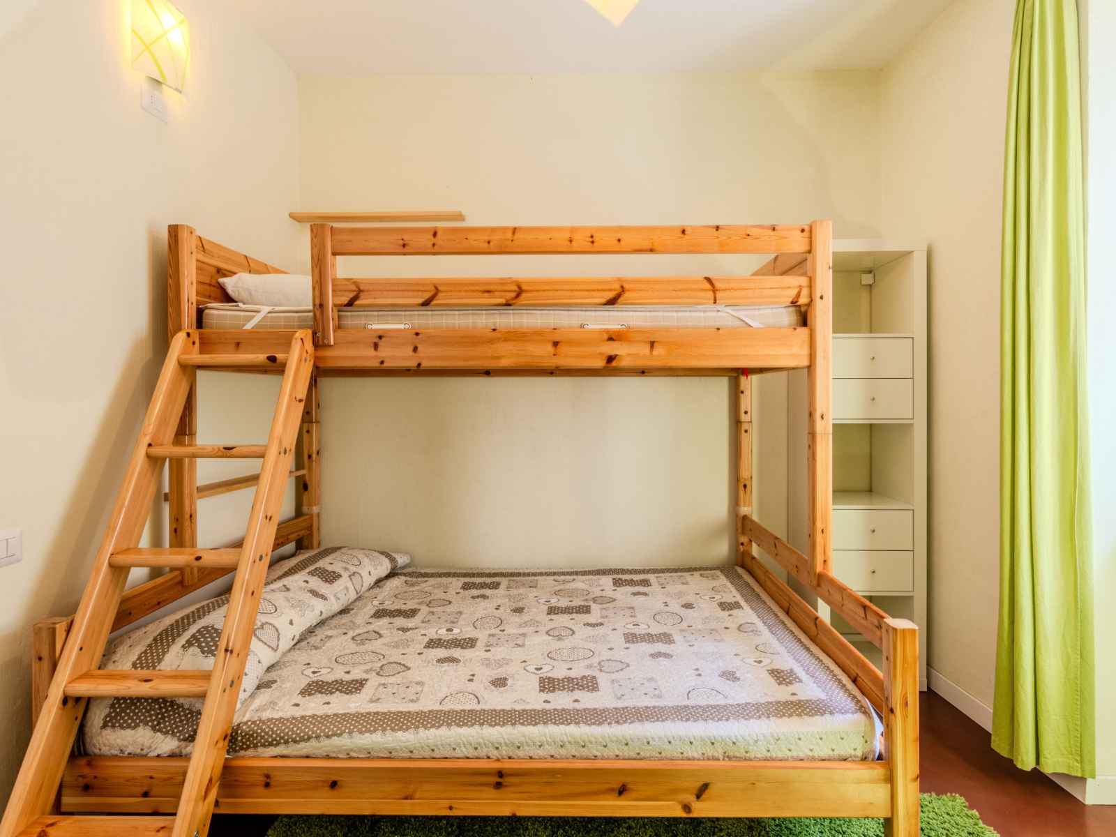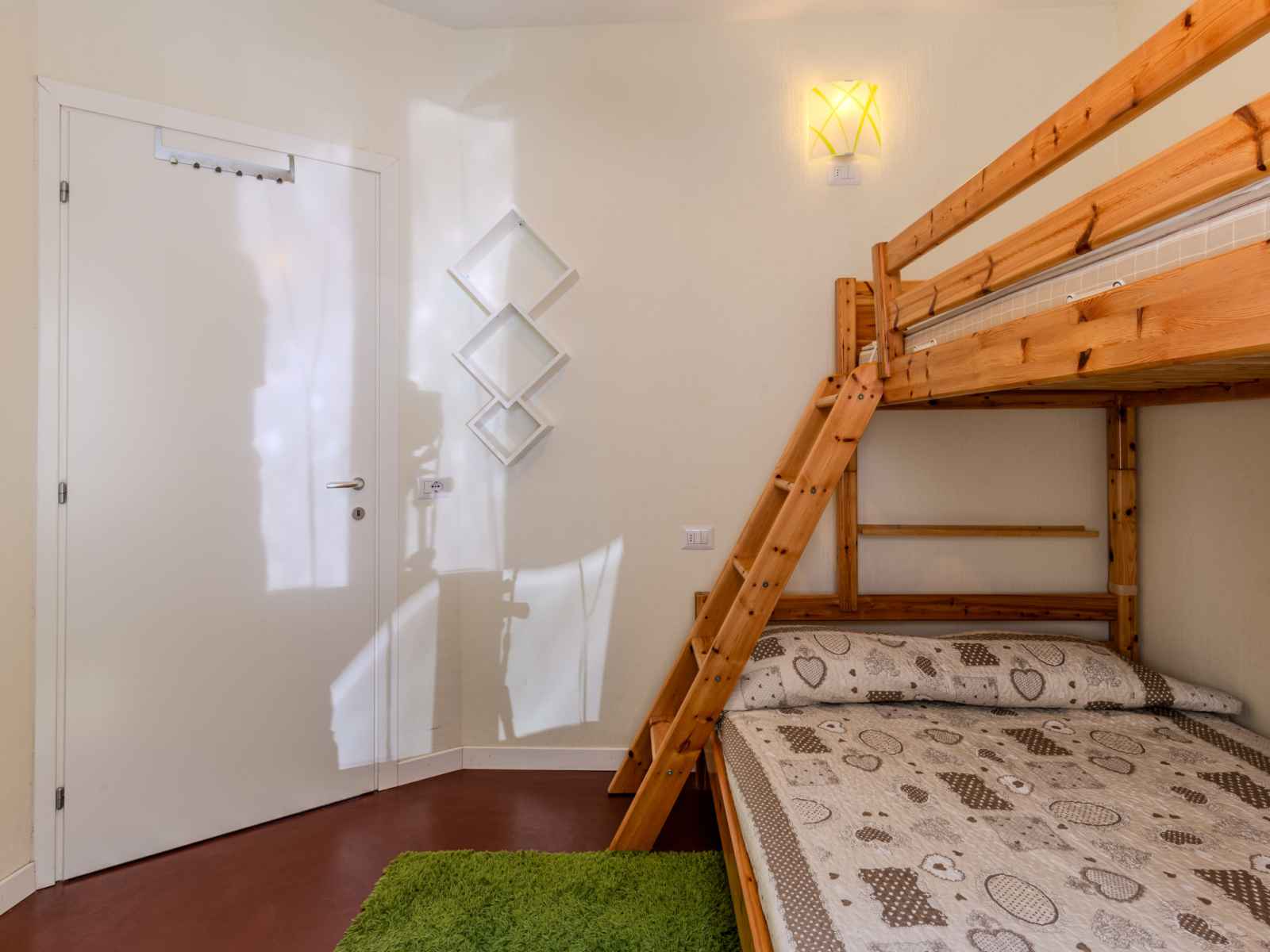 "bosco", apt 3 pièces 50 m2 au 1er étage. aménagement fonctionnel et moderne: séjour/salle à manger avec tv. sortie sur le balcon. 1 chambre double. 1 chambre avec 1 x 2 lits superposés (140 cm). coin cuisine (4 plaques de cuisson, four, lave-vaisselle, congélateur). douche/bidet/wc. chauffage (en sus). possibilité de chauffage uniquement