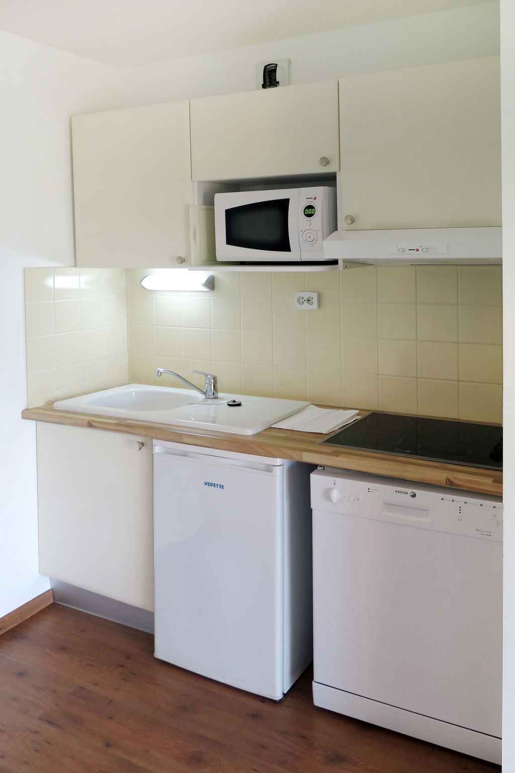 cm). Cuisine ouverte (lave-vaisselle, 4 plaques vitrocéramiques, grille-pain, bouilloire électrique, micro-ondes, cafetière électrique, Capsules pour machine à café (Nespresso) (NON INCLUSES)). Salle de bains, WC séparé. Chauffage électrique. Balcon ou terrasse couverte. Mobilier de balcon. A disposition: chaise haute pour enfant, lit bébé (en sus). Internet (Connexion WIFI, gratuit). Veuillez noter: logement non-fumeur. Maximum 1 animal/ chien autorisé. Détecteur de fumée, extincteur.
