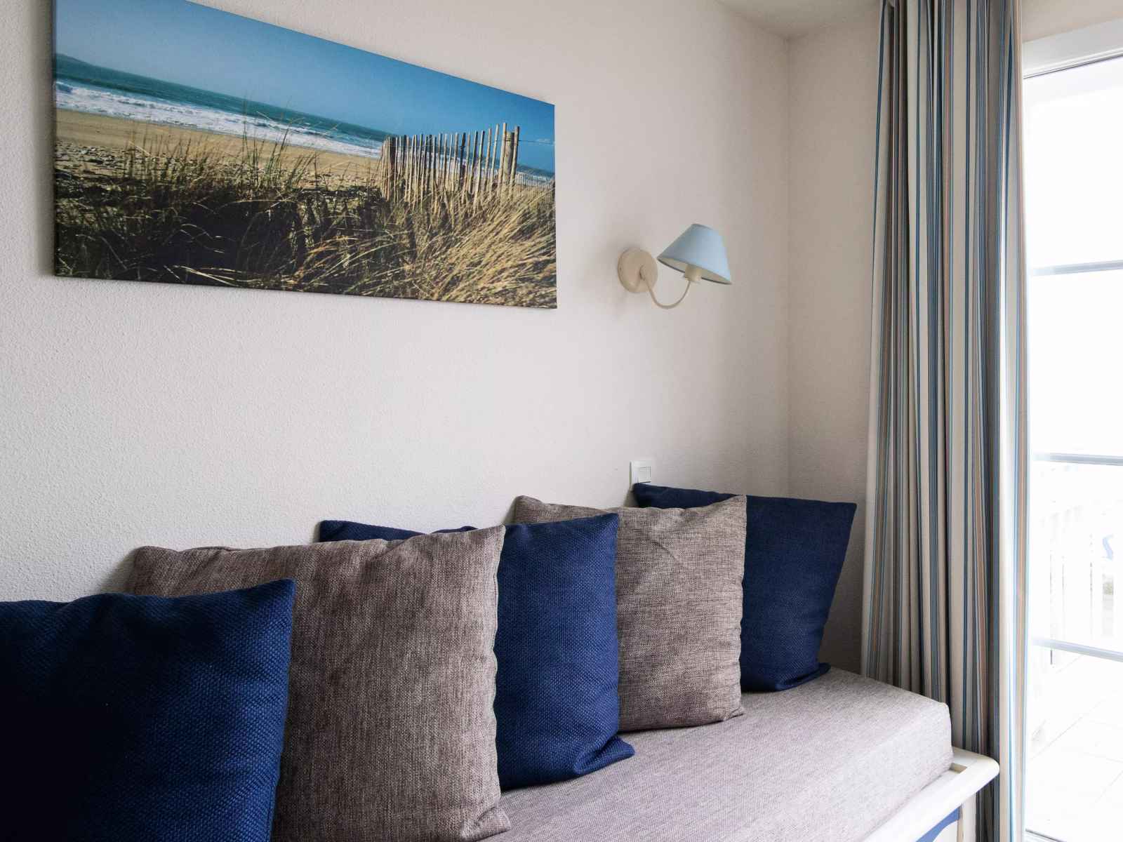 Votre location de vacances comporte : 1 séjour, 1 coin cabine, 1 cuisine, 1 chambre, 2 salles de bain, 1 wc, 1 balcon et 1 parking.