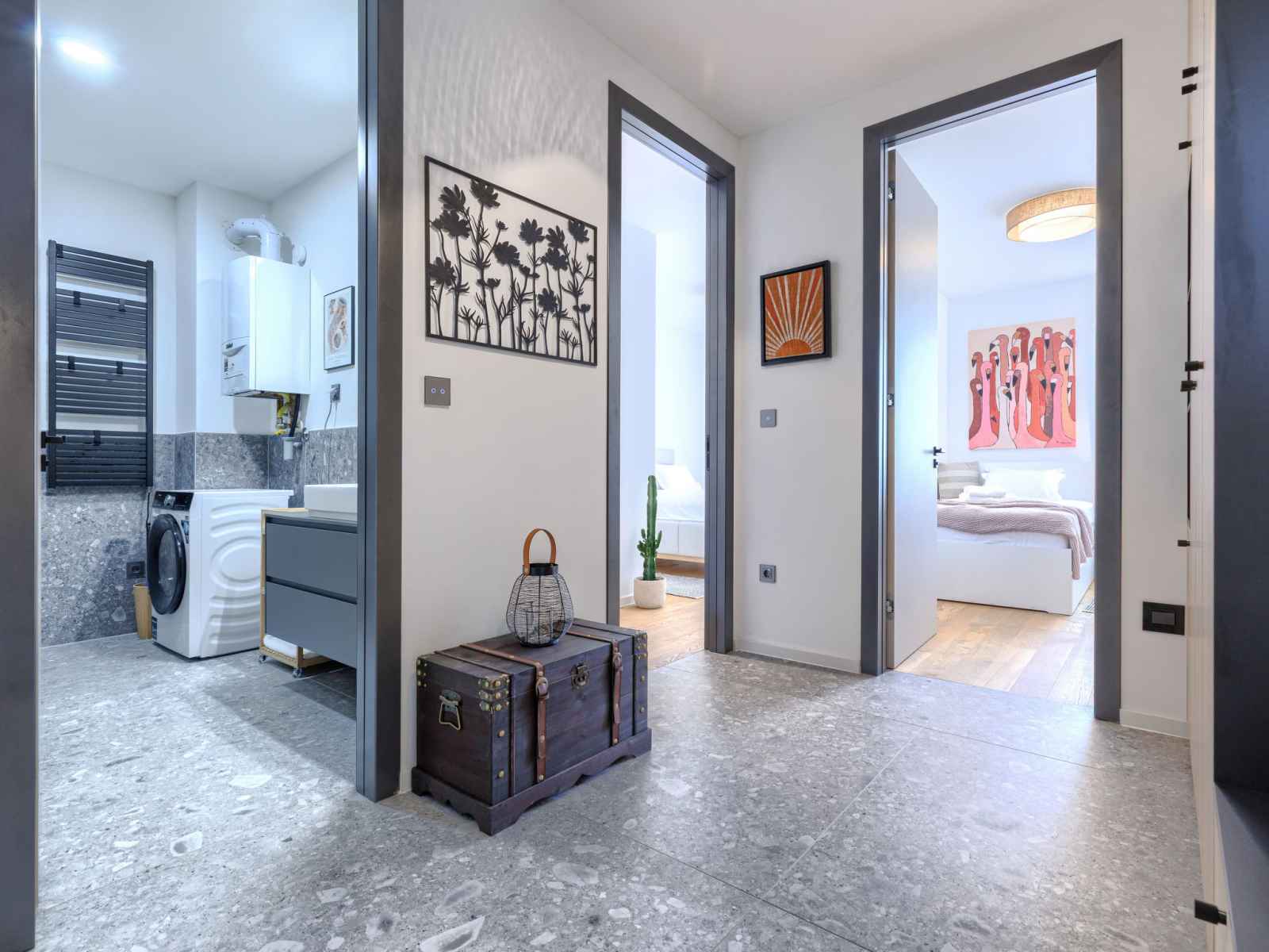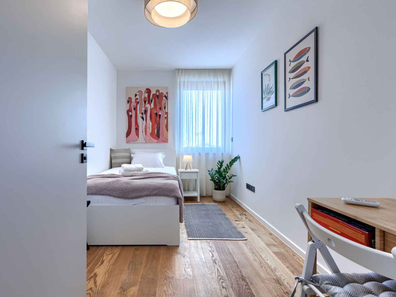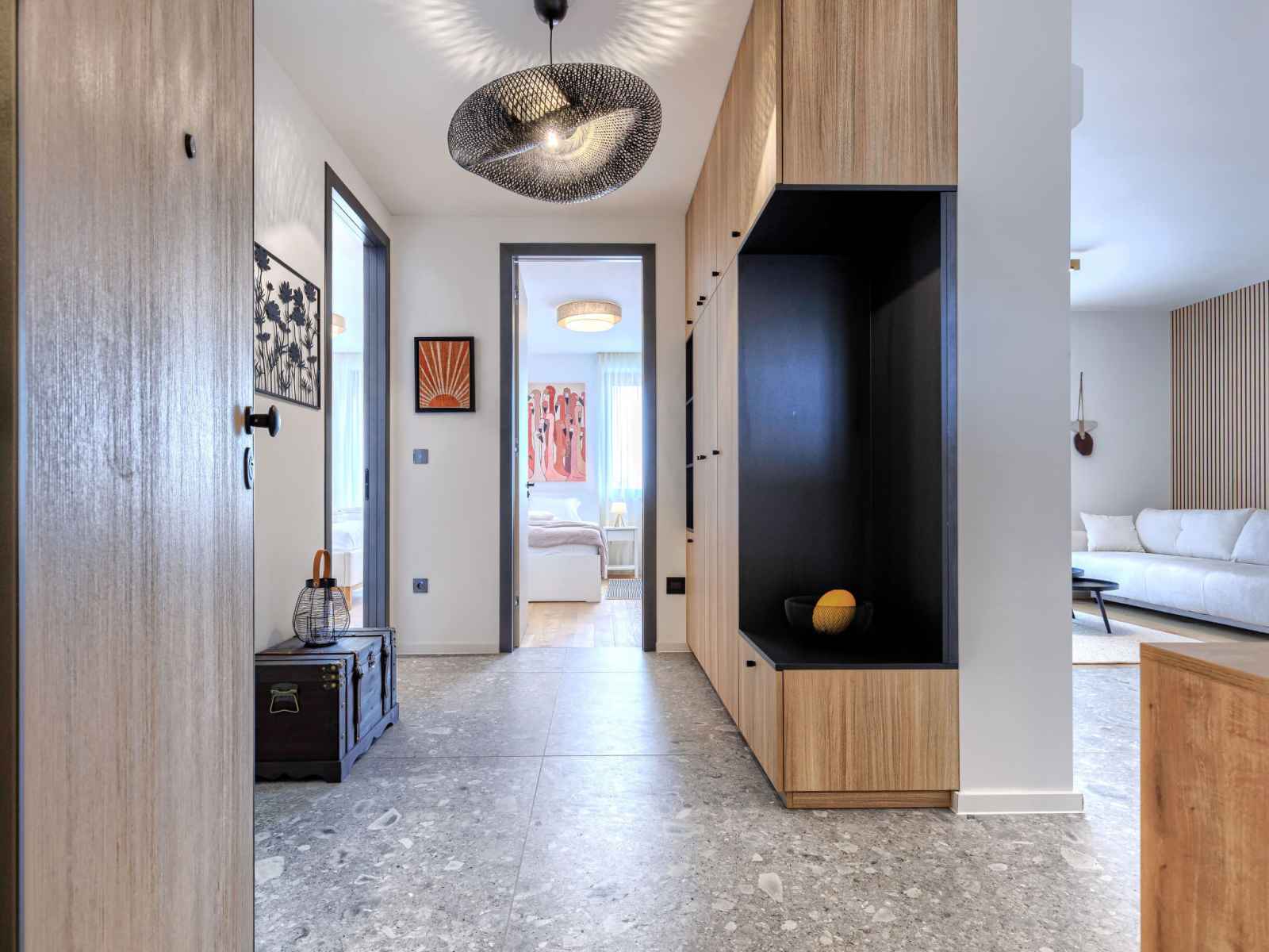 "brnistra", apt 3 pièces 65 m2 au 4ème étage. séjour/salle à manger avec tv (satellite) (écran plat). sortie sur le balcon. 1 chambre avec 1 grand-lit (160 cm, longueur 200 cm). 1 chambre avec 1 lit (120 cm, longueur 200 cm), 1 lit gigogne (longueur 190 cm). cuisine ouverte (four, lave-vaisselle, 4 plaques à induction, grille-pain,