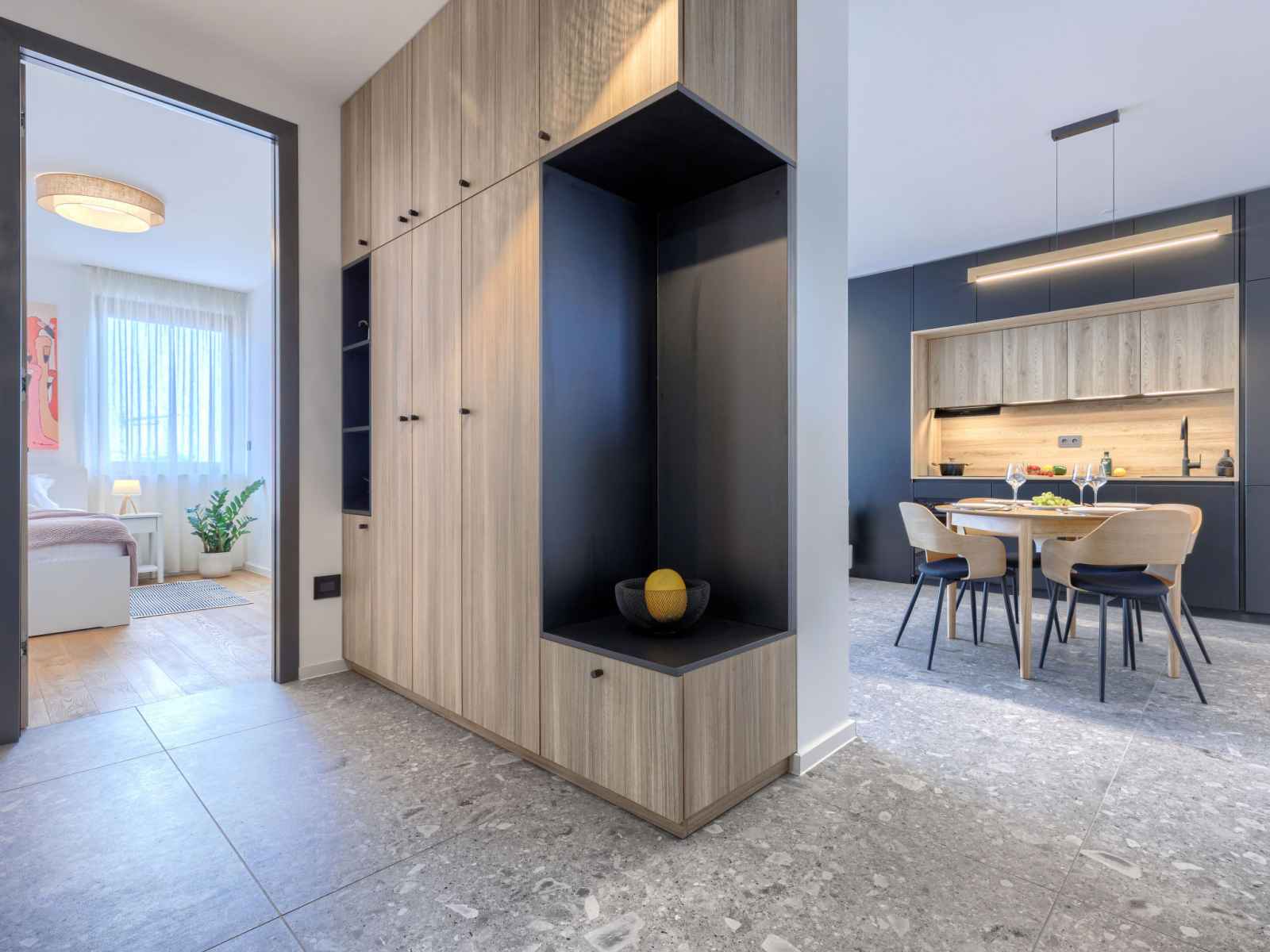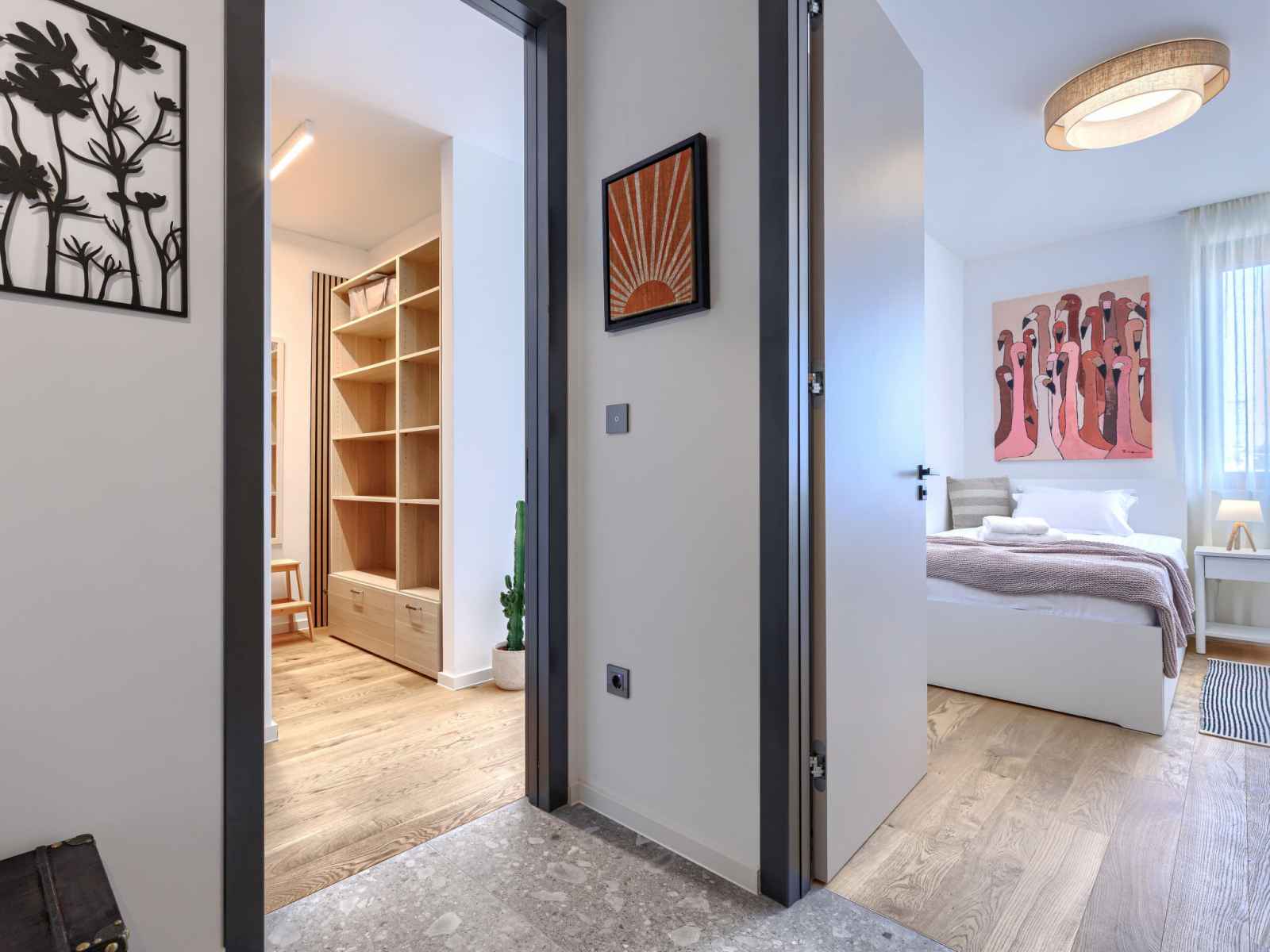 Petite résidence moderne. À 100 m du centre de pula, à 500 m de la mer, à 3 km de la plage, dans une rue. infrastructures de la maison: accès internet, ascenseur, chauffage central, air-conditionné, lave-linge, sèche-linge. place de parking (couvert), garage individuel. magasins 70 m, supermarché 200 m, restaurant 100 m, café 70 m, centre