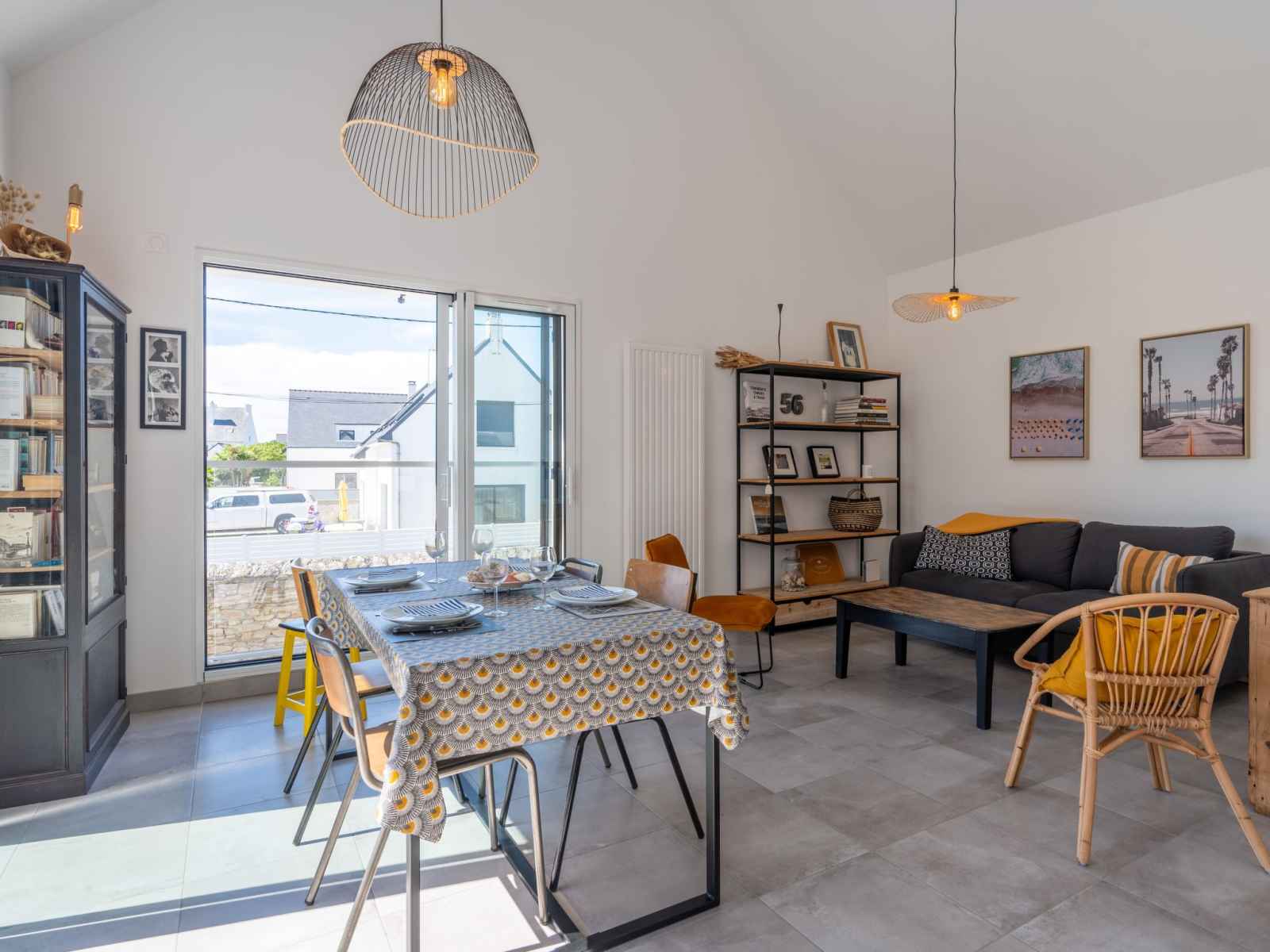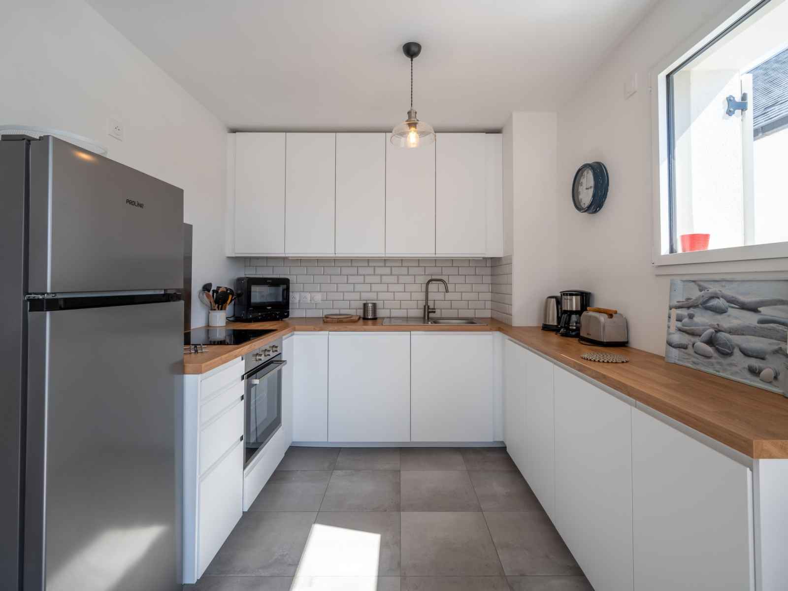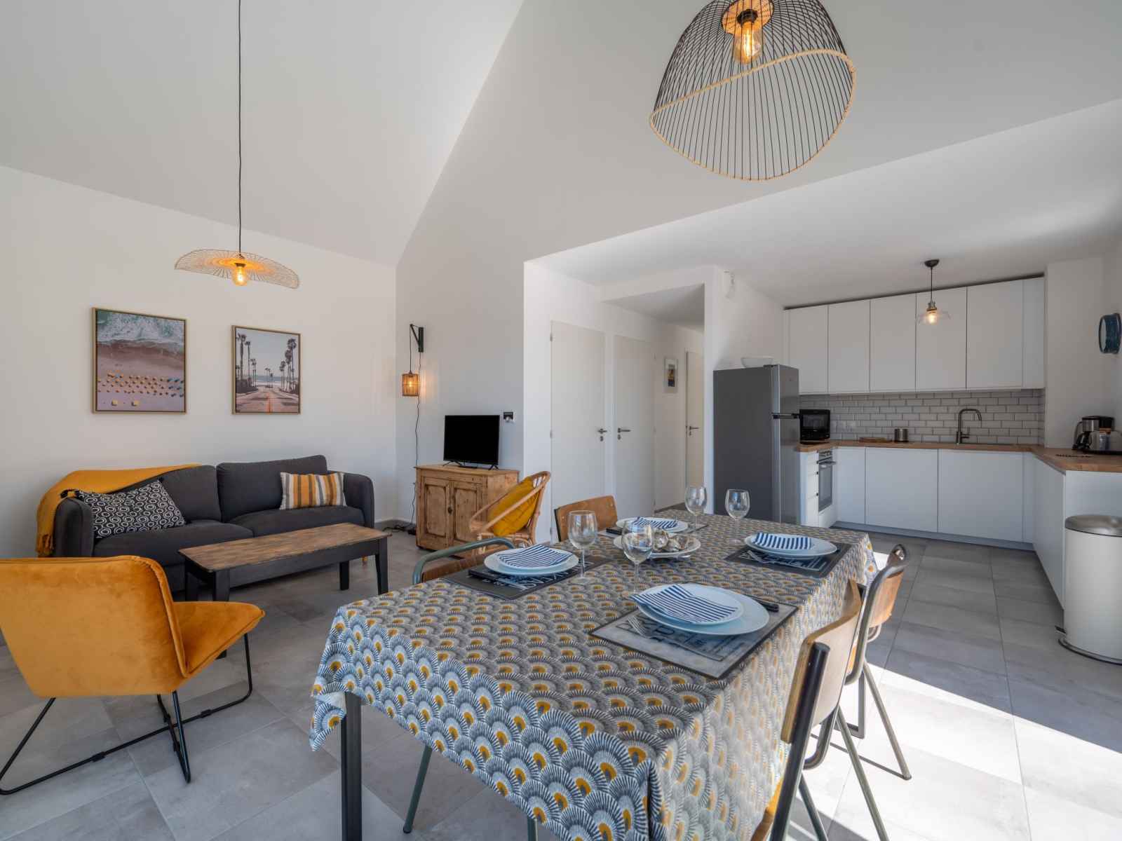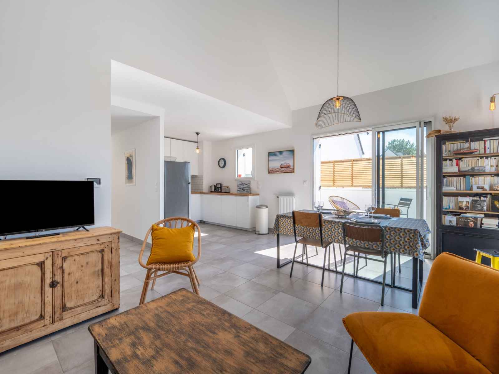 Apt 3 pièces 65 m2 au 1er étage. séjour/salle à manger avec tv (écran plat). sortie sur la terrasse. 1 chambre avec 1 grand-lit (1 x 140 cm, longueur 190 cm). 1 chambre avec 1 lit (90 cm, longueur 190 cm), 1 grand-lit (1 x 140 cm, longueur 190 cm). cuisine (four, lave-vaisselle, 4 plaques à induction, bouilloire électrique, cafetière