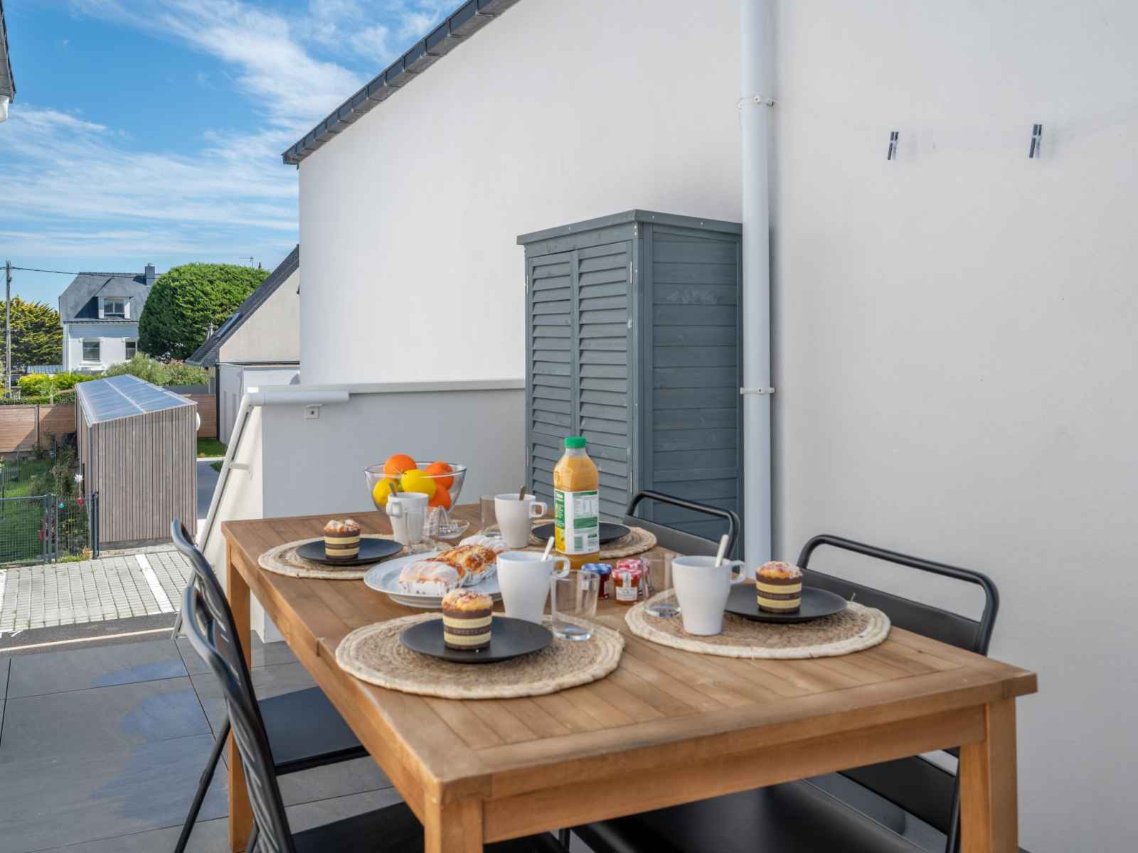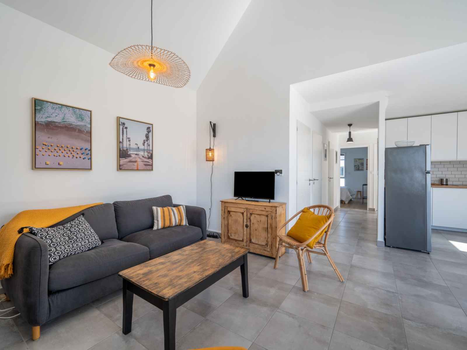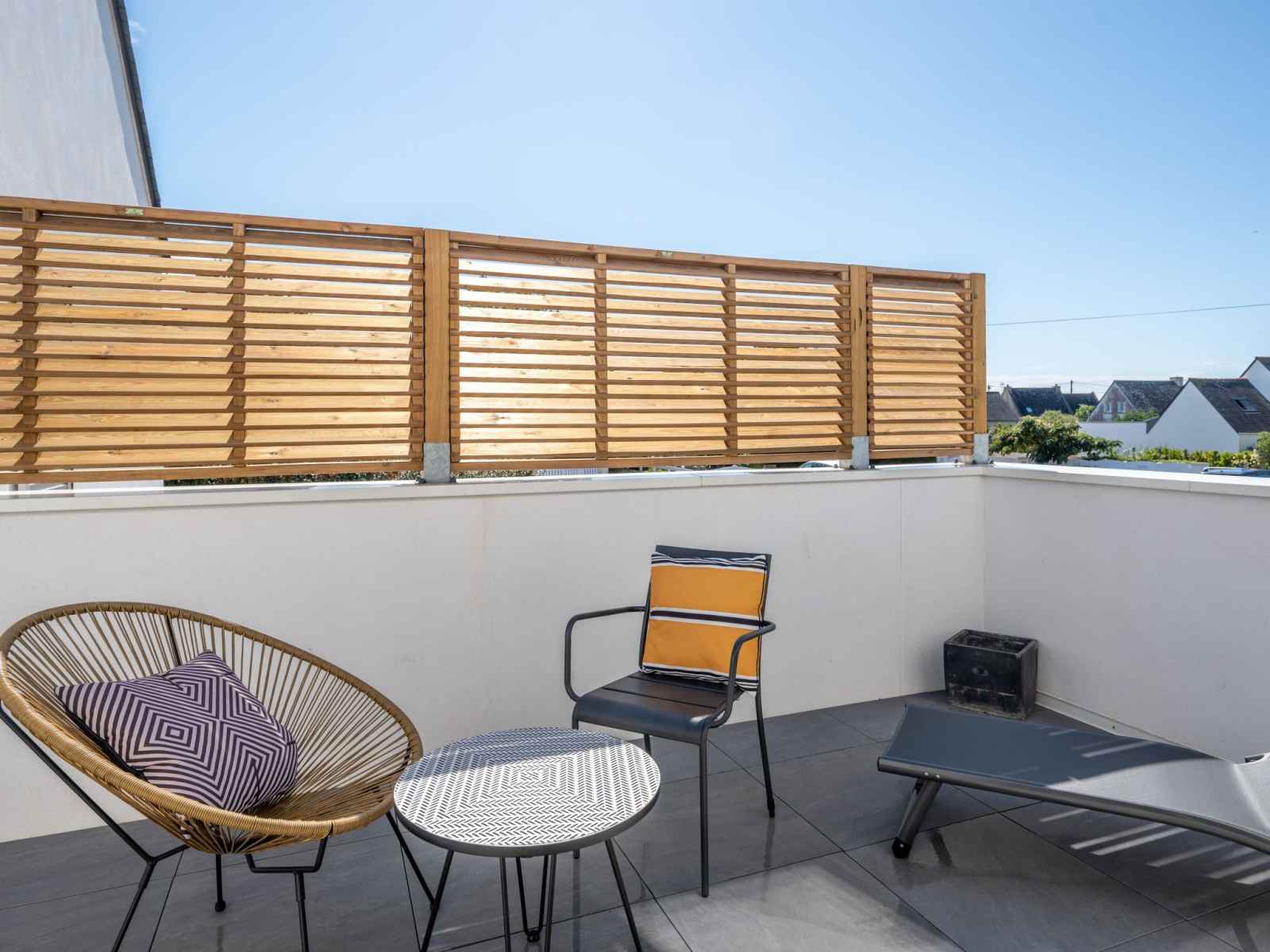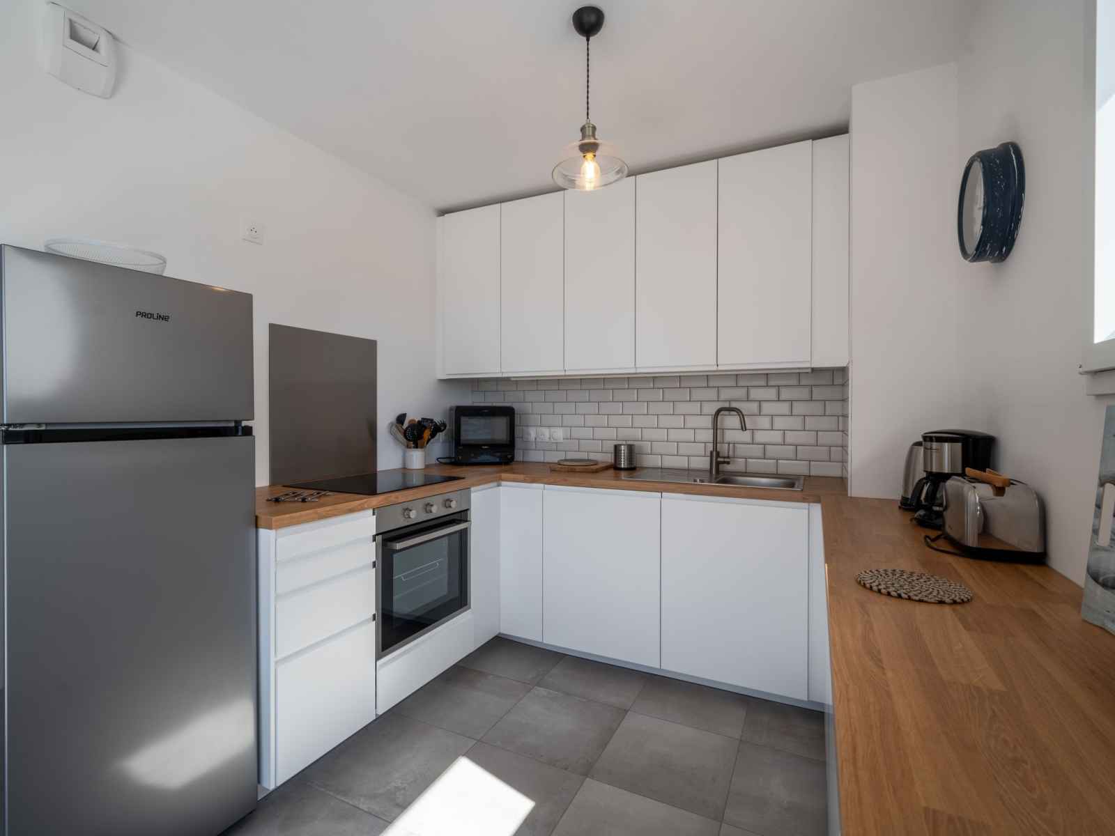 Apt 3 pièces 65 m2 au 1er étage. séjour/salle à manger avec tv (écran plat). sortie sur la terrasse. 1 chambre avec 1 grand-lit (1 x 140 cm, longueur 190 cm). 1 chambre avec 1 lit (90 cm, longueur 190 cm), 1 grand-lit (1 x 140 cm, longueur 190 cm). cuisine (four, lave-vaisselle, 4 plaques à induction, bouilloire électrique, cafetière