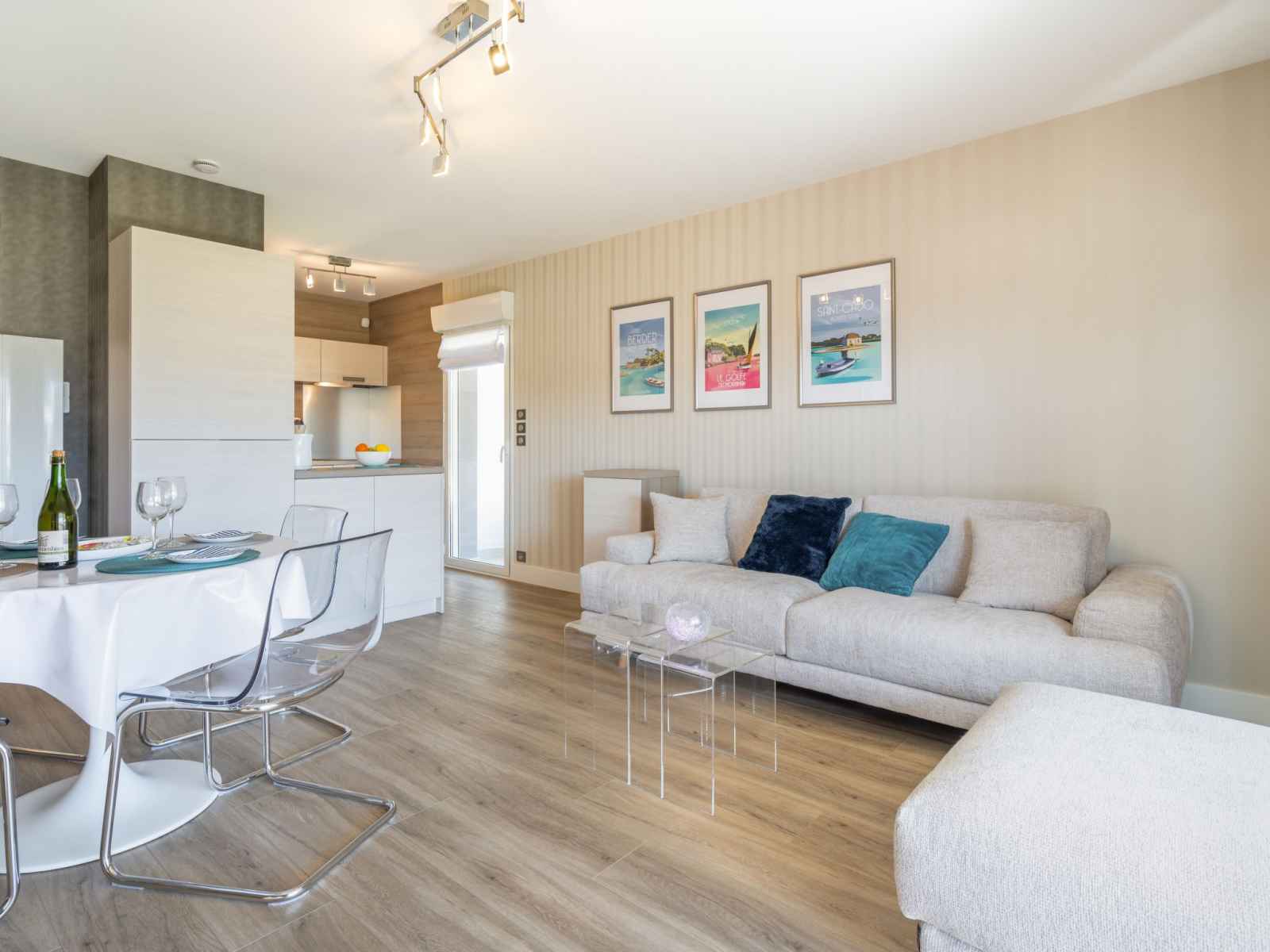 Quiberon: belle résidence "parc saint-clément", de 2 étages. en bordure de la localité, à 1 km du centre de quiberon, à 400 m de la mer, à 400 m de la plage. en commun: jardin entretenu, pelouse. magasins 1.2 km, supermarché 1 km, arrêt de bus 300 m, piscine couverte 150 m, centre thermal "thalassothérapie de quiberon" 900 m. terrain de