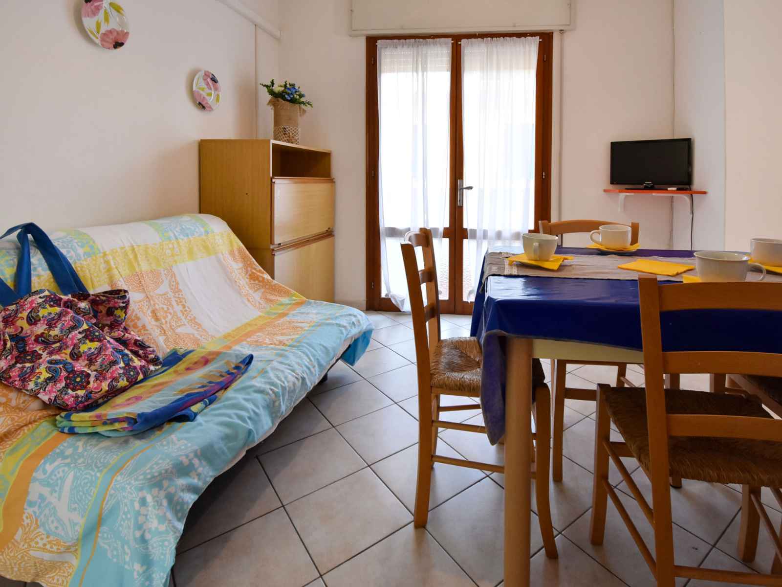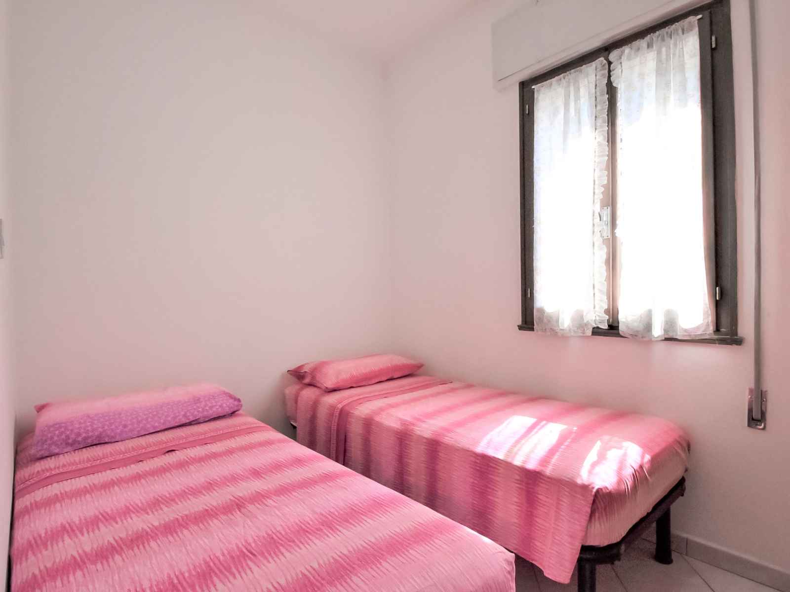 Apt 3 pièces 40 m2. clair, aménagement simple et fonctionnel: séjour/salle à manger avec 1 divan-lit double, table pour les repas et tv. 1 chambre avec 2 lits. 1 chambre avec 1 lit double. coin cuisine (4 plaques de cuisson, four, congélateur). douche/bidet/wc. air-conditionné. pas de chauffage. a disposition: chaise haute pour enfant, lit