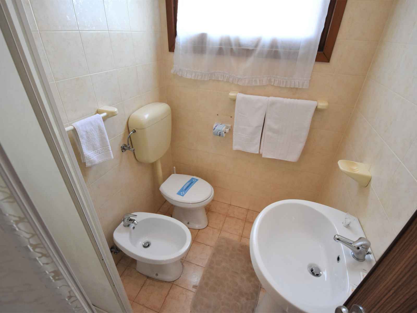 Immeuble simple "casa daniela", de 2 étages. 6 appartements dans la même entité. À 250 m du centre de rosolina mare, à 200 m de la mer, à 150 m de la plage. en commun: jardin (clôturé) avec plantes, place de parking près de la maison, parking public possible dans la rue. supermarché 100 m, restaurant, bar 150 m, arrêt de bus "rosolina"