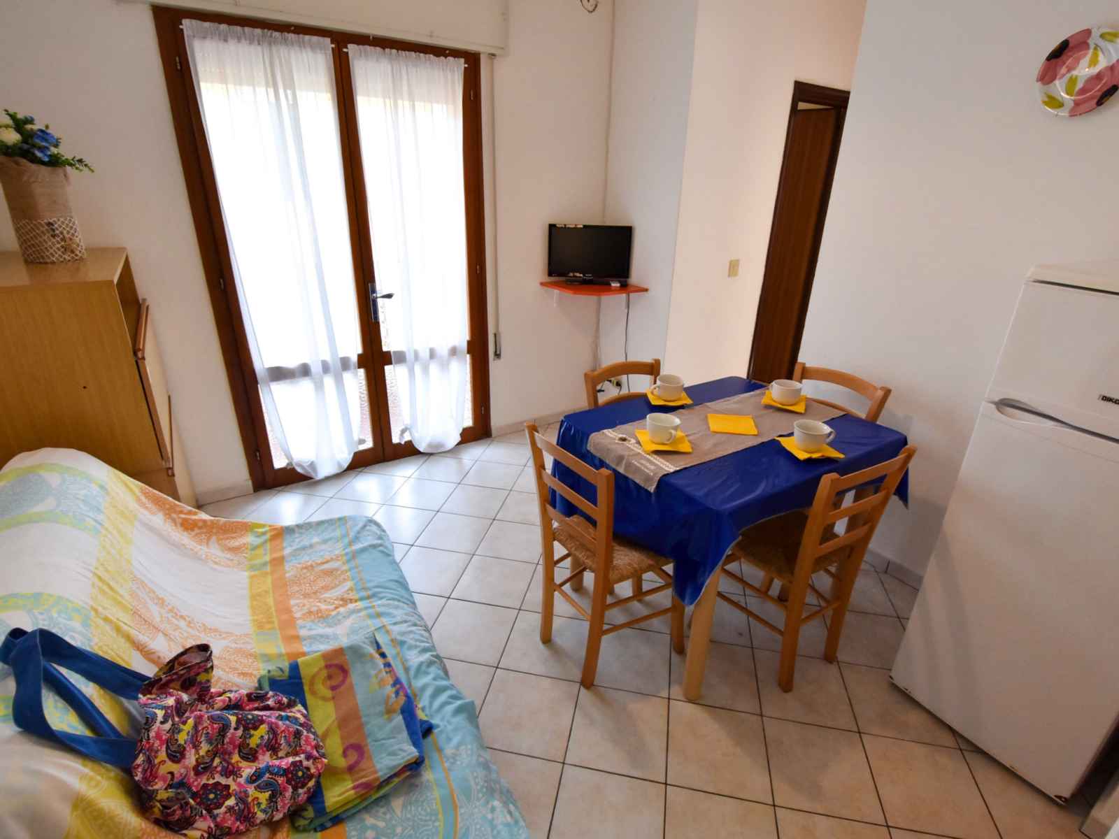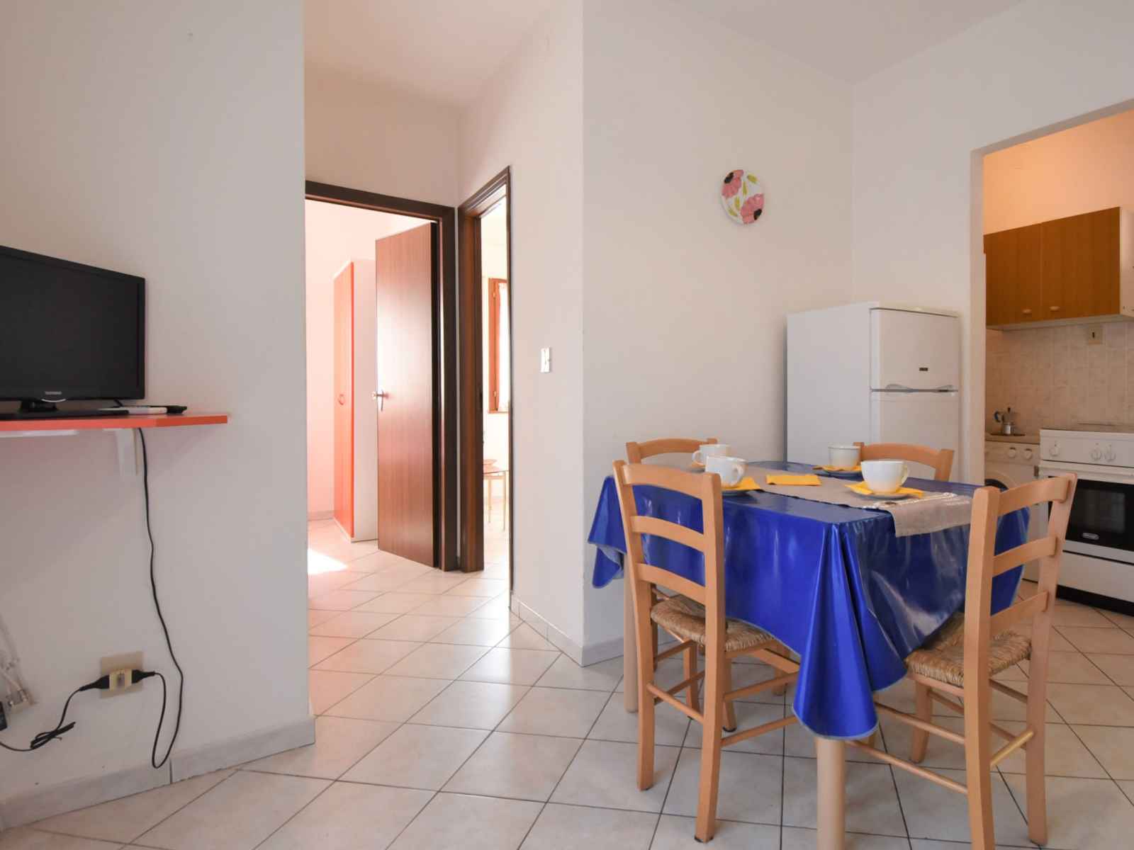 Apt 3 pièces 40 m2. clair, aménagement simple et fonctionnel: séjour/salle à manger avec 1 divan-lit double, table pour les repas et tv. 1 chambre avec 2 lits. 1 chambre avec 1 lit double. coin cuisine (4 plaques de cuisson, four, congélateur). douche/bidet/wc. air-conditionné. pas de chauffage. a disposition: chaise haute pour enfant, lit