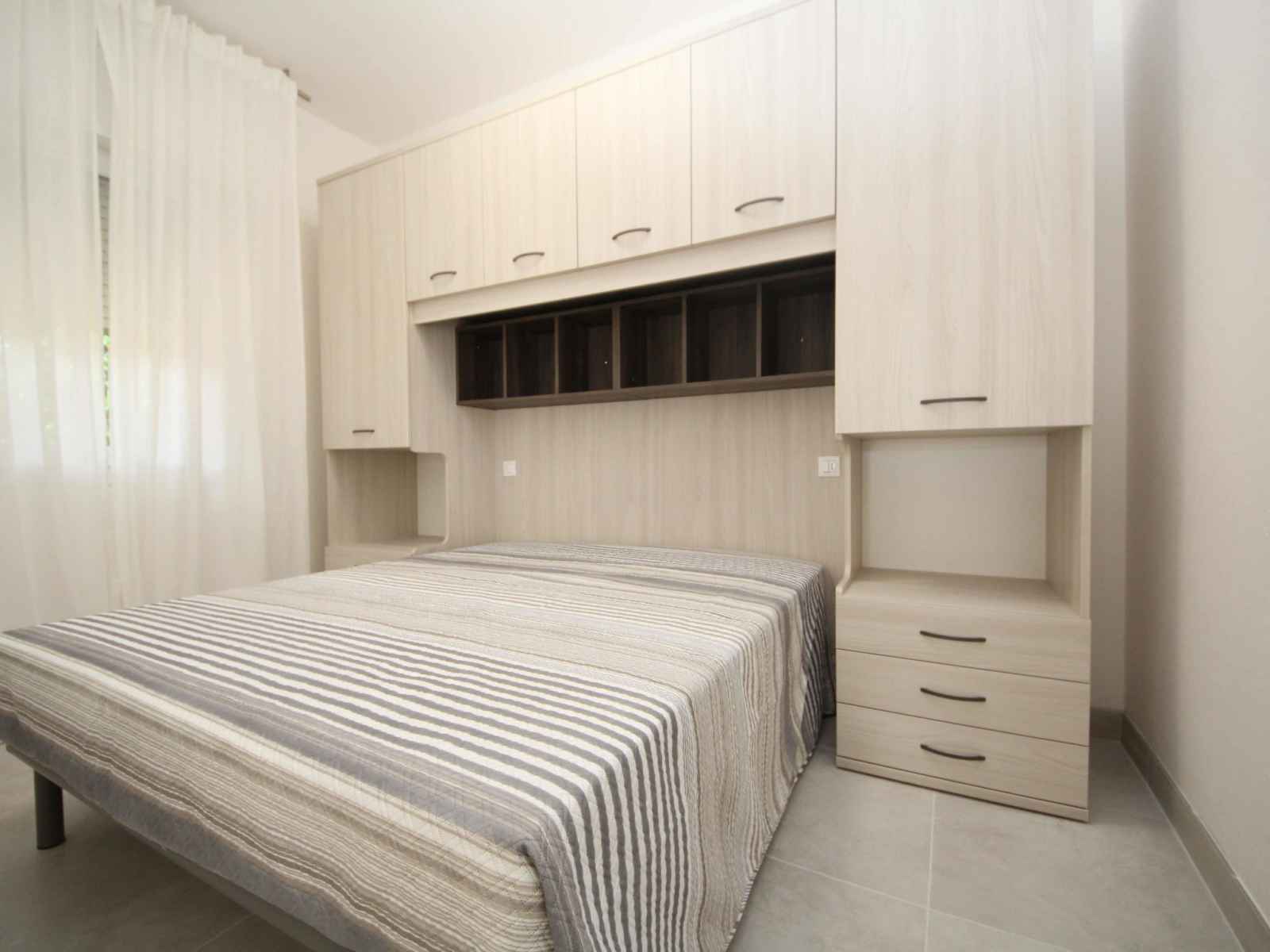 Apt 3 pièces 60 m2. aménagement moderne et de style: séjour/chambre à coucher avec 1 divan-lit, table pour les repas, coin-cuisine et tv. sortie sur le balcon. 1 chambre double. 1 chambre avec 1 x 2 lits superposés, 1 lit double. cuisine ouverte (four, lave-vaisselle, poêle à gaz, 4 feux, congélateur). douche/bidet/wc. air-conditionné,