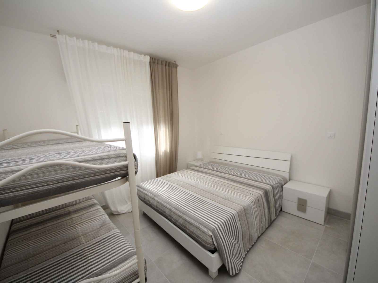 Apt 3 pièces 60 m2. aménagement moderne et de style: séjour/chambre à coucher avec 1 divan-lit, table pour les repas, coin-cuisine et tv. sortie sur le balcon. 1 chambre double. 1 chambre avec 1 x 2 lits superposés, 1 lit double. cuisine ouverte (four, lave-vaisselle, poêle à gaz, 4 feux, congélateur). douche/bidet/wc. air-conditionné,