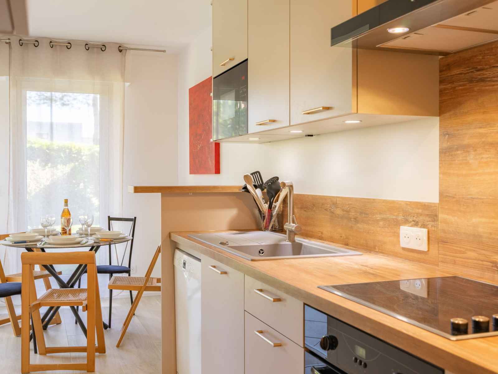 jardinet. Petite cuisine (four, lave-vaisselle, 4 plaques vitrocéramiques, grille-pain, bouilloire électrique, micro-ondes, congélateur, cafetière électrique). Douche, WC séparé. Chauffage électrique. Petite terrasse. Meubles de terrasse. A disposition: lave-linge, sèche-linge. Internet (Connexion WIFI, gratuit). Place de parking. Veuillez noter: détecteur de fumée. Annonce d'un particulier (art 155, IV du CGI). 17306000314PJ