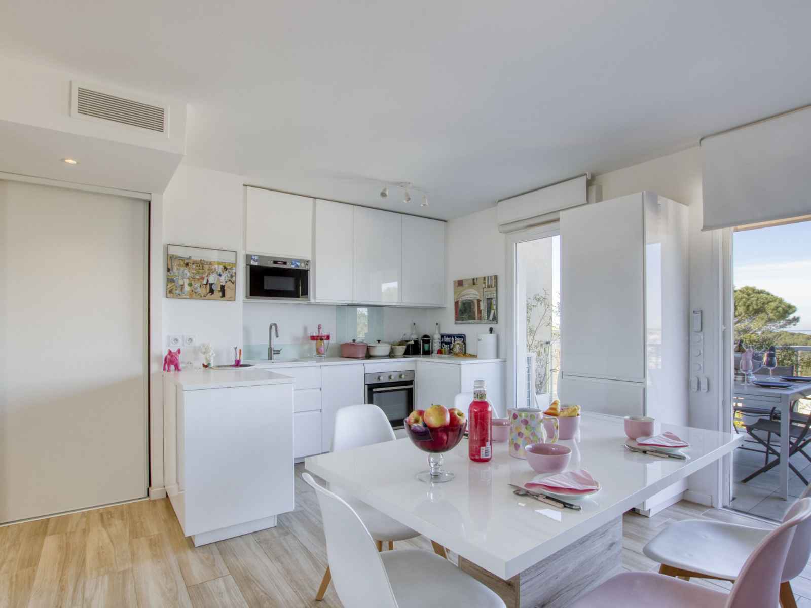 air-conditionné. Cuisine ouverte (four, lave-vaisselle, 4 plaques à induction, grille-pain, bouilloire électrique, micro-ondes, congélateur, cafetière électrique). Sortie sur la terrasse. Douche, WC séparé. Chauffage à air chaud. Terrasse 20 m2, situation sud-ouest. Meubles de terrasse. Très belle vue panoramique sur la mer. A disposition: lave-linge. Internet (Connexion WIFI, gratuit). Place de parking No 13 (1 Voiture). Veuillez noter: logement non-fumeur. TV seulement FR. Détecteur de fumée. Annonce d'un particulier (art 155, IV du CGI). 83123000920IW