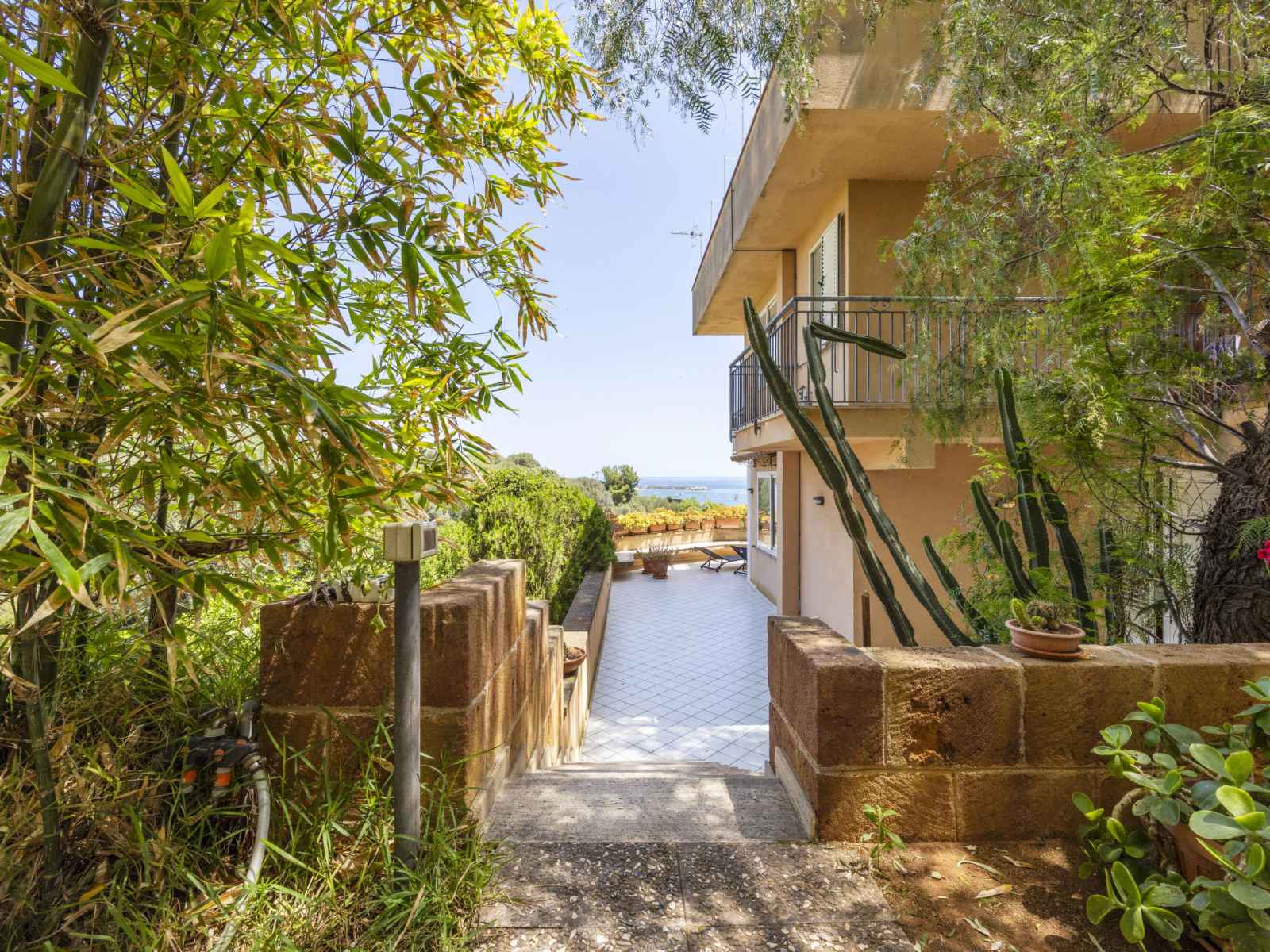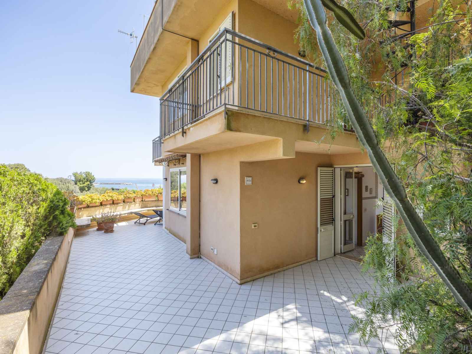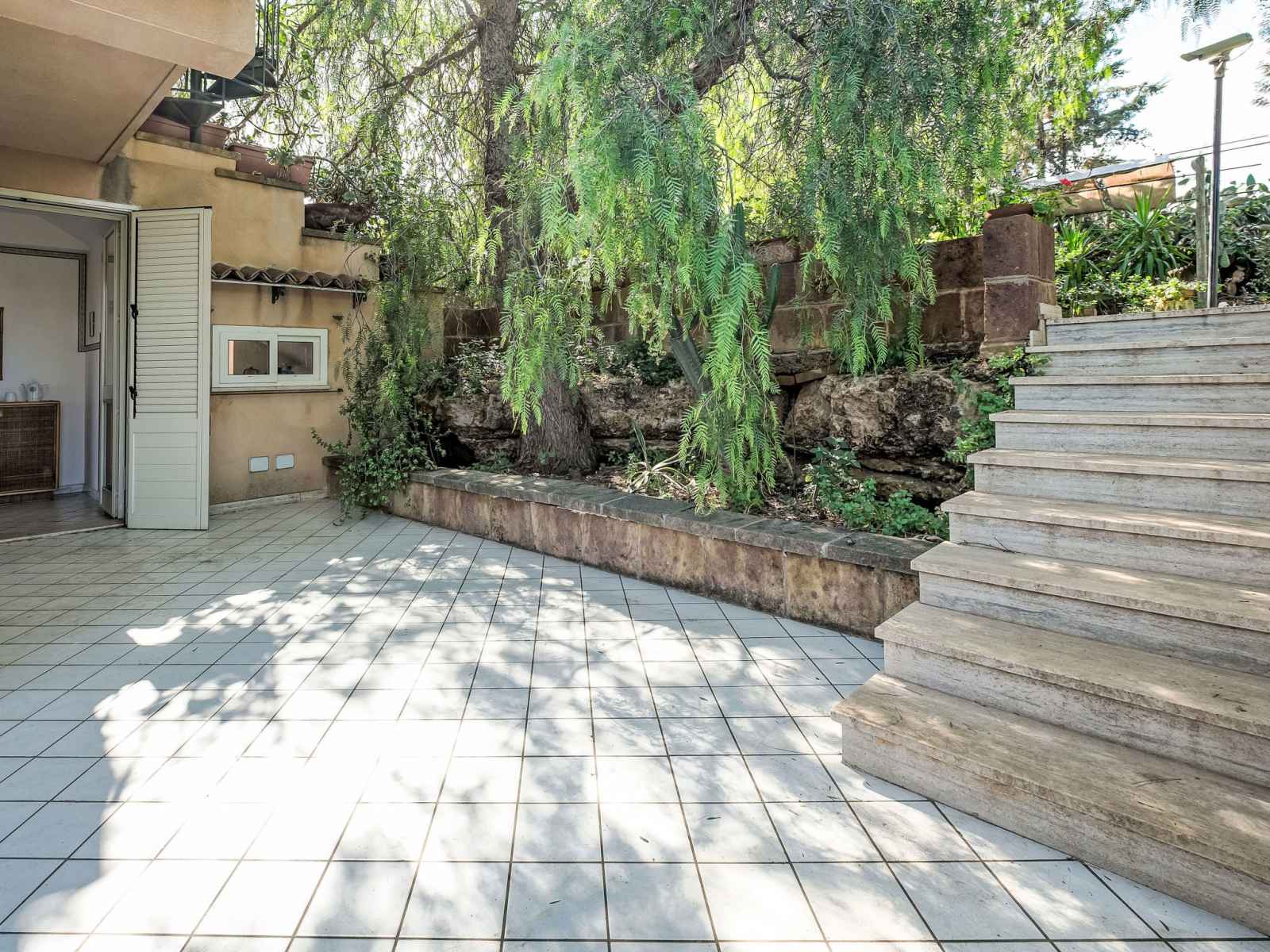 Résidence, environnée par les arbres. 10 appartements dans la résidence. À 1 km du centre de santa flavia, à 3 km du centre de bagheria, situation ensoleillée sur un versant, à 100 m de la mer, à 100 m de la plage, dans la verdure. en commun: terrain, jardin (clôturé) avec plantes et arbres, verger. douche extérieure, ping-pong, terrain
