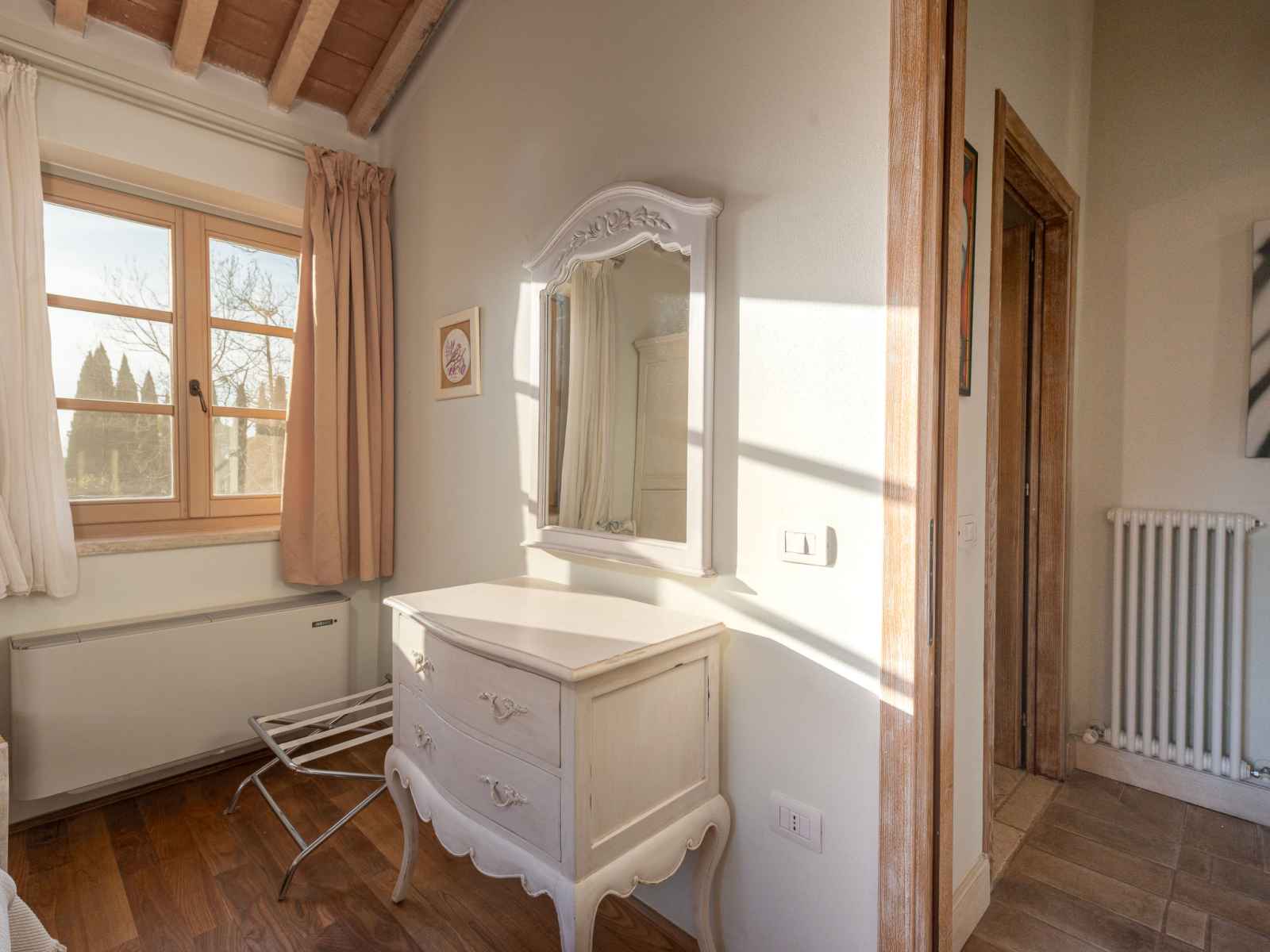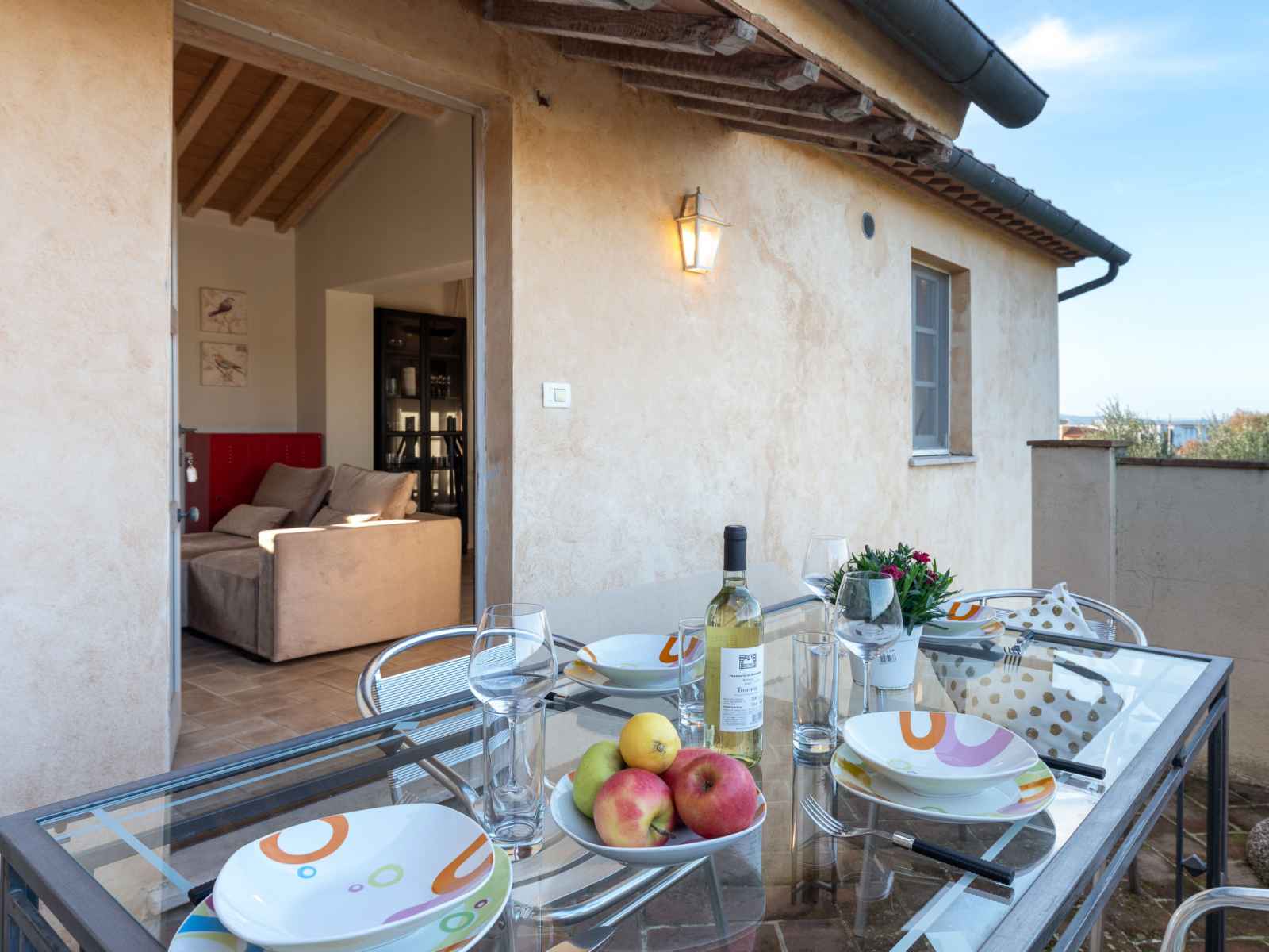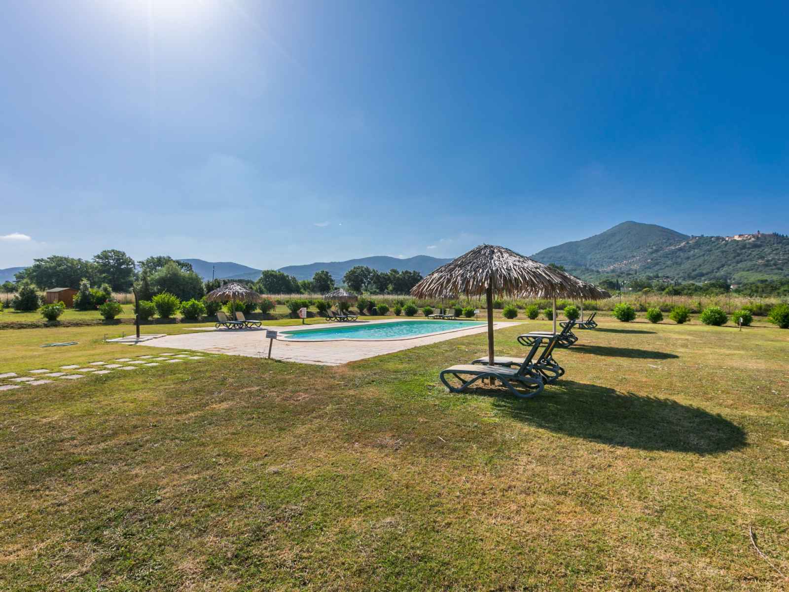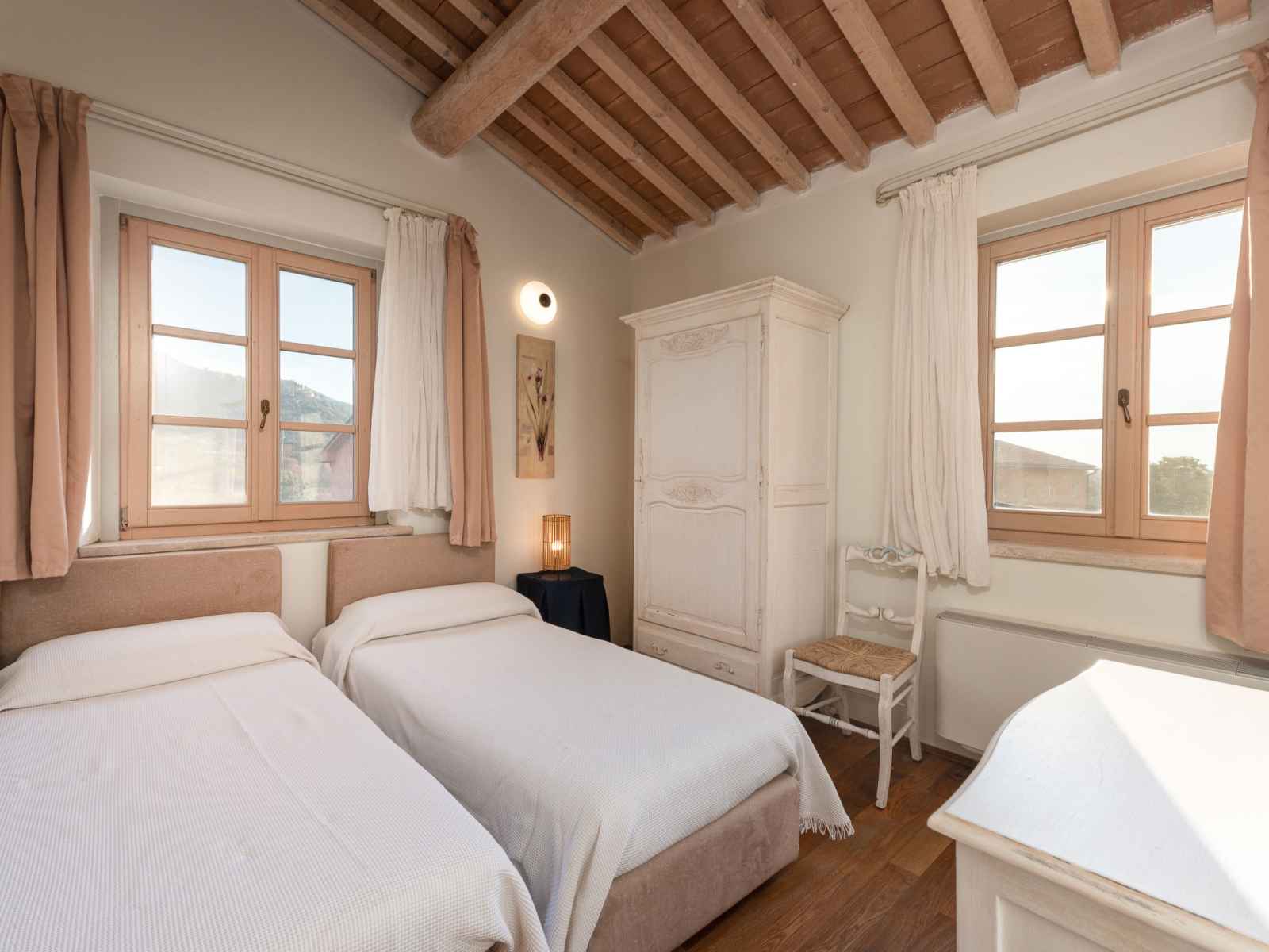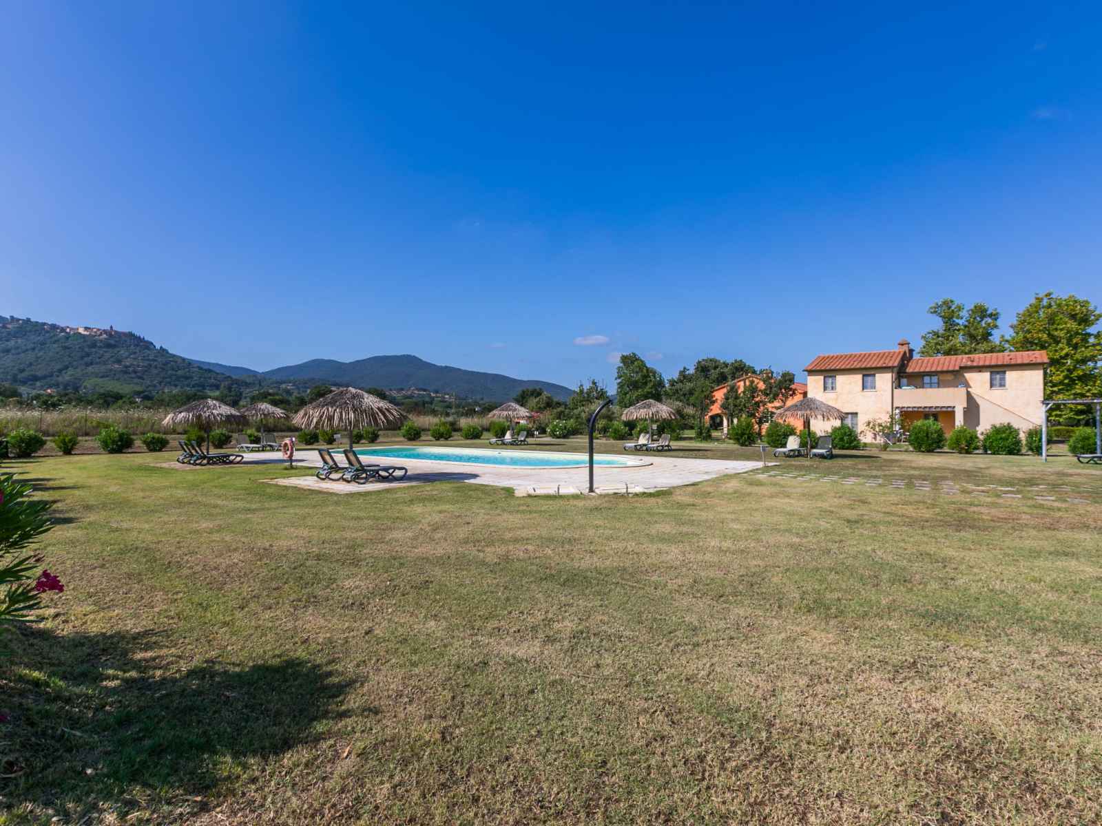 chambre avec 2 lits et air-conditionné. Cuisine ouverte (four, 4 feux, grille-pain, bouilloire électrique, micro-ondes, cafetière électrique) avec air-conditionné. 2 douches/bidet/WC. Chauffage à air chaud. Sol en parquet, sol en pierres naturelles. Mobilier confortable de style campagnard. Terrasse 12 m2. Meubles de terrasse. Belle vue sur la piscine et les alentours. A disposition: Internet (Connexion WIFI, gratuit). Place de parking. Veuillez noter: logement non-fumeur. Maximum 1 animal/ chien autorisé. Entrée privée. IT053024C2UIYFP84S