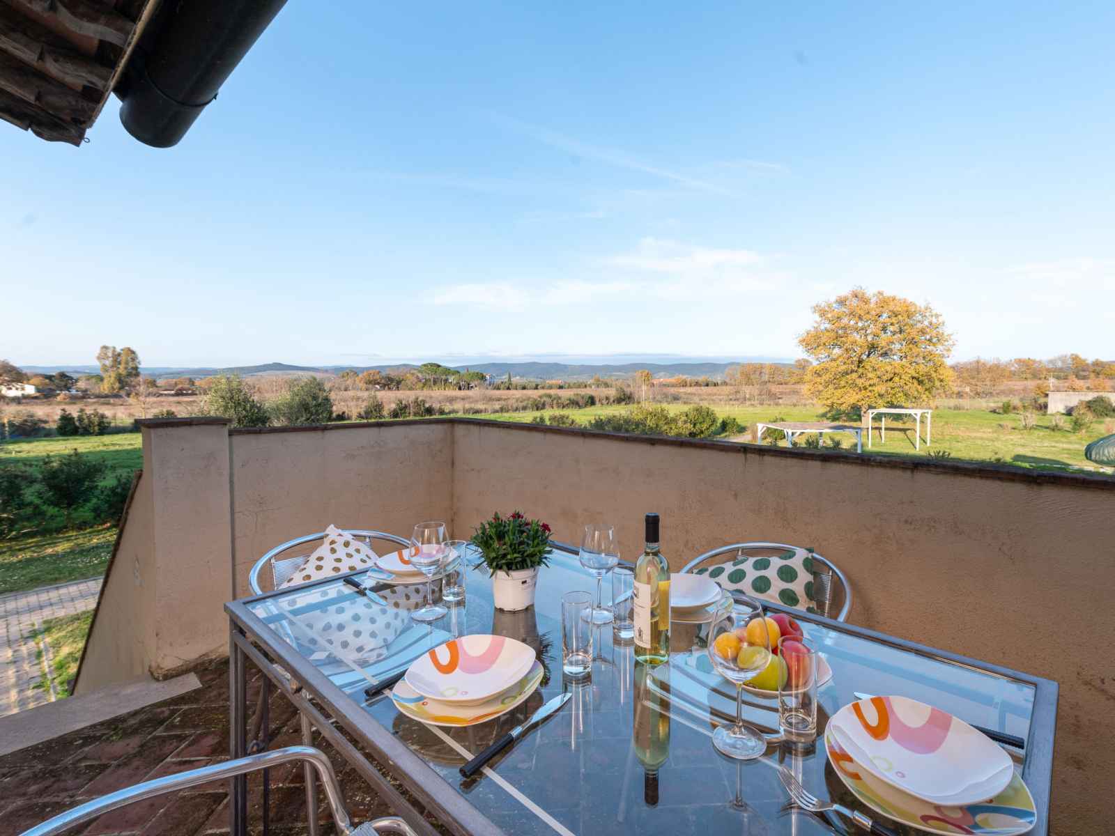 Belle résidence, environnée par les arbres et vignobles. 12 appartements dans la résidence. À 2 km du centre de scarlino scalo, à 4 km du centre de scarlino, situation tranquille, ensoleillée, à 7 km de la mer, dans la verdure. en commun: parc 1'500 m2 (clôturé), jardin propice à la détente, piscine (14 x 6 m, profondeur 110 - 140 cm,
