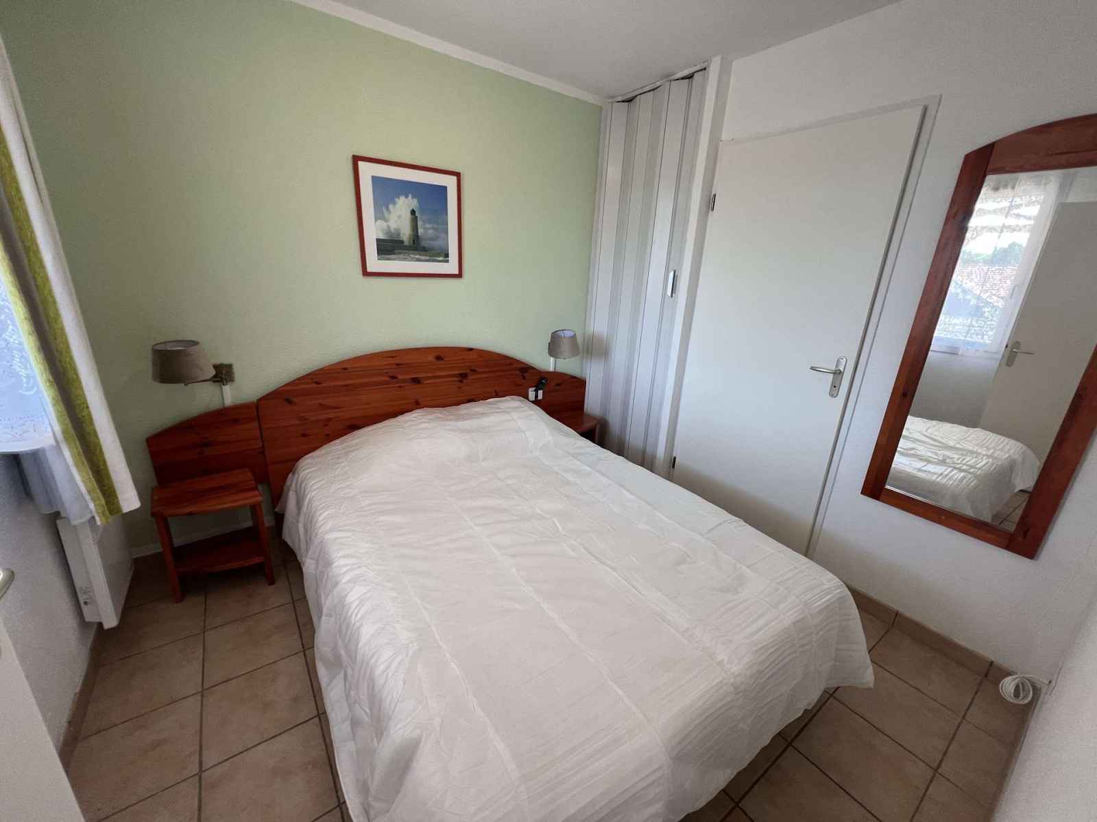 • Equipements : 1 Lit double 140 cm, 1 Lit simple 90 cm, 2 Lits simples superposés 90 cm, 4 Feux à induction, Aspirateur, Bouilloire, Cafetière à filtre, Etendoir à linge, Grille pain, Hotte aspirante, Lave-vaisselle, Micro-ondes, Parasol, Réfrigérateur/ Congélateur, Table + chaises extérieures, Télévision, Transat