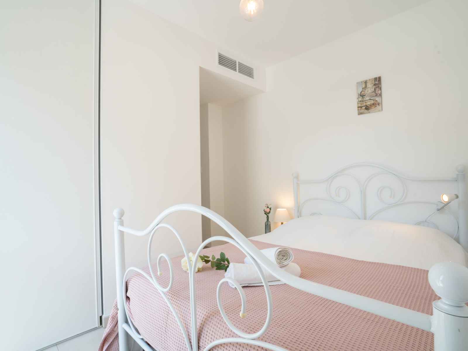 cm, longueur 190 cm), air-conditionné et volet roulant électrique. Cuisine ouverte (four, lave-vaisselle, 3 plaques à induction, grille-pain, bouilloire électrique, micro-ondes, congélateur, cafetière électrique, Capsules pour machine à café (Senseo) (NON INCLUSES)). Douche, WC séparé, double vasque. Chauffage. Terrasse 12 m2. Meubles de terrasse, chaises longues (2). Vue latérale sur la mer. A disposition: lave-linge, fer à repasser, sèche-cheveux. Internet (Connexion WIFI, gratuit). Garage No 15 (1 Voiture), hauteur 210 cm, largeur 218 cm. Veuillez noter: détecteur de fumée. 1CYX6X
