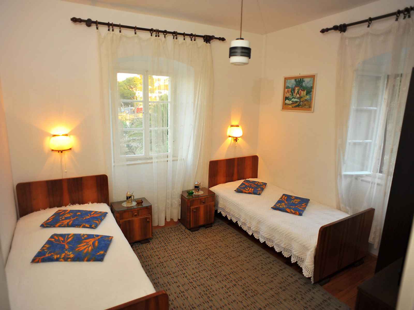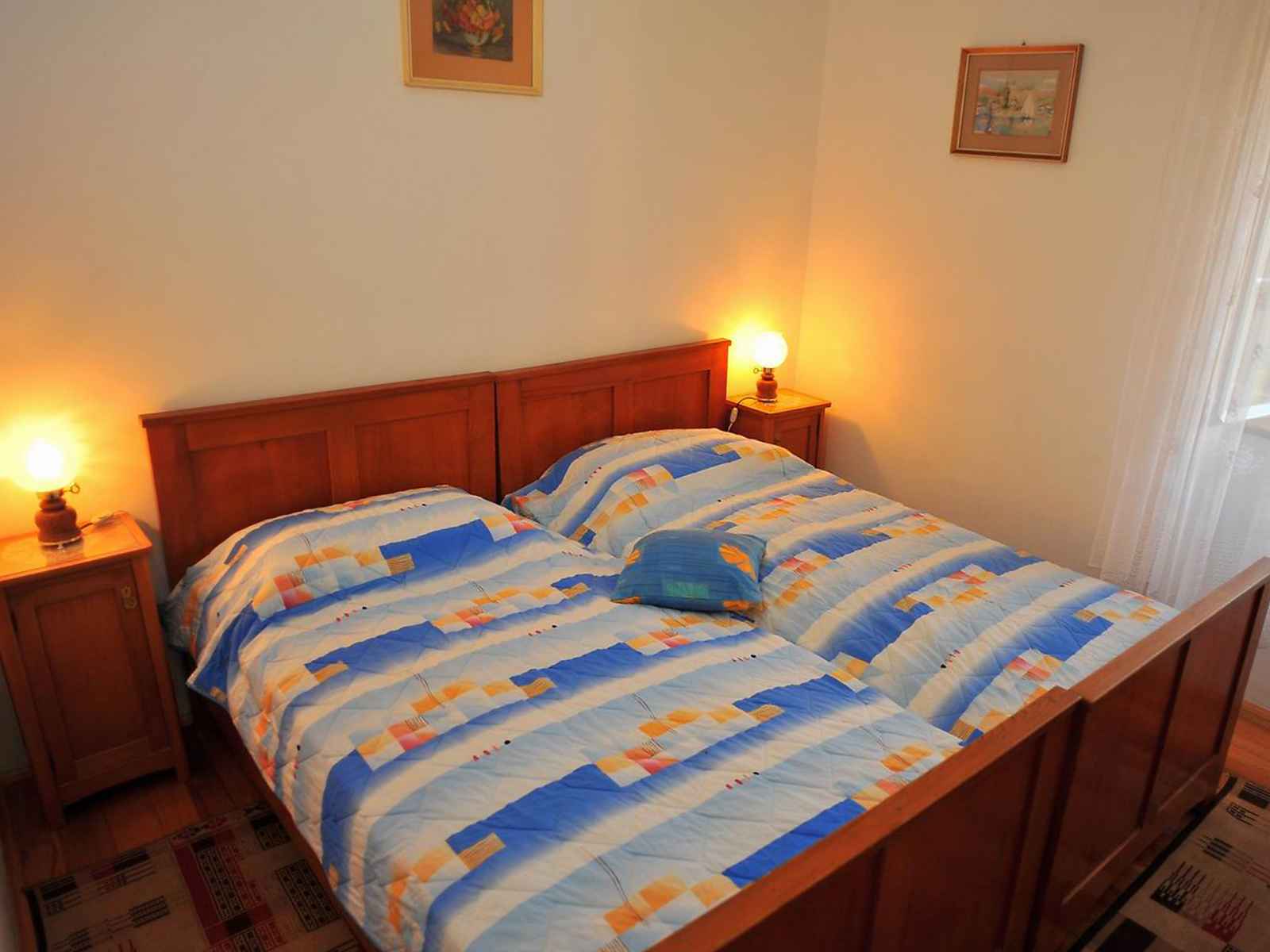 Apt 3 pièces 70 m2 au 1er étage, situation sud. 2 chambres, chaque chambre avec: 2 lits (90 cm, longueur 190 cm). 1 chambre avec 2 lits (90 cm, longueur 190 cm), tv (écran plat). cuisine (4 plaques de cuisson, four) avec table pour les repas. douche/wc. a disposition: internet (connexion wifi, gratuit).