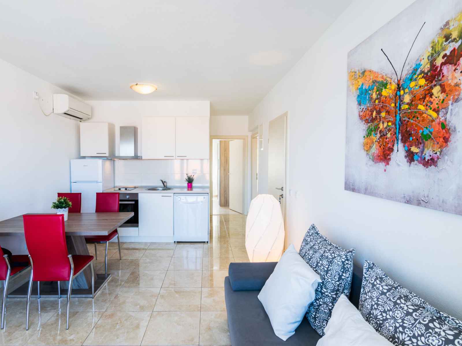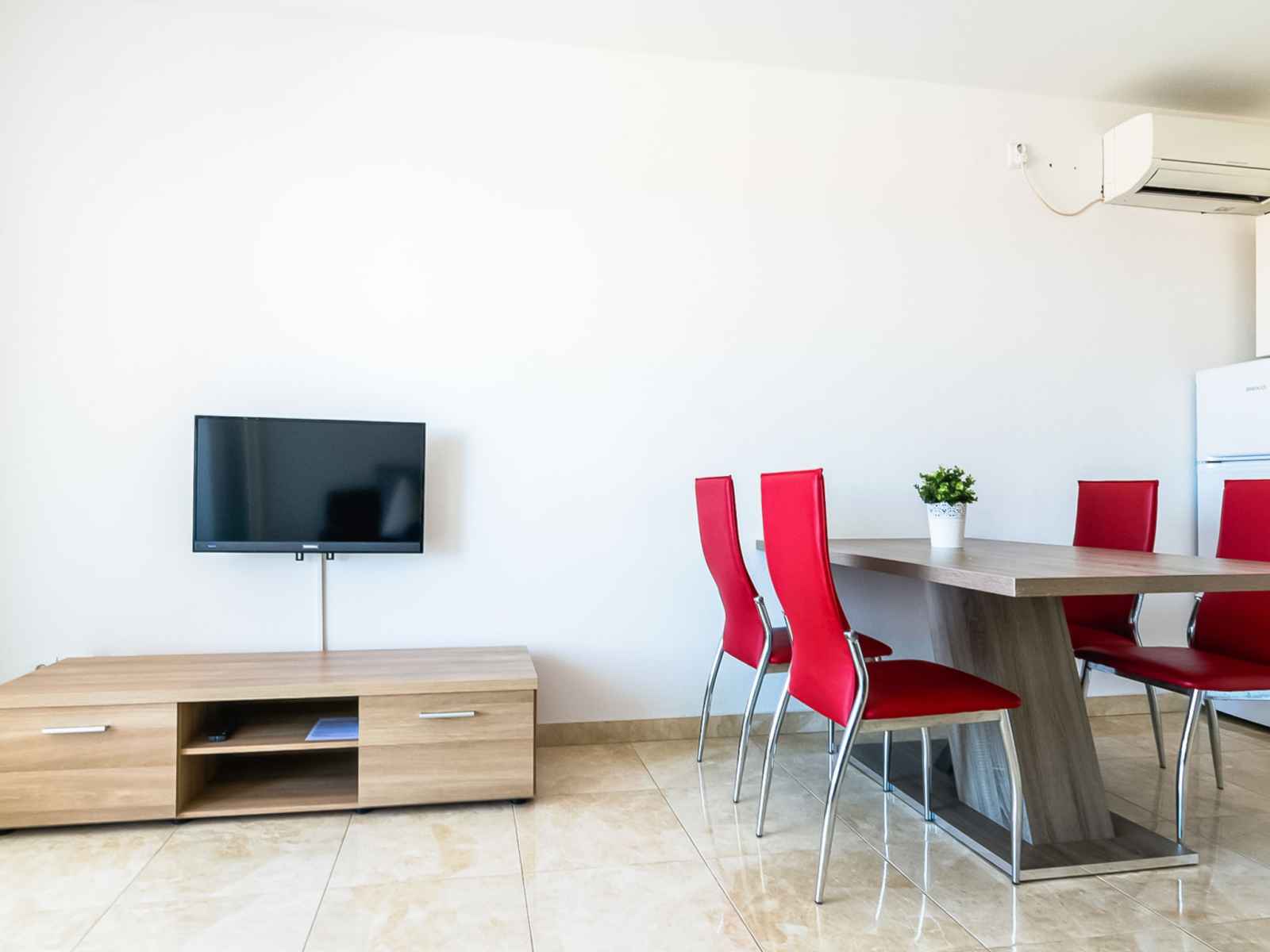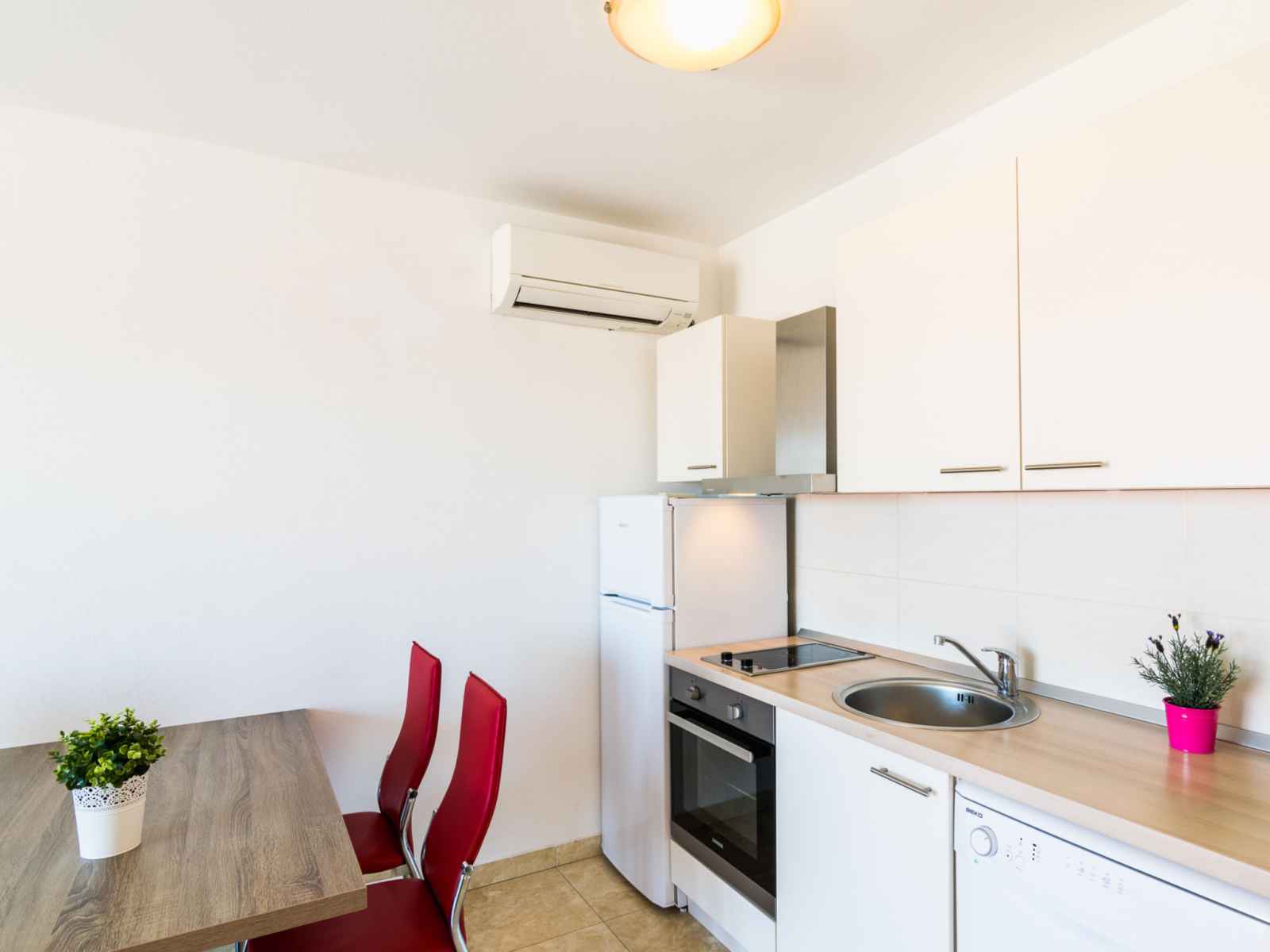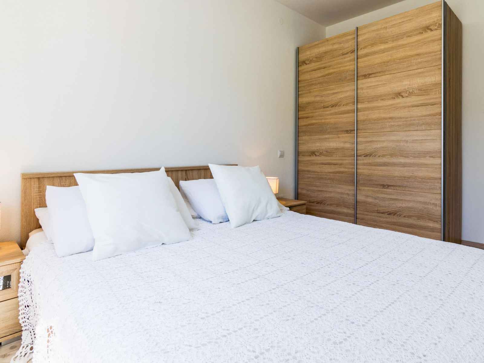 Apt 3 pièces 45 m2 au 2ème étage, situation nord. séjour/salle à manger avec 1 divan-lit (130 cm, longueur 190 cm), tv (satellite) et air-conditionné. sortie sur le balcon. 1 chambre avec 1 lit double (2 x 80 cm, longueur 200 cm), douche/wc. 1 chambre avec 1 lit double (2 x 80 cm, longueur 200 cm). cuisine ouverte (four, lave-vaisselle, 2