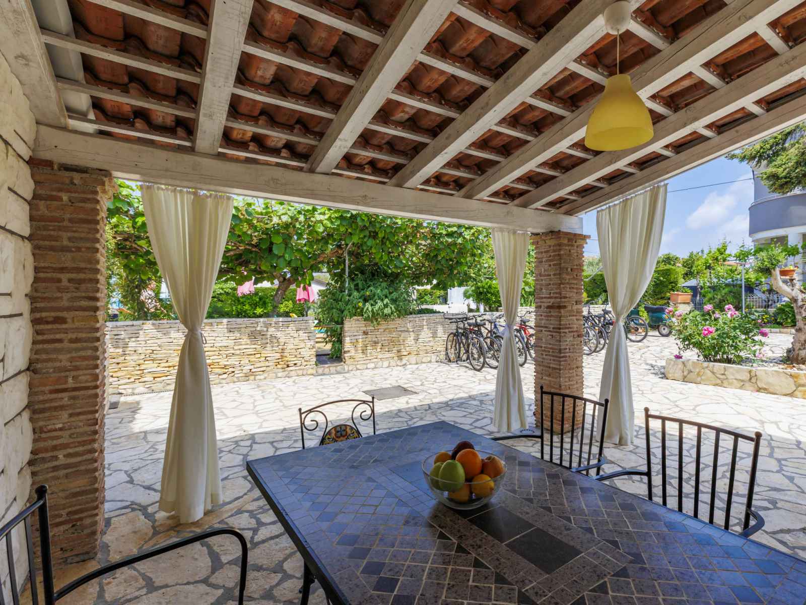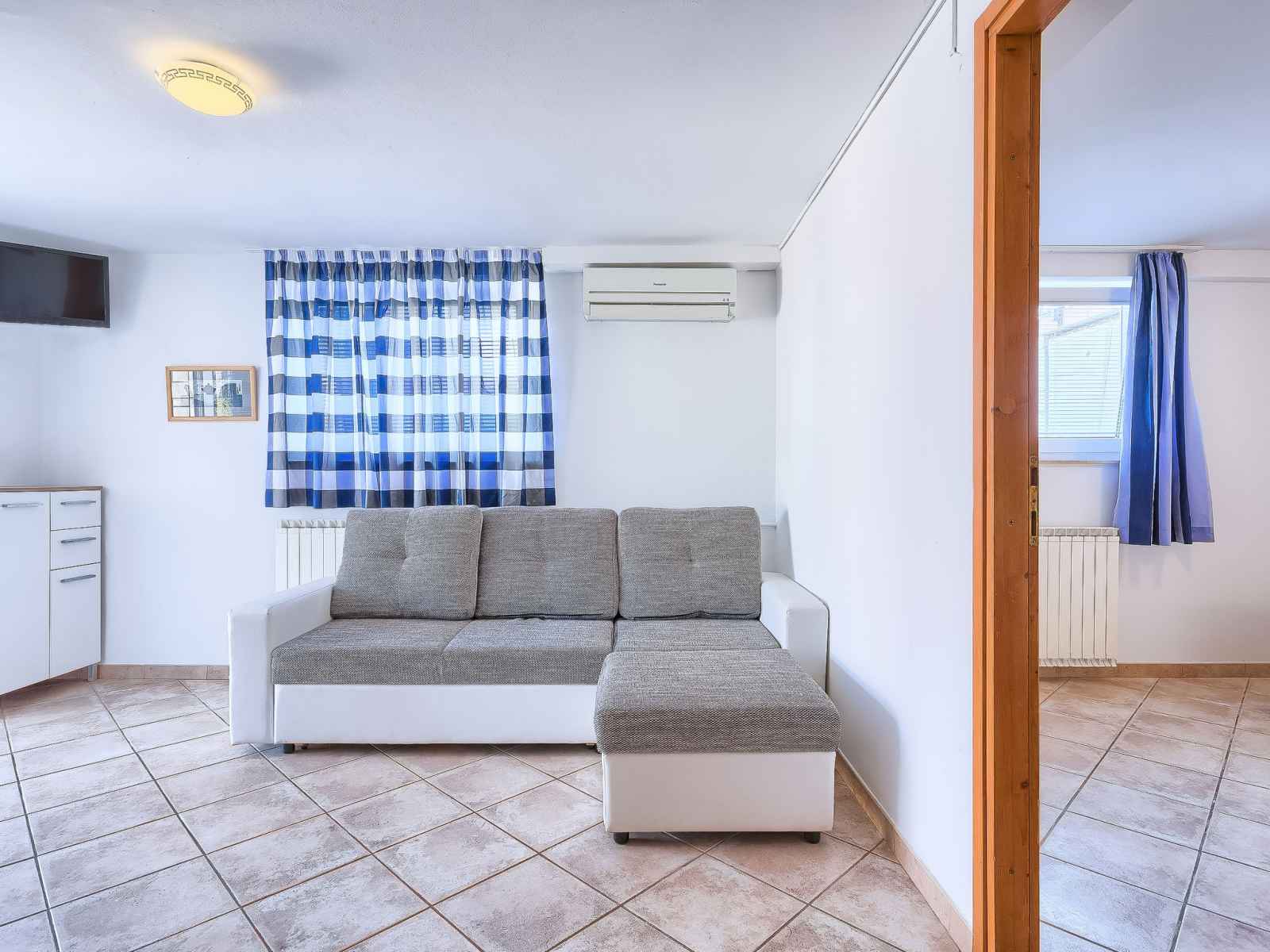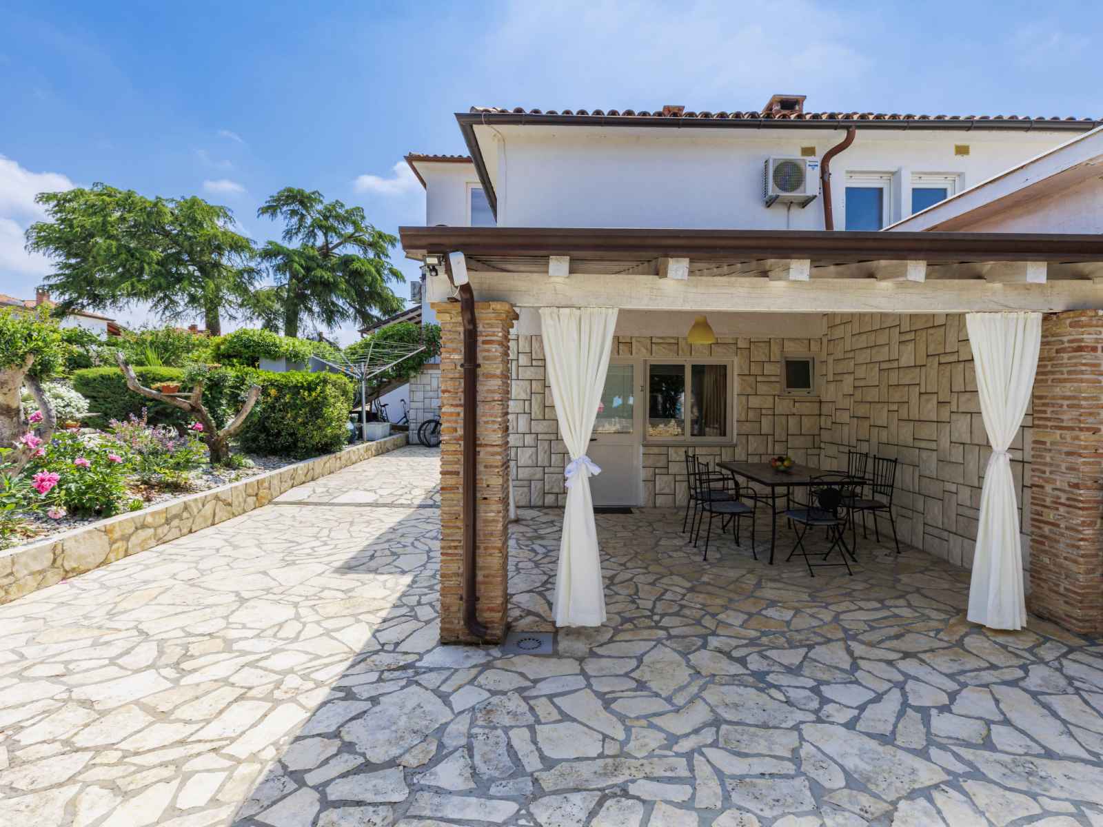 Immeuble "nika". dans le quartier de punta, à 2 km du centre d'umag, situation ensoleillée, à 300 m de la mer, à 300 m de la plage. en commun: terrain 1'500 m2 (clôturé), jardin entretenu, piscine (8 x 4 m, profondeur 135 cm, disponibilité saisonnière: 25.avr. - 19.sep.). douche extérieure, bain à remous , barbecue. infrastructures de