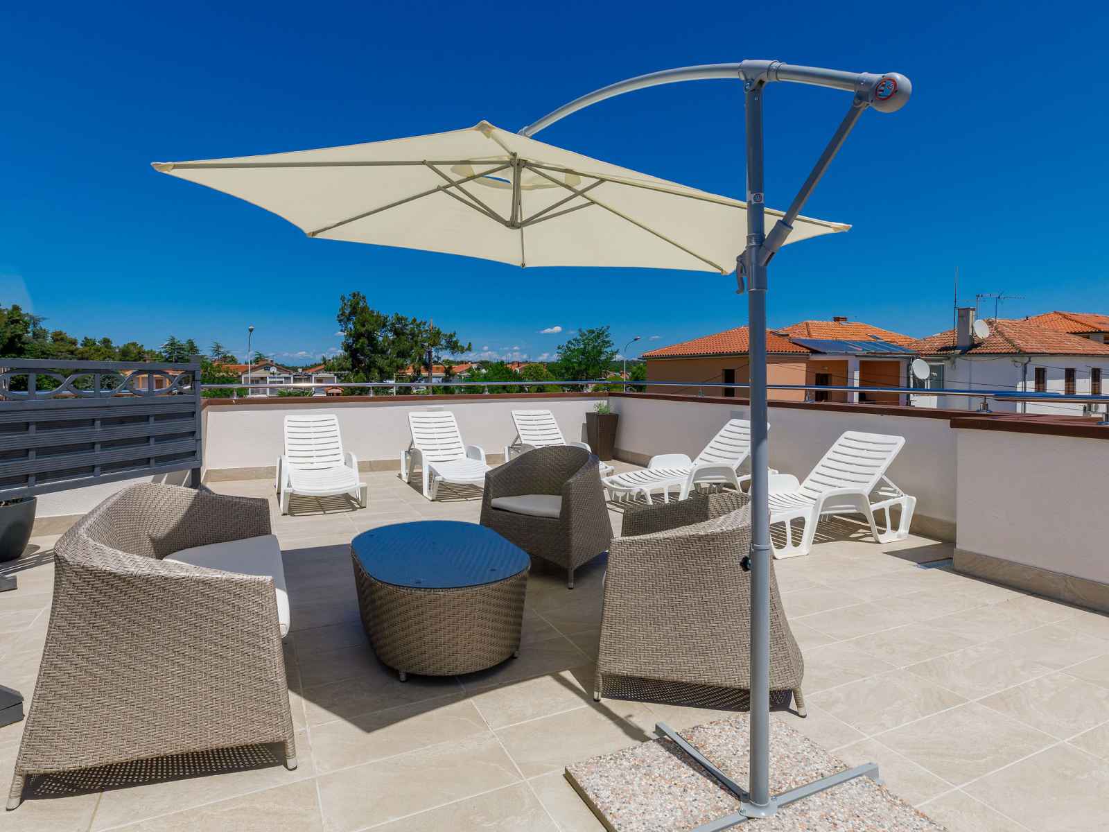 Immeuble "villa alpa". dans le quartier de punta, à 1 km du centre d'umag, situation tranquille, ensoleillée, à 400 m de la mer, à 400 m de la plage. en commun: terrain 730 m2 (clôturé), petit jardin, piscine (hors sol) (2 x 2 m, disponibilité saisonnière: 29.mar. - 15.nov.). meubles de jardin. infrastructures de la maison: accès
