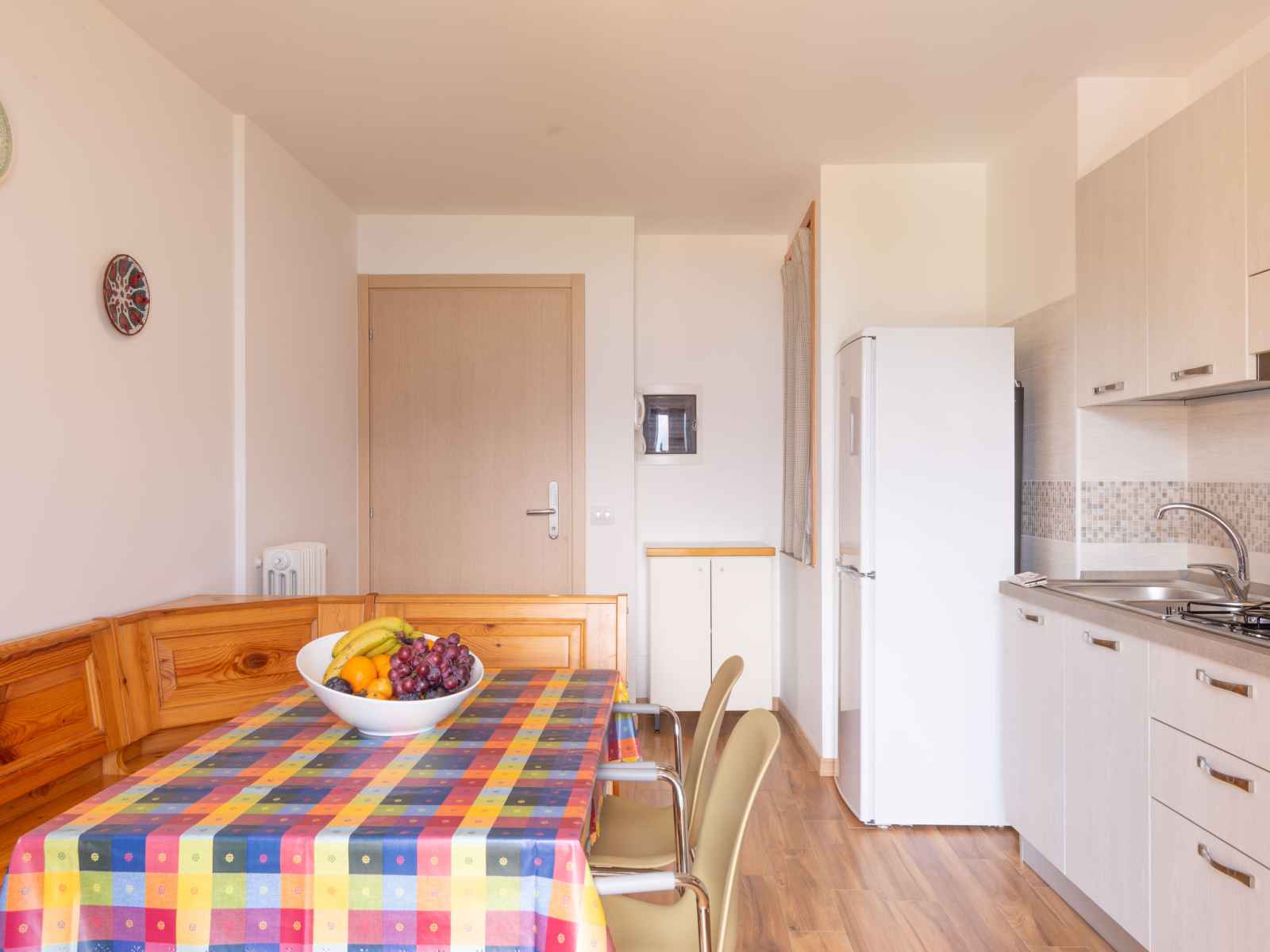"ortensia", apt 3 pièces 60 m2 au 1er étage. clair, aménagement fonctionnel: 1 chambre double avec 1 lit double. sortie sur le balcon. 1 chambre avec 1 x 2 lits superposés. cuisine/séjour (4 plaques de cuisson, bouilloire électrique, micro-ondes) avec tv (satellite). sortie sur le balcon. douche/wc. chauffage au gaz. balcon 8 m2. mobilier de