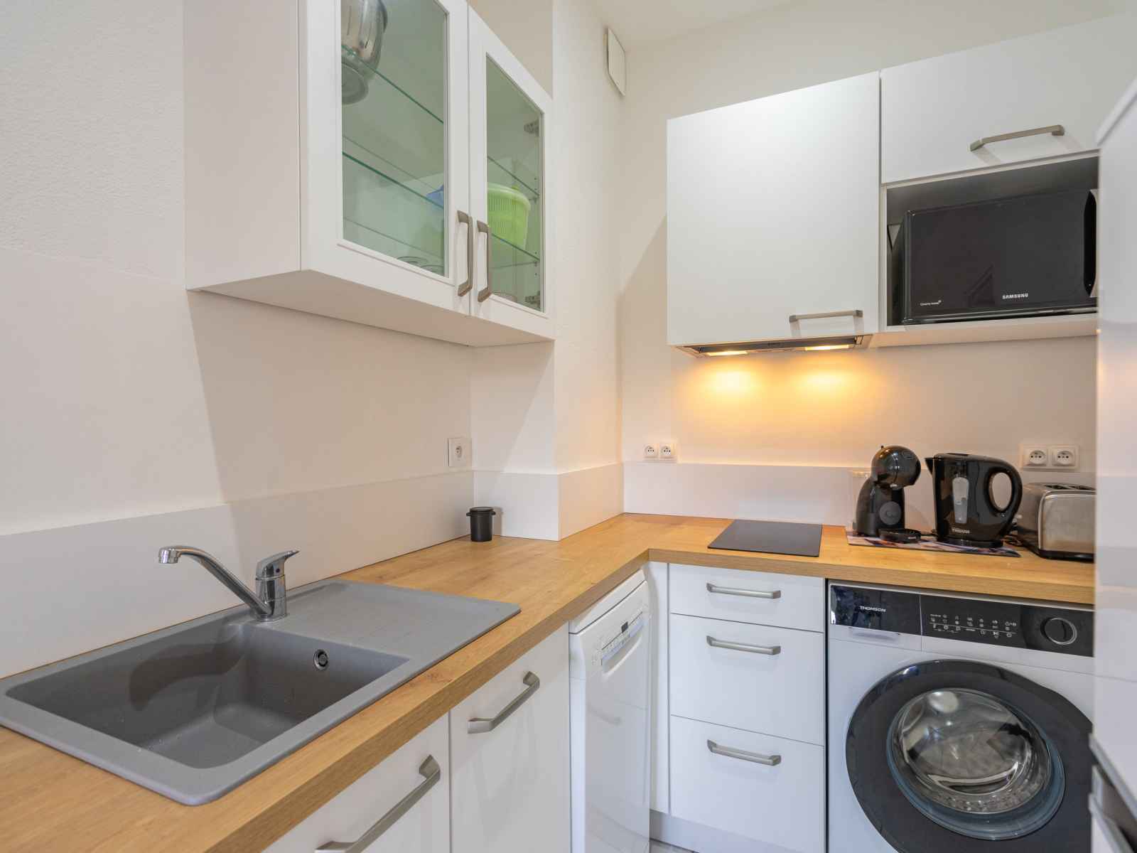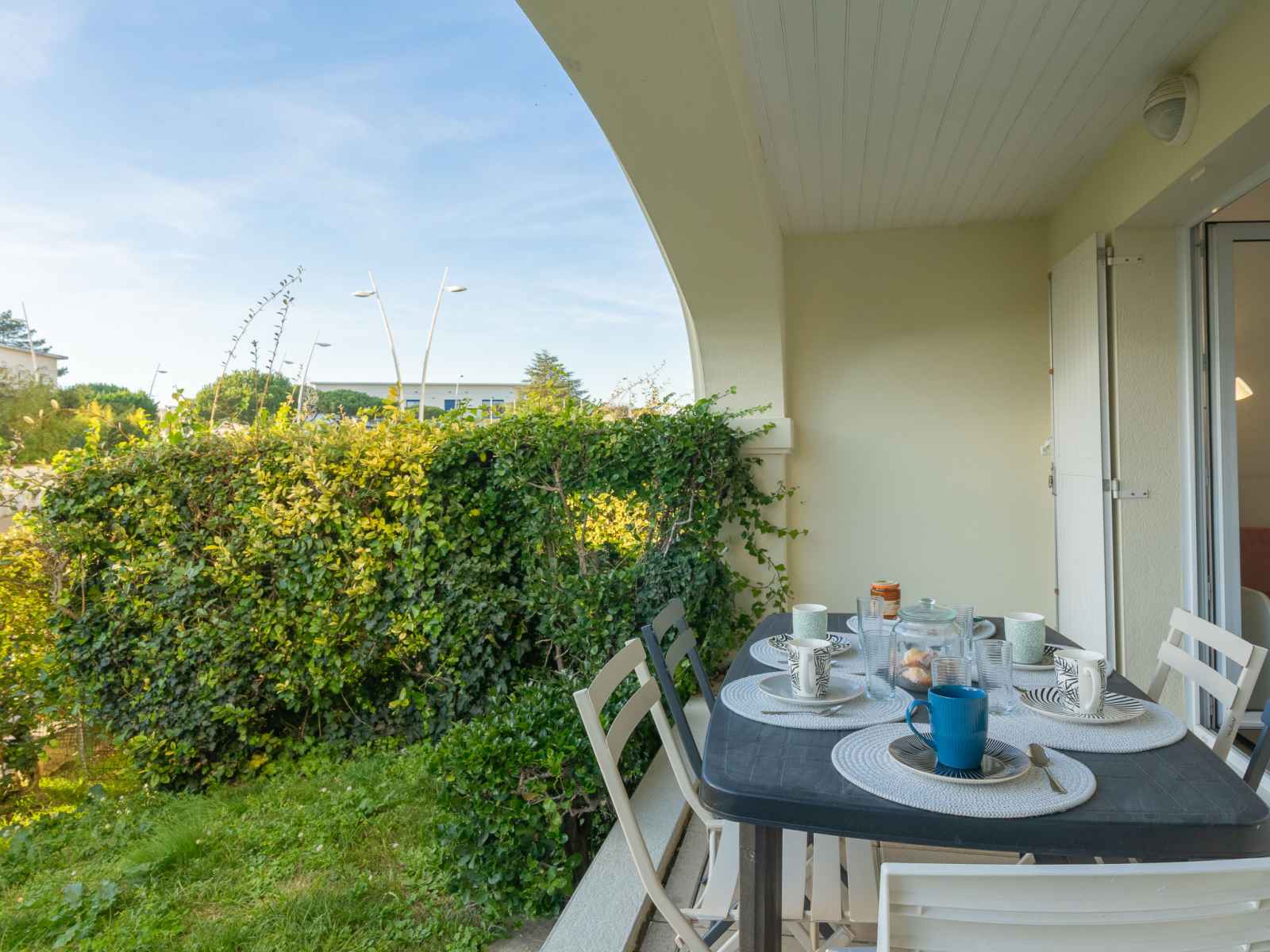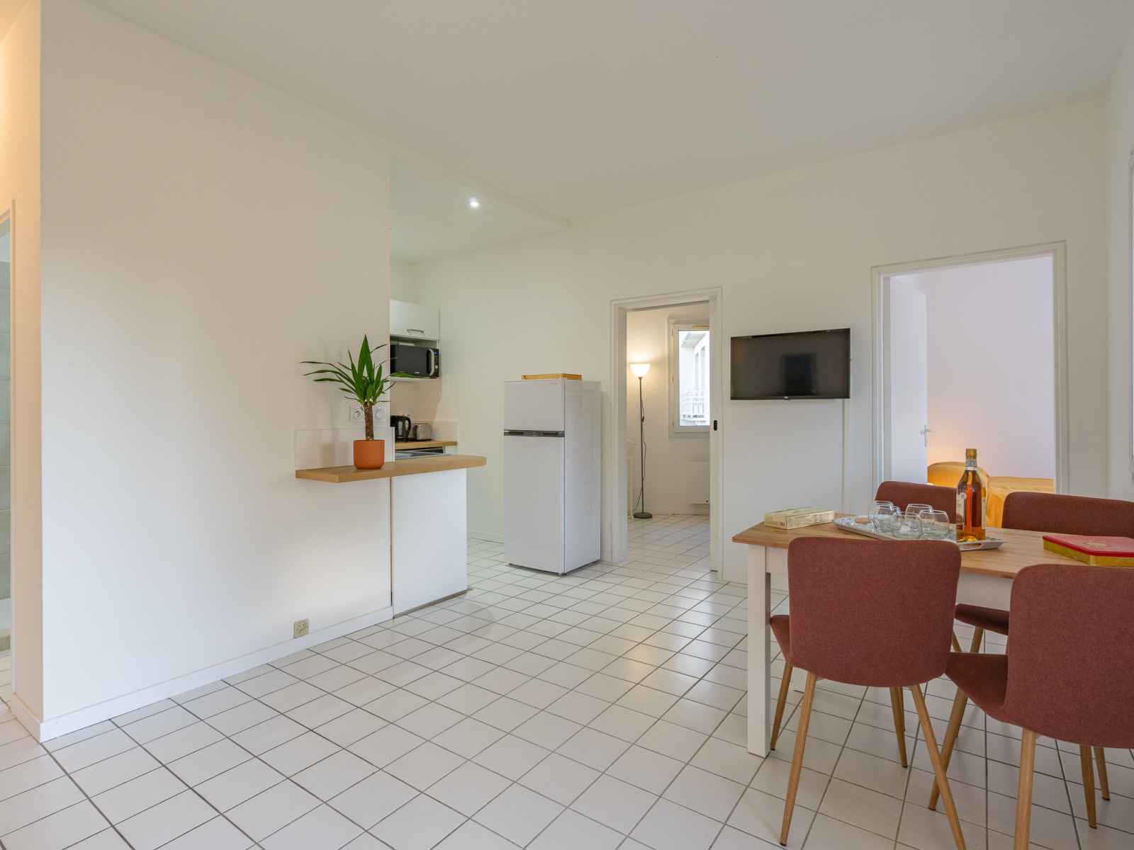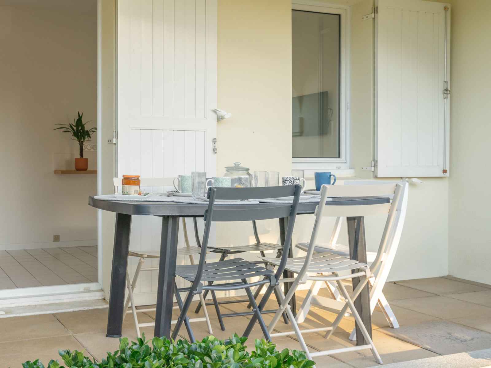 Apt 3 pièces 47 m2, rez-de-chaussée surélevé. rénové en 2023: séjour avec 1 divan-lit (80 cm, longueur 190 cm), tv (écran plat). sortie sur la terrasse. 1 chambre avec 1 grand-lit (1 x 140 cm, longueur 190 cm). 1 chambre avec 1 x 2 lits superposés (90 cm, longueur 190 cm). coin cuisine (lave-vaisselle, grille-pain, bouilloire électrique,