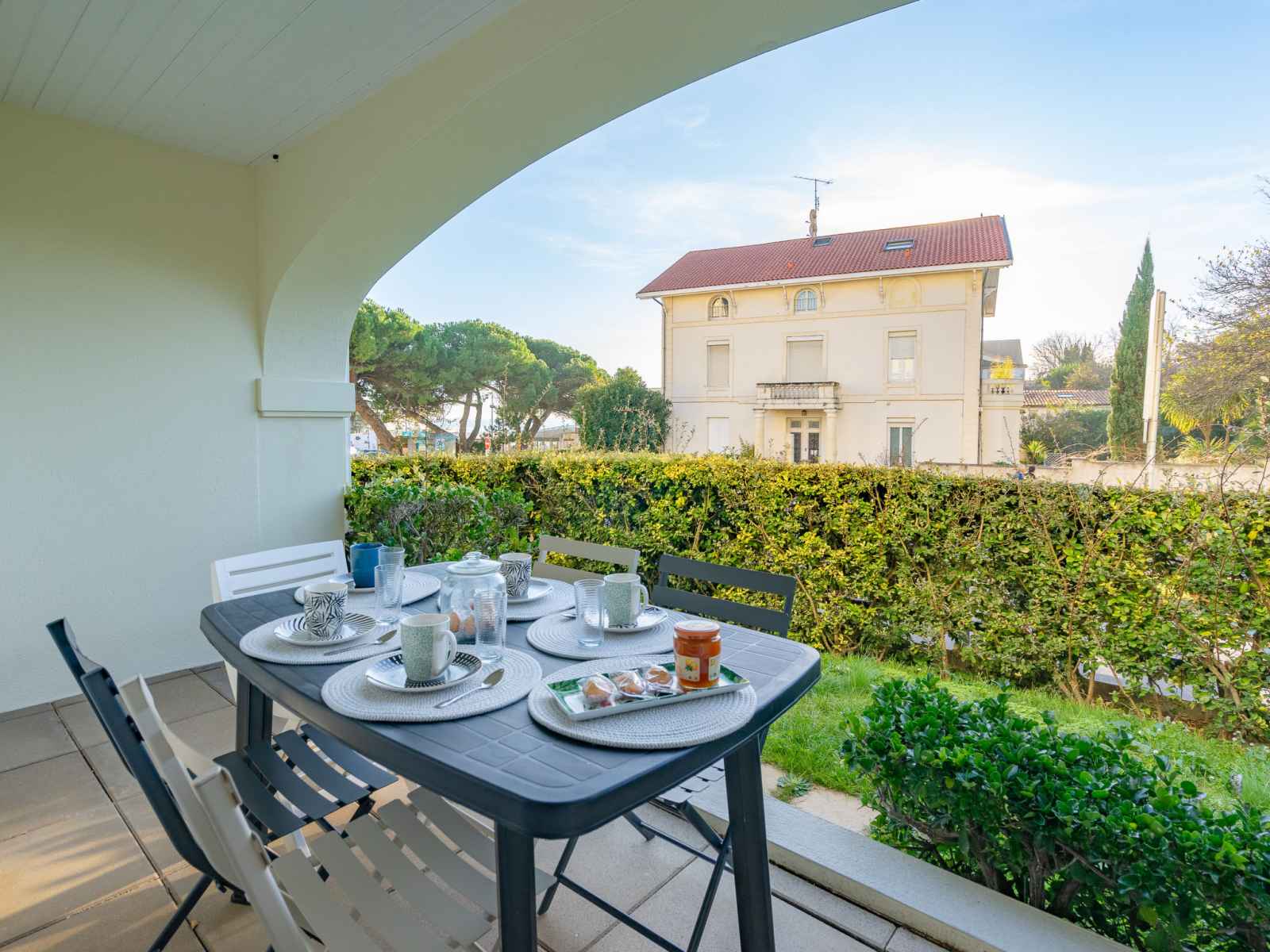 cloturée (15 x 7 m, disponibilité saisonnière: 01.jul. - 31.aou.). infrastructures de la maison: ascenseur, réduit pour bicyclettes. parking public possible dans la rue. magasins 200 m, supermarché 1.4 km, restaurant, bar, boulangerie, café 200 m, arrêt de bus "porte océane" 100 m, gare ferroviaire "royan" 3.2 km, plage de sable "pontaillac" 200 m, parc "luna park (juillet-août)" 17 km, piscine couverte 3 km, centre thermal "thalassothérapie thalazur royan" 1.7 km, lac métairie - royan 1.5 km. port plaisance 2.4 km, terrain de golf (18 trous) 5.5 km, ecole de surf 200 m, ecole de voile 2.5 km, tennis 2 km, tennis couvert 2 km, golf miniature 550 m, centre équestre 6 km, piste cyclable 100 m. attractions à proximité: casino barrière 250 m, palais des congrès - royan 2 km, embarcadère royan - le verdon 2 km, zoo de la palmyre 12 km, hippodrome - la palmyre 13 km, centre aquatique iléo - ile d'oléron 47 km. veuillez noter: d’autres appartements sont également proposés à la location dans cette maison de vacances.