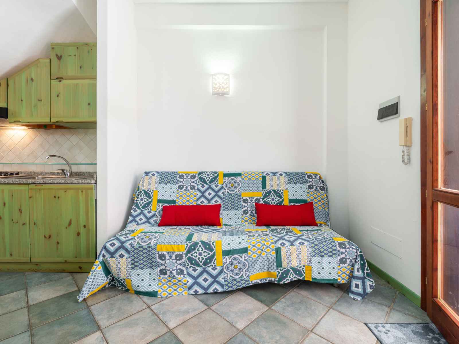 "appartamento caòmbu", maison mitoyenne 3 pièces 65 m2 sur 2 niveaux au 1er étage. aménagement confortable et plaisant: séjour/salle à manger avec cheminée (uniquement à titre de décoration), table pour les repas, télévision numérique et air-conditionné. sortie sur la véranda. coin cuisine (four, 4 feux, bouilloire électrique). À