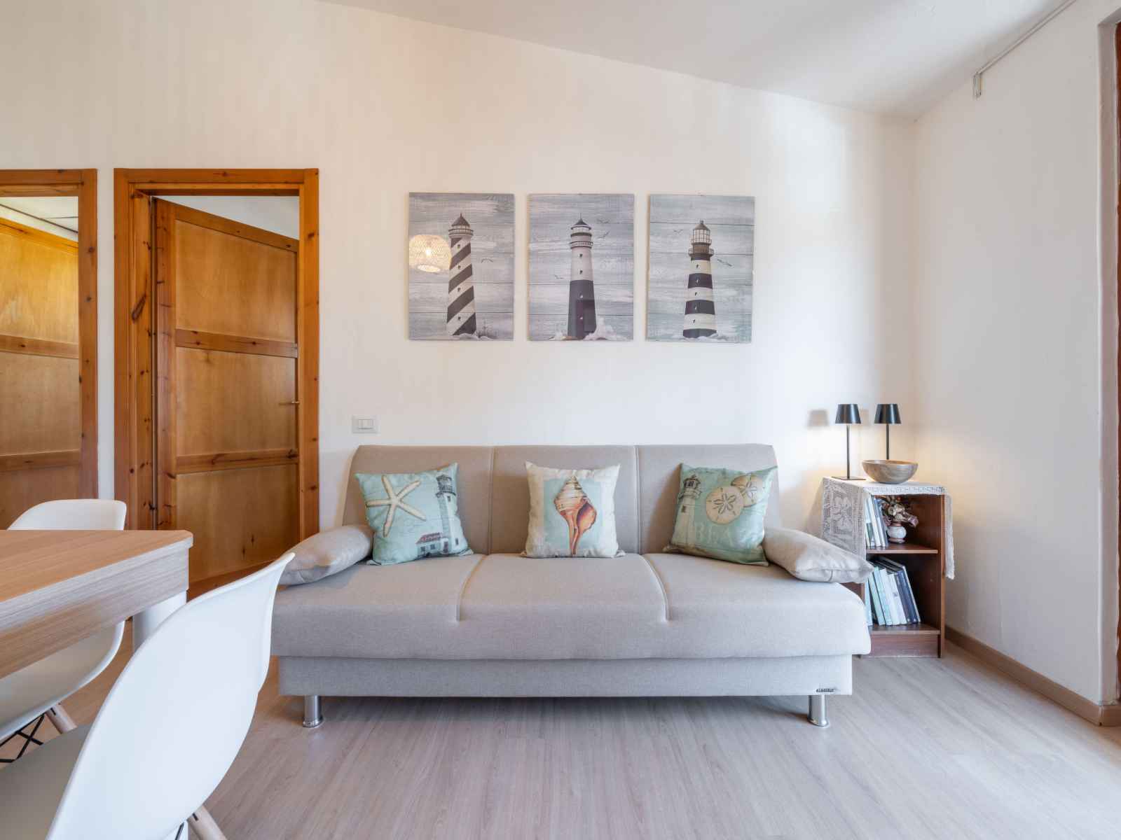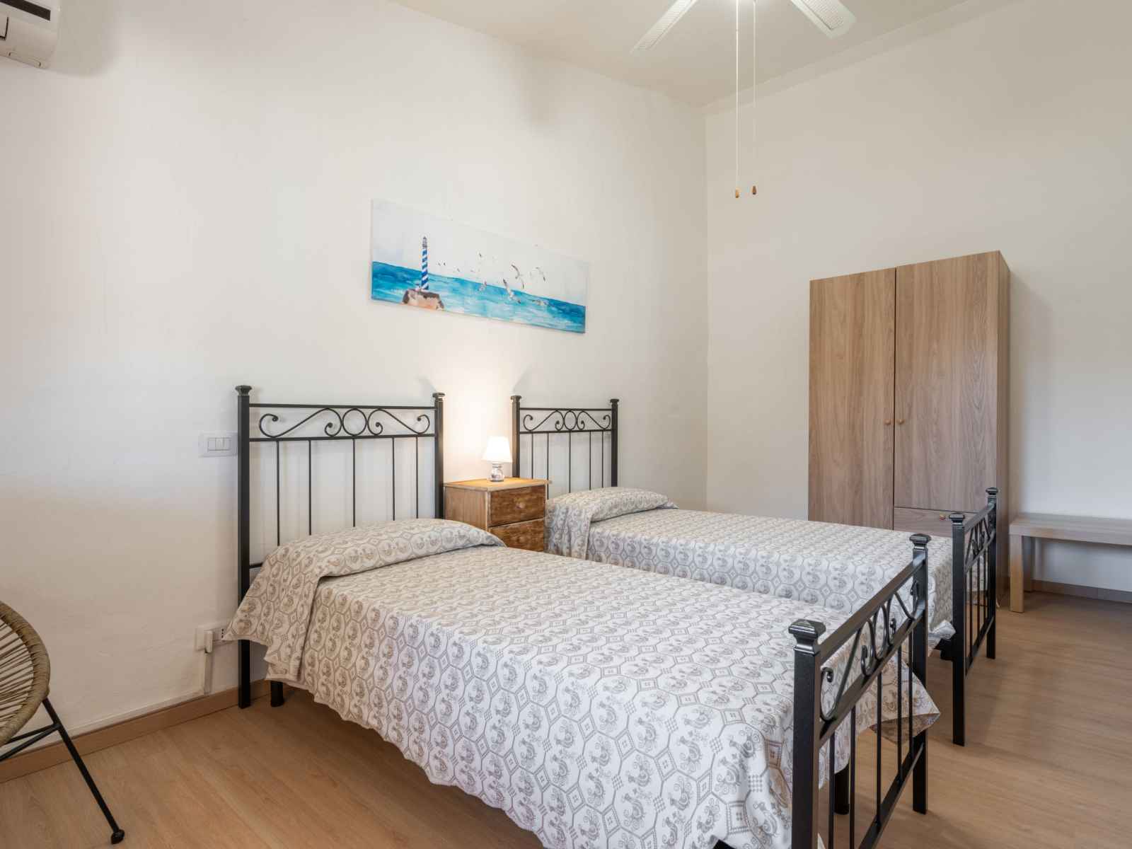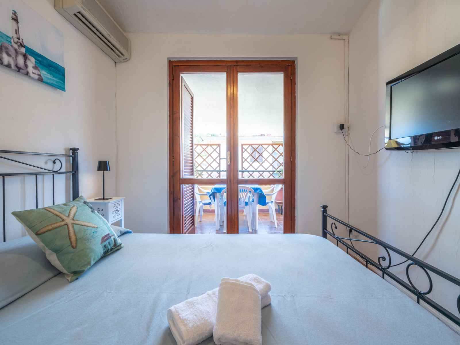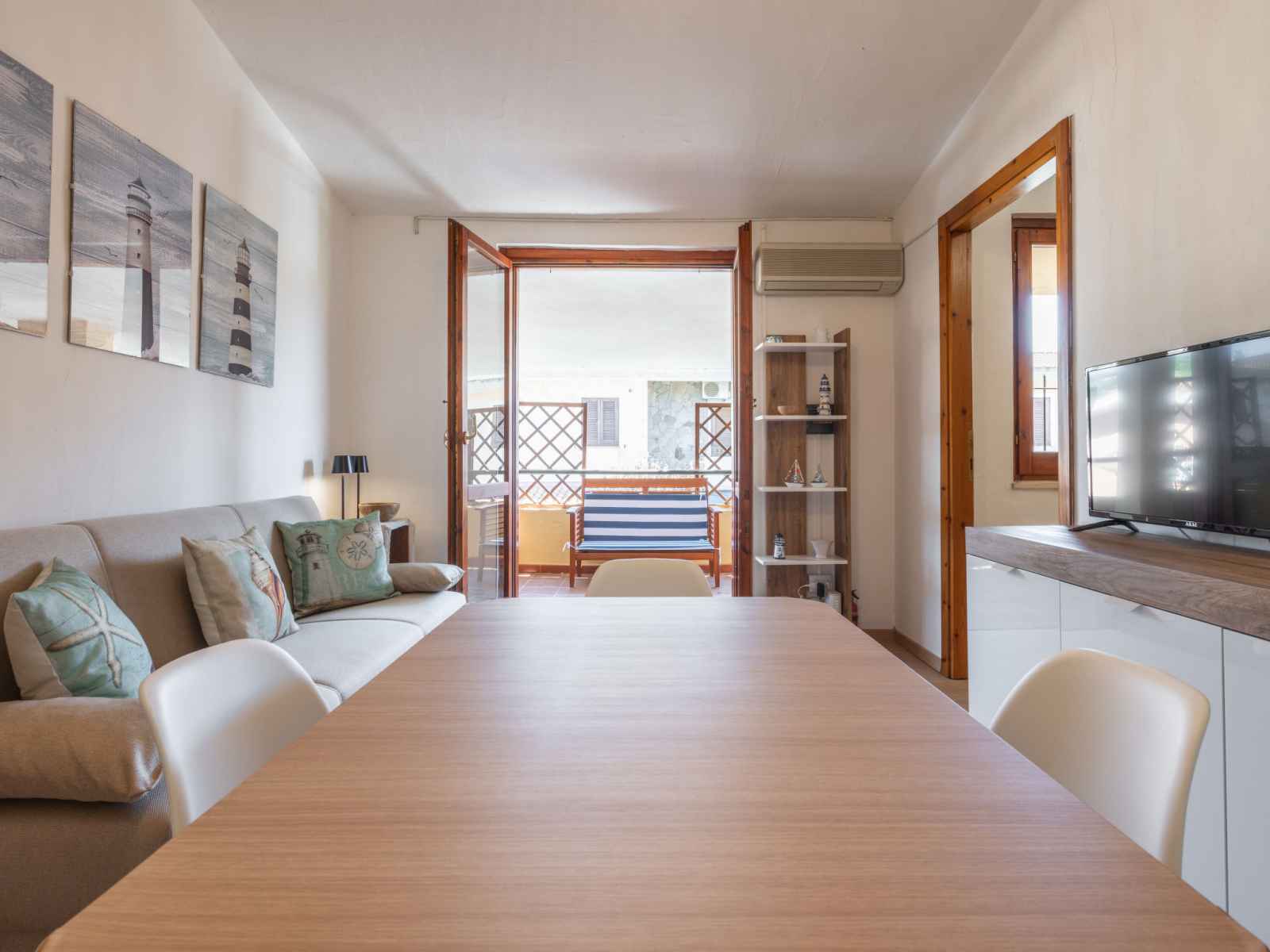 "il faro blu", apt 3 pièces 50 m2 au 1er étage. aménagement confortable et plaisant: séjour/salle à manger avec table pour les repas, télévision numérique et air-conditionné. sortie sur la véranda. 1 chambre avec 1 lit double et air-conditionné. sortie sur la véranda. 1 chambre avec 2 lits et air-conditionné. coin cuisine (four, 4