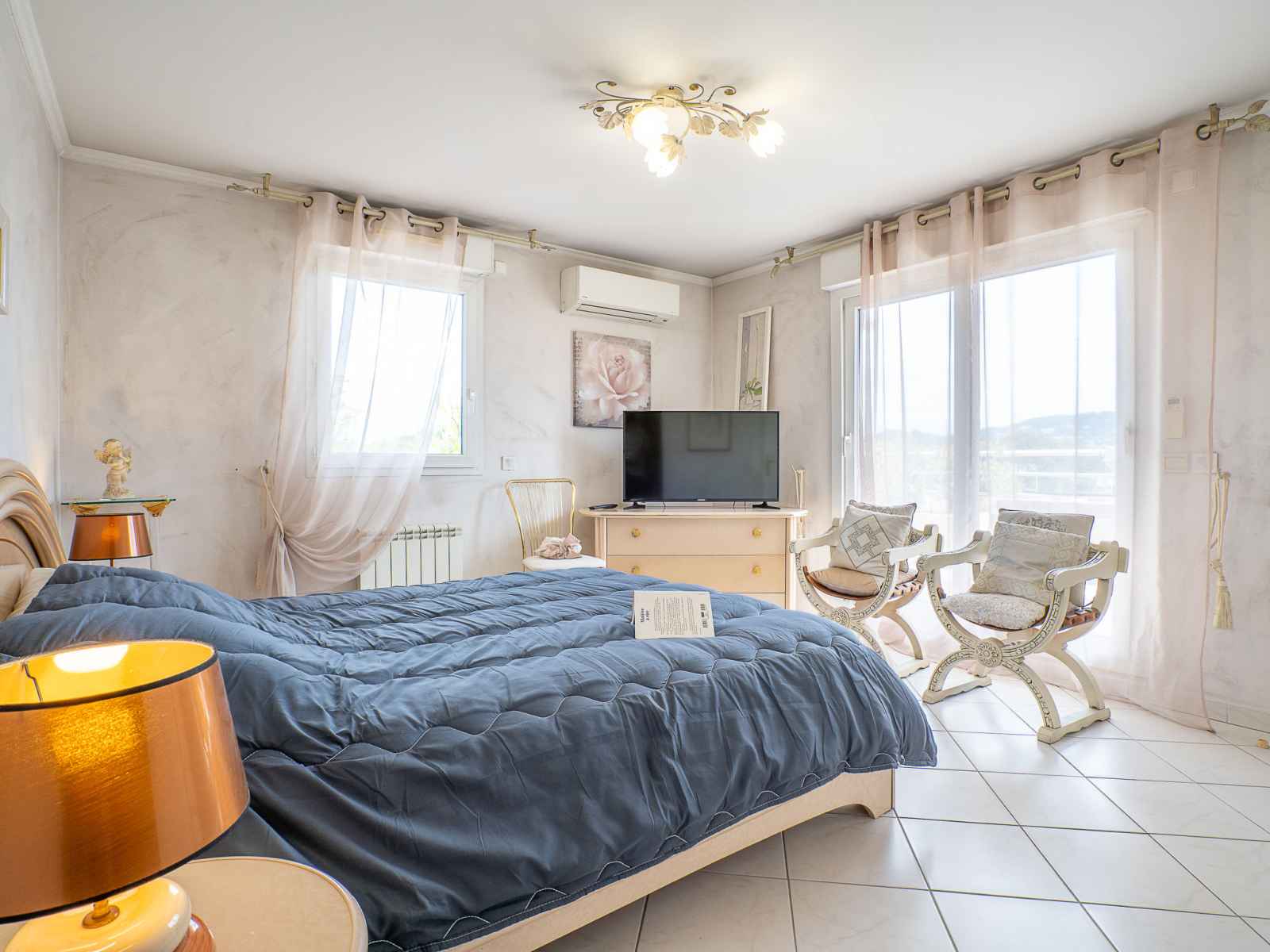 Apt 4 pièces 122 m2 au 3ème étage. aménagement confortable: séjour/salle à manger 47 m2 avec tv (écran plat), air-conditionné. sortie sur la terrasse. 1 chambre avec 1 grand-lit (140 cm, longueur 190 cm), air-conditionné. sortie sur la terrasse. 1 chambre avec 1 grand-lit (160 cm, longueur 200 cm), douche/wc et air-conditionné. sortie
