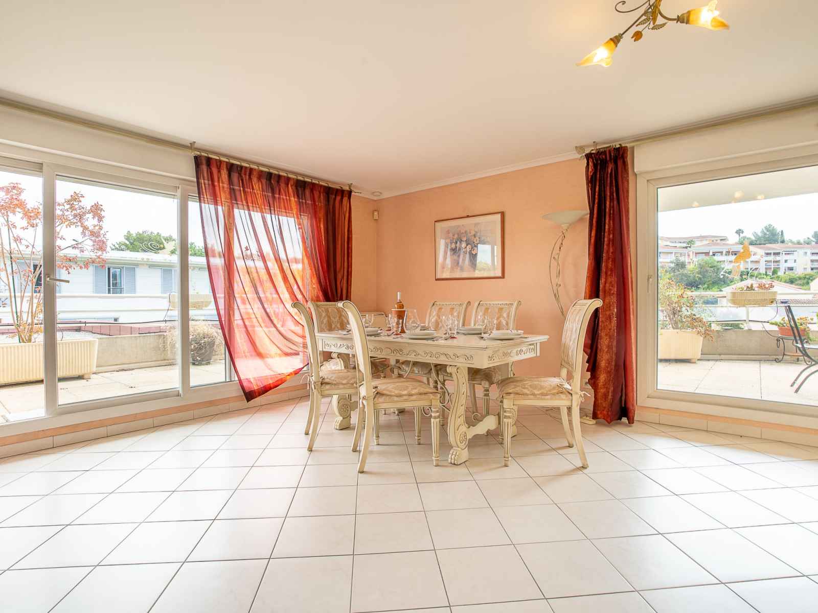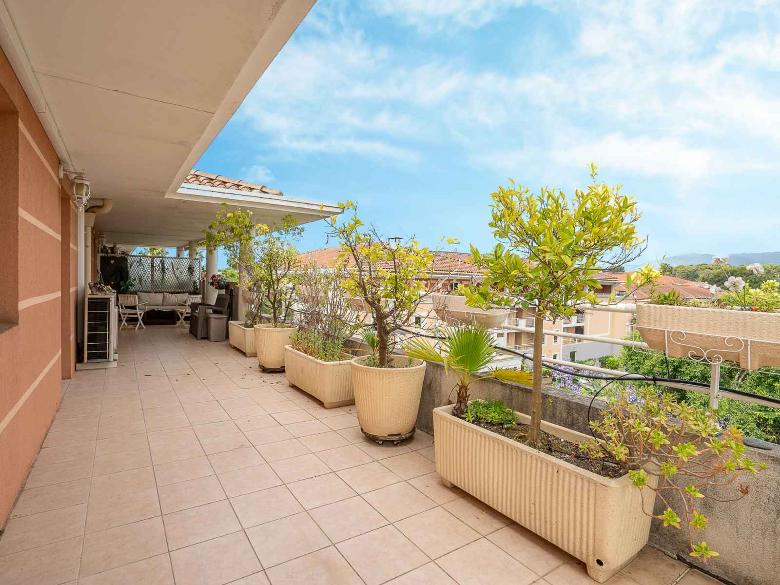 sur la terrasse. 1 chambre avec 1 lit rabattable (140 cm, longueur 190 cm), air-conditionné. Sortie sur la terrasse. Cuisine 11 m2 (3 plaques de cuisson, four, lave-vaisselle, grille-pain, bouilloire électrique, micro-ondes, congélateur, cafetière électrique, Capsules pour machine à café (Nespresso) (NON INCLUSES)). Salle de bains, WC séparé. Air-conditionné, chauffage à air chaud. 2 terrasses 25 m2, situation est et situation nord terrasse 50 m2, situation ouest. Meubles de terrasse. Vue sur les montagnes. A disposition: lave-linge. Internet (Connexion WIFI, gratuit). Place de parking No 672. Veuillez noter: détecteur de fumée. Annonce d'un particulier (art 155, IV du CGI). 06030 000390 44