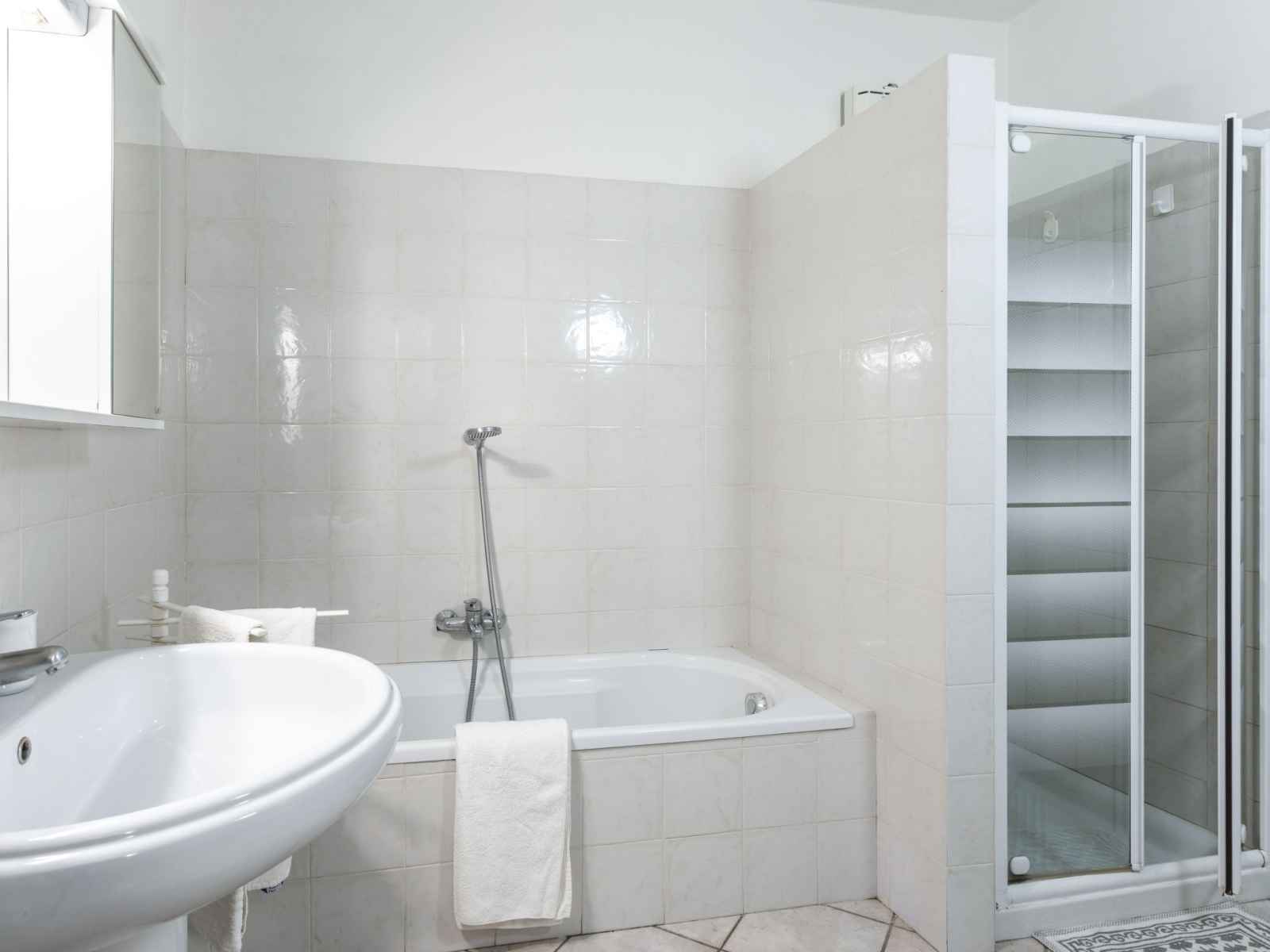 "alberto b", apt 4 pièces 100 m2, au rez-de-chaussée. séjour/chambre à coucher avec baie vitrée avec 1 divan-lit double (160 cm), table pour les repas, tv (satellite) et poêle à bois. sortie sur le jardin. 2 chambres, chaque chambre avec: 1 lit double. 1 chambre, sans fenêtre avec 2 lits (80 cm). cuisine ouverte (four, 4 feux, grille-pain,