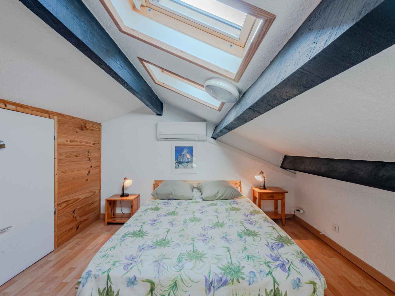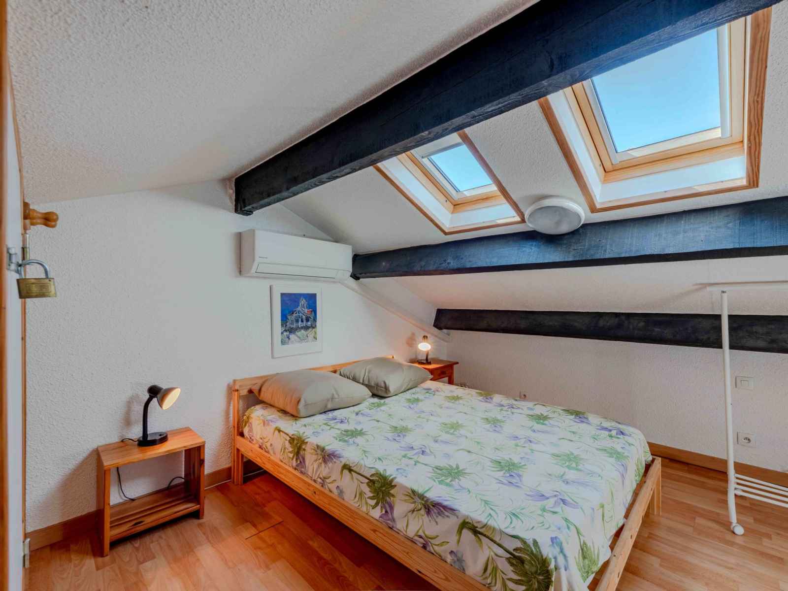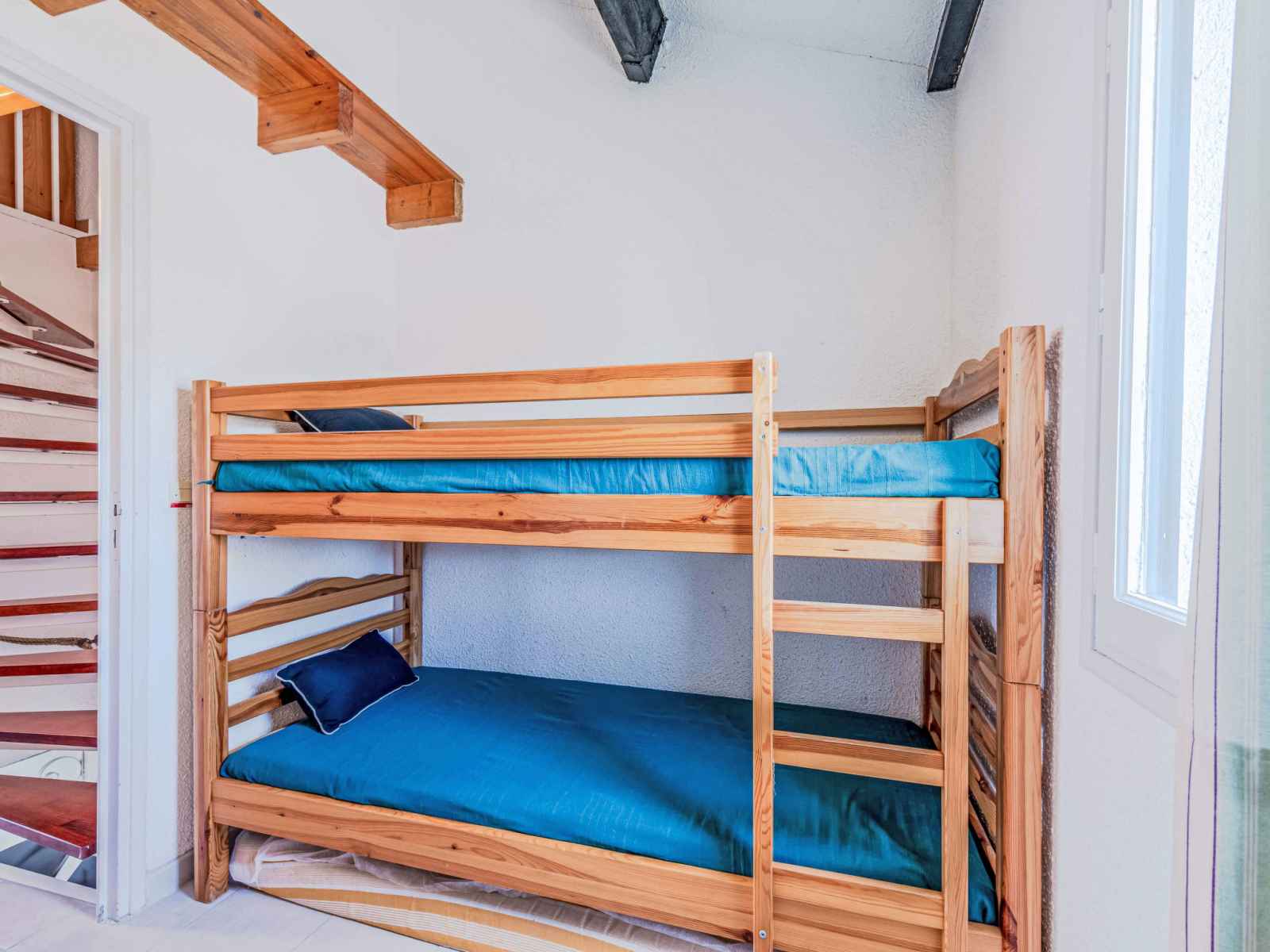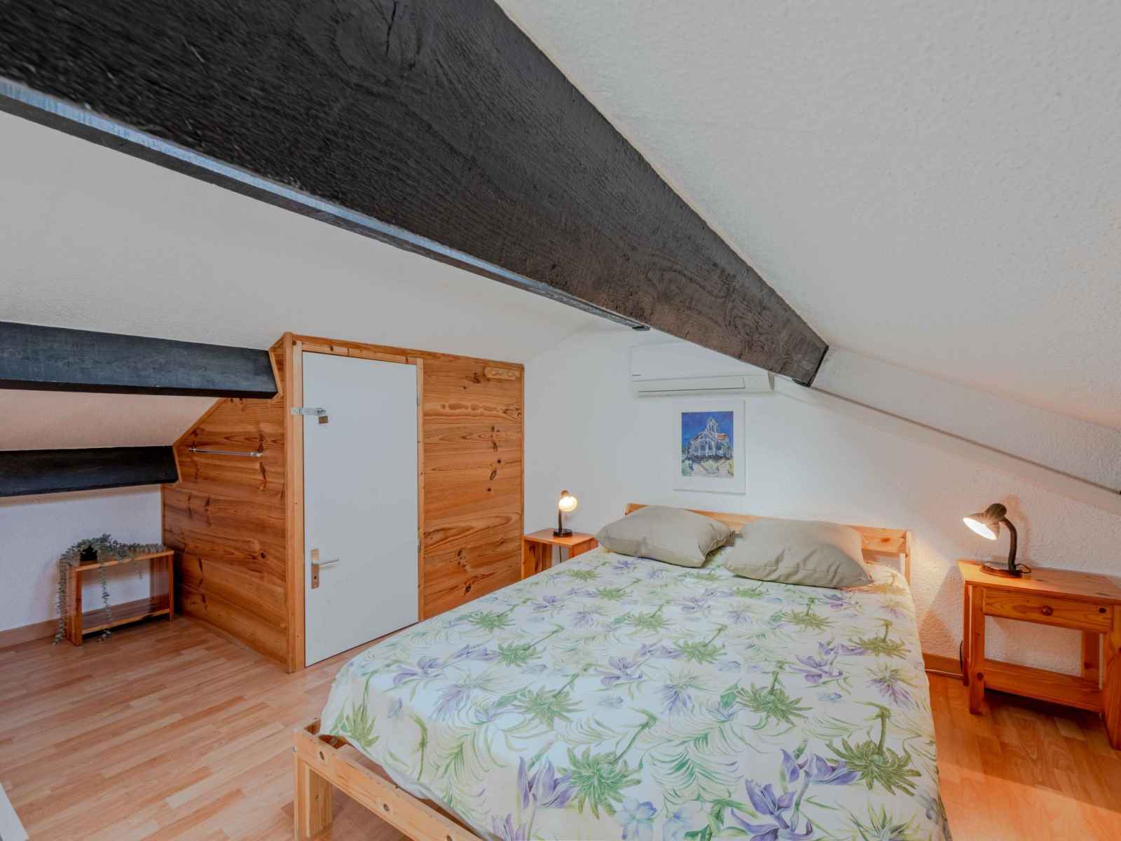 supérieur: (escalier en colimaçon) 1 chambre avec 1 grand-lit (1 x 140 cm, longueur 190 cm). Sortie sur la loggia. 1 chambre avec 1 x 2 lits superposés (80 cm, longueur 190 cm). Bain/WC. Air-conditionné. 2ème étage: galerie avec 1 grand-lit (1 x 140 cm, longueur 190 cm). Terrasse 10 m2. Meubles de terrasse, barbecue. Vue sur le lac et les montagnes. A disposition: lave-linge. Internet (Connexion WIFI, en sus). Place de parking. Veuillez noter: détecteur de fumée. Annonce d'un particulier (art 155, IV du CGI).