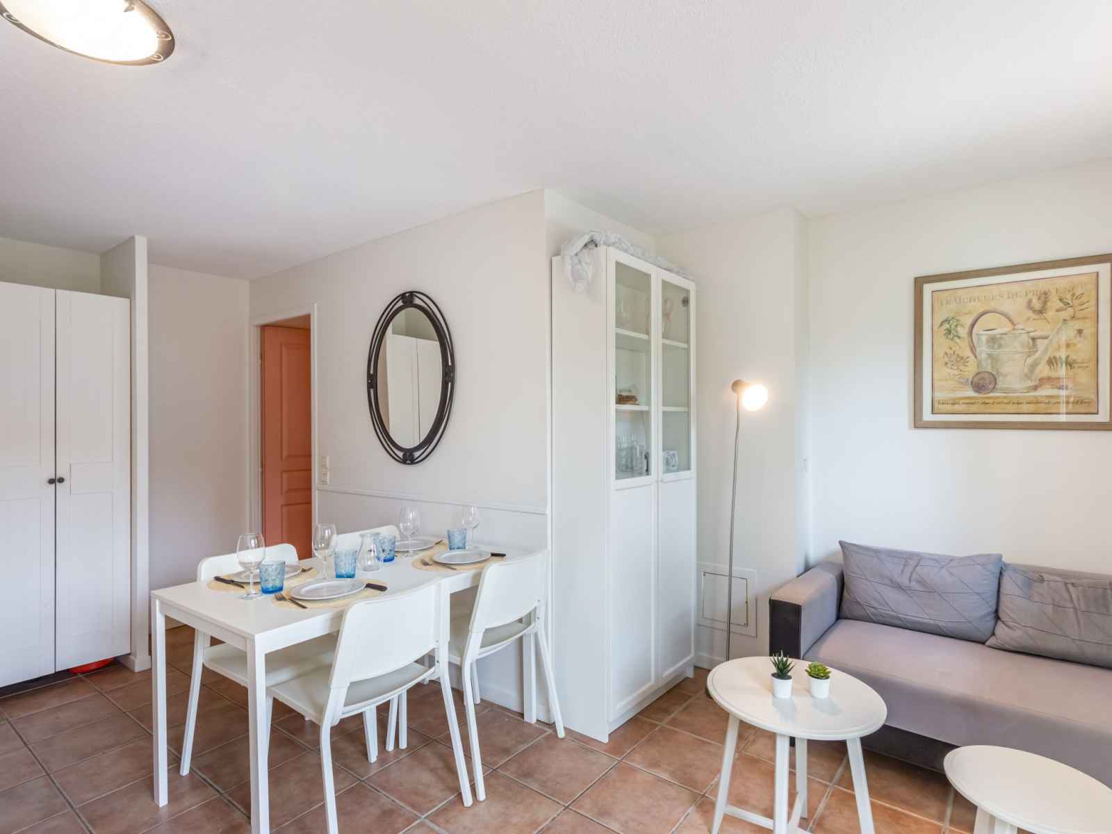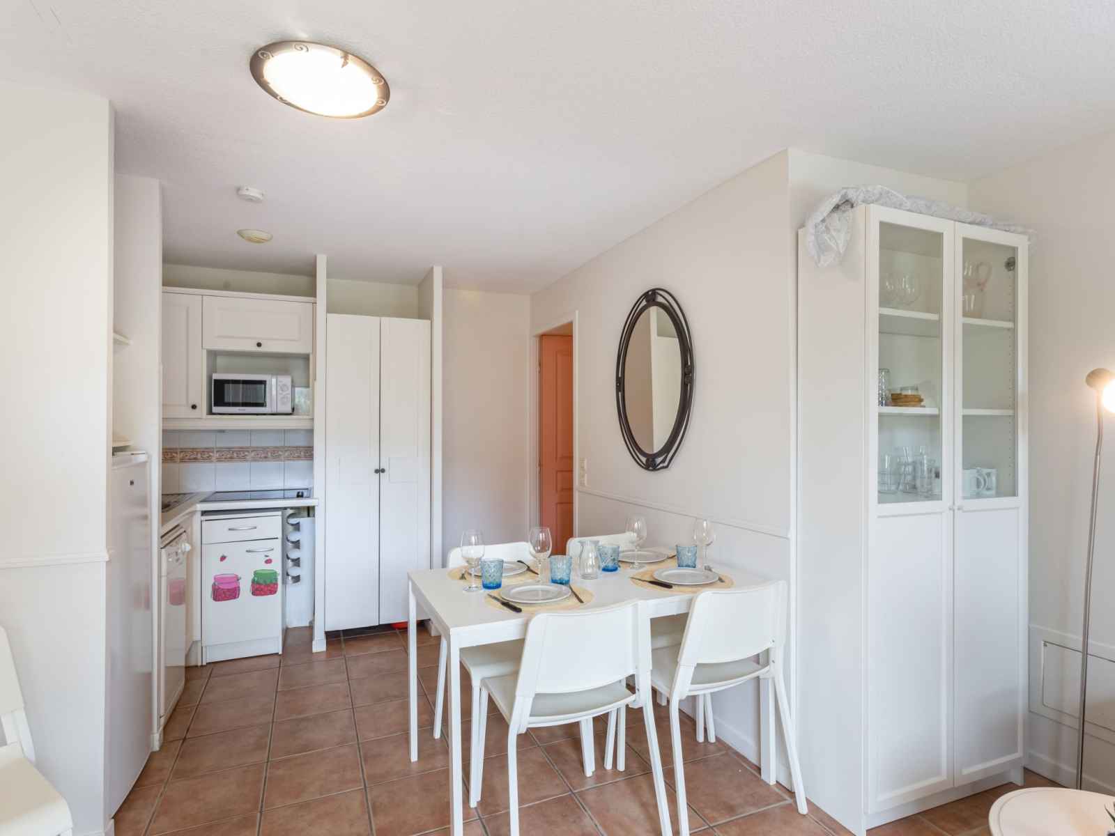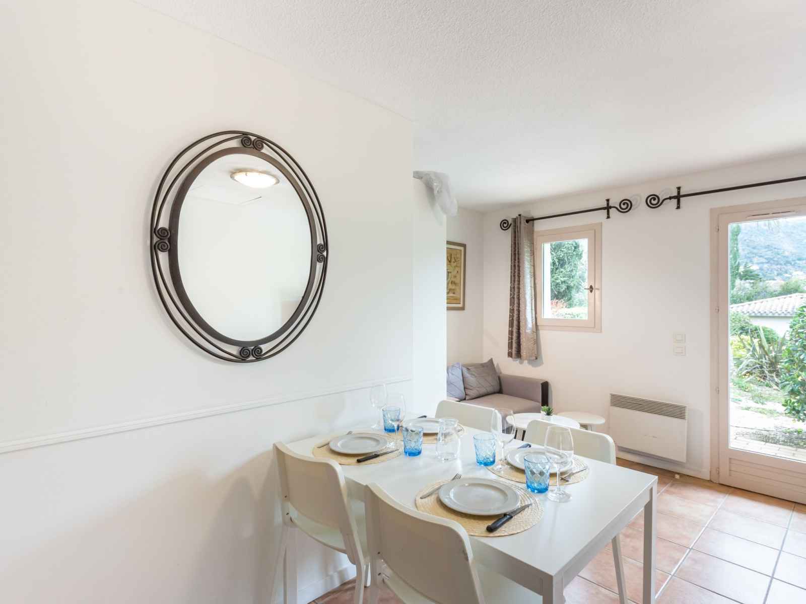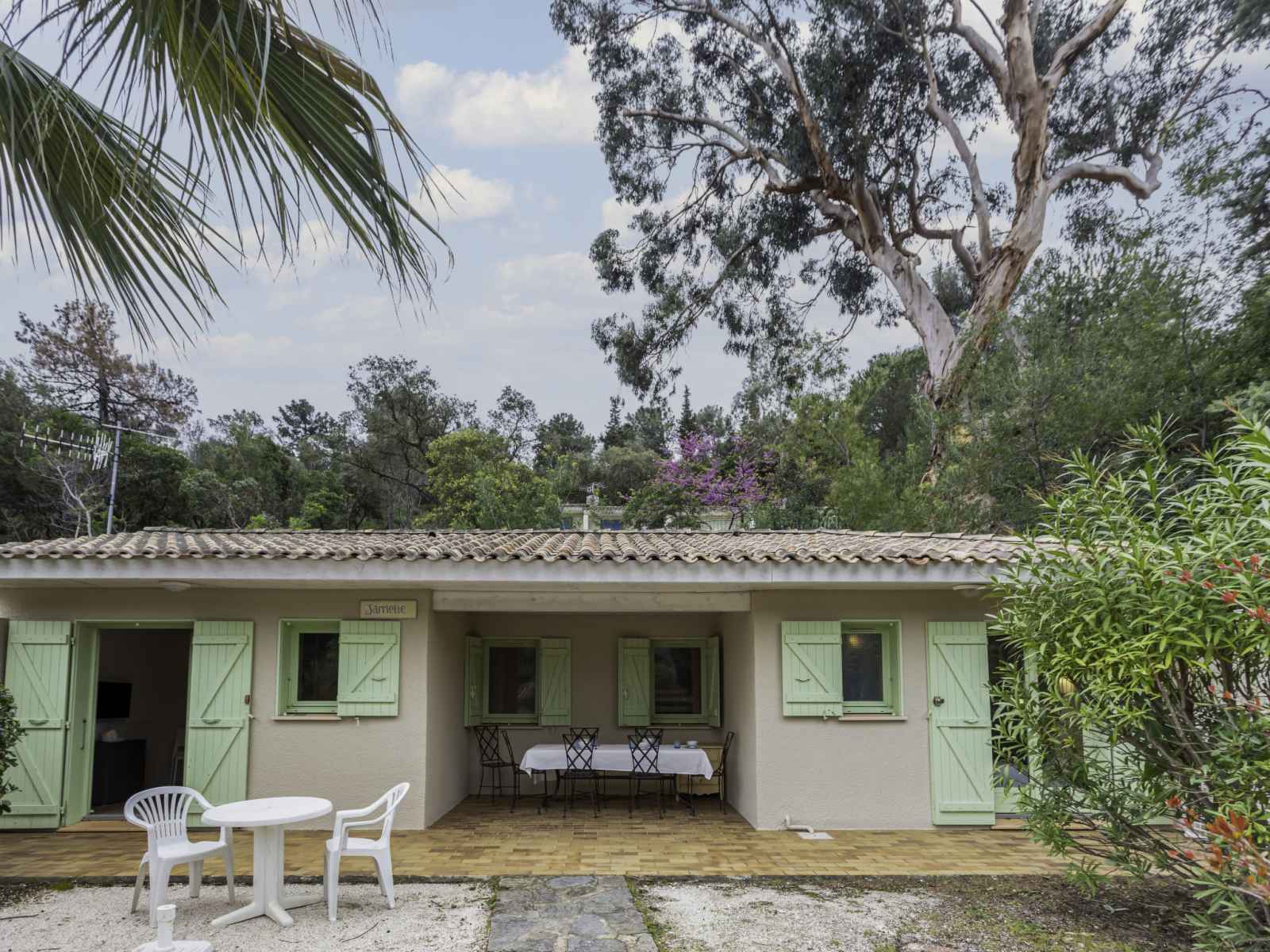 lits superposés (80 cm, longueur 190 cm). Coin cuisine (lave-vaisselle, 3 plaques vitrocéramiques, grille-pain, bouilloire électrique, micro-ondes, cafetière électrique, combiné micro-ondes). Salle de bains, WC séparé. Chauffage électrique. Terrasse 30 m2, jardin 64 m2. Meubles de terrasse. A disposition: fer à repasser. Internet (Connexion WIFI, gratuit). Place de parking. Veuillez noter: adapté(e) aux familles. TV seulement FR. Détecteur de fumée. Au lieu d'une chambre fermée, des espaces de couchage sont situés dans une zone ouverte (galerie, alcôve...). Annonce d'un professionnel (art 155, IV du CGI) 83070003427J0
